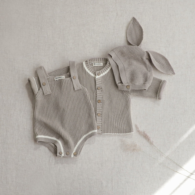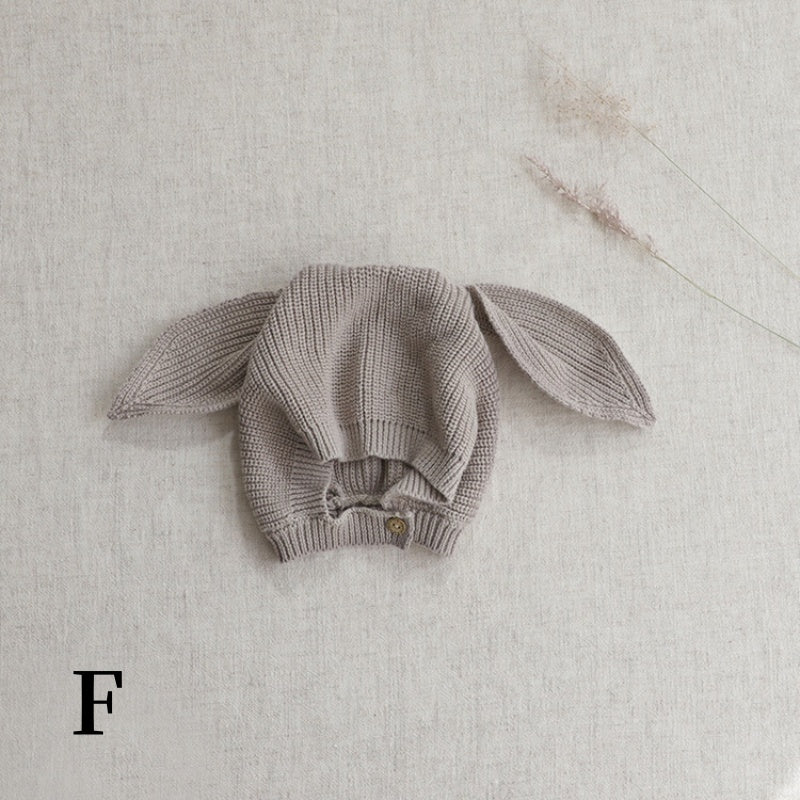 【BABY】無地ニットカーディガン、サロペットロンパース、大きな耳帽子SK101529