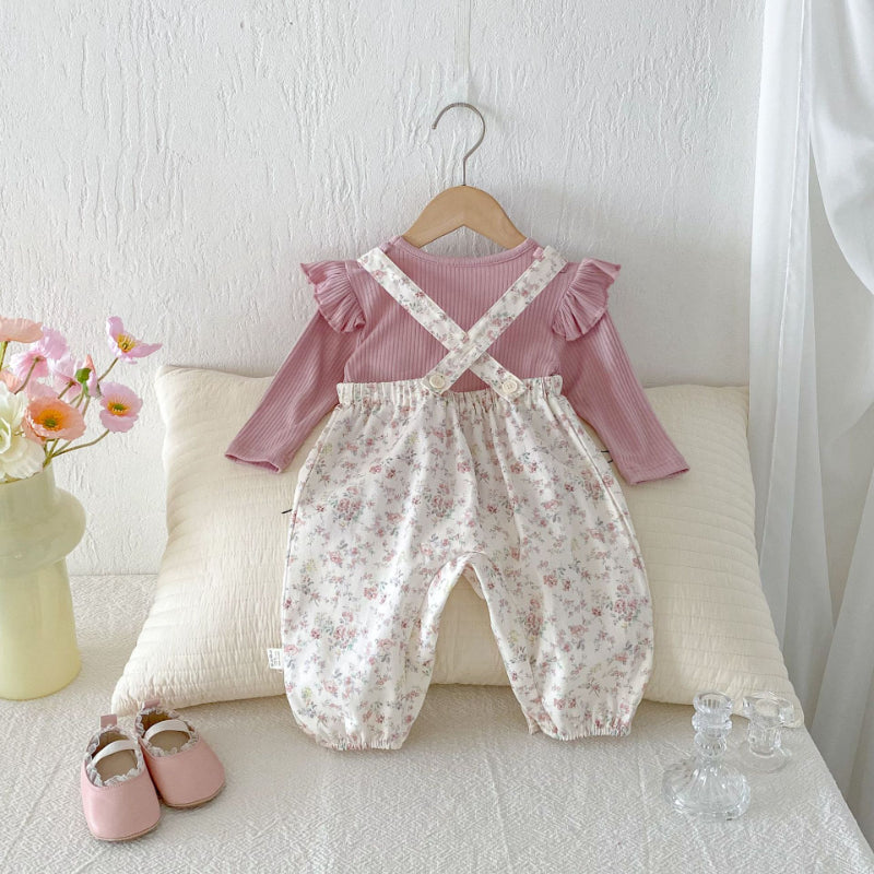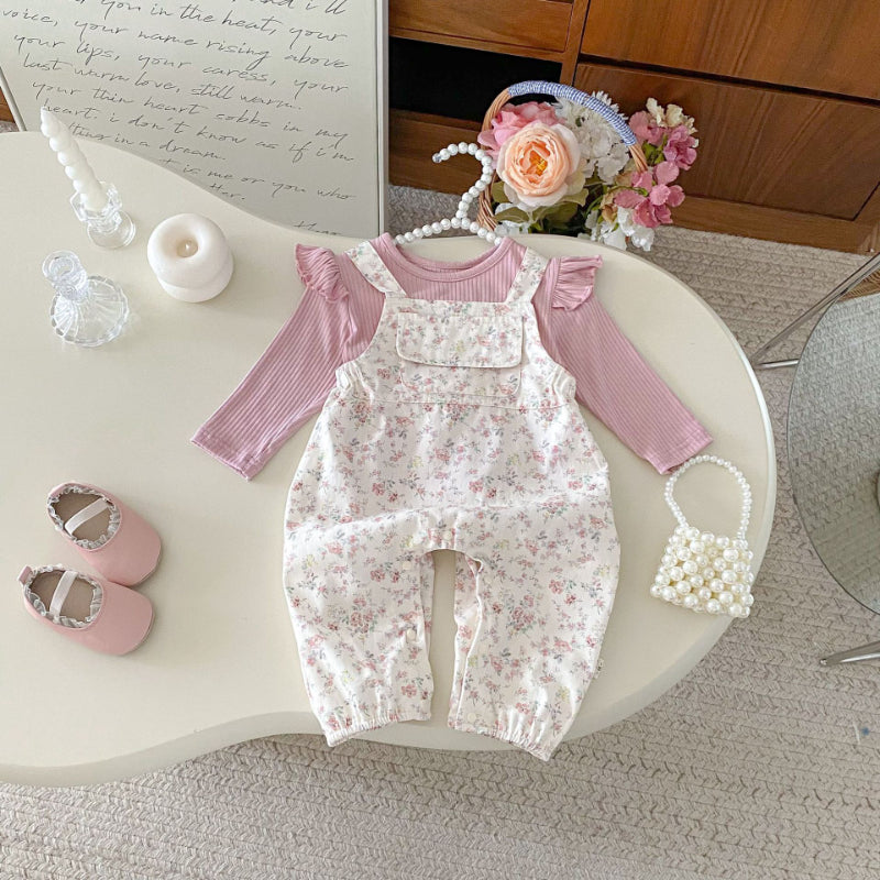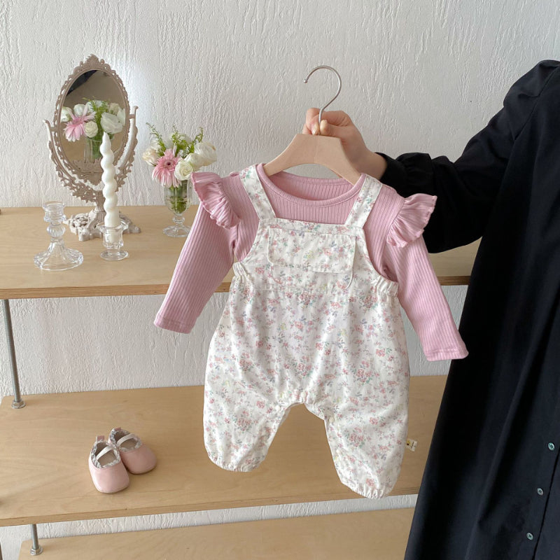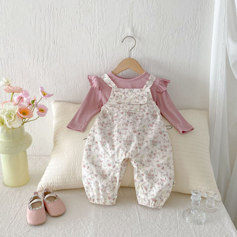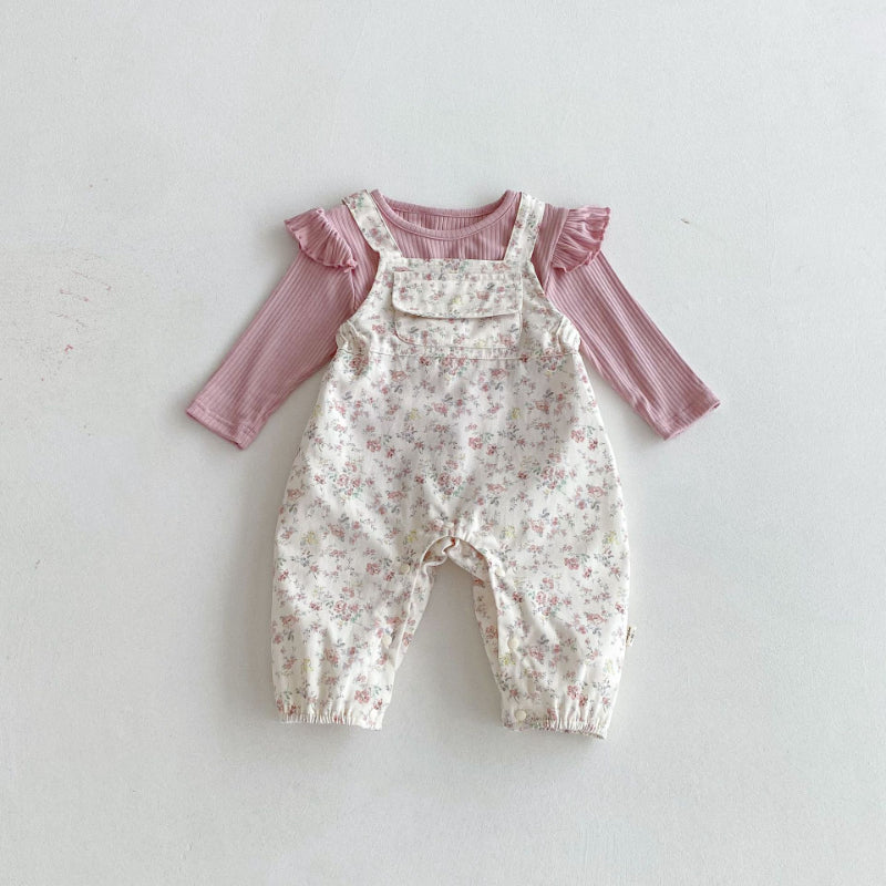 【BABY】無地Tシャツ、花柄サロペットパンツSK092317