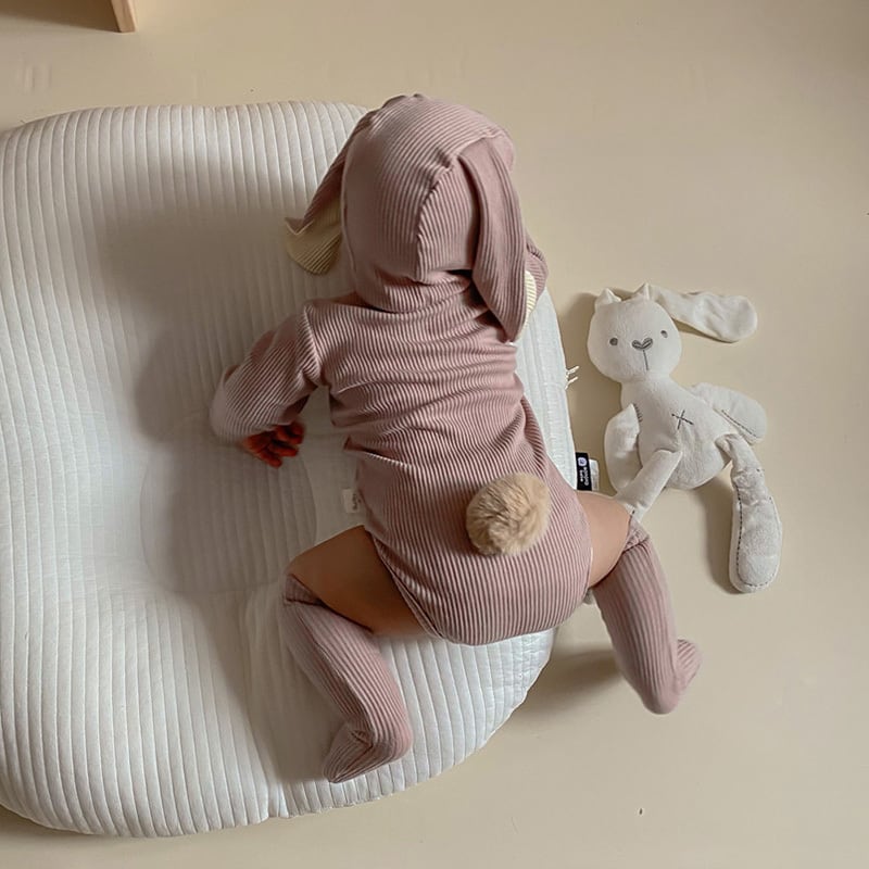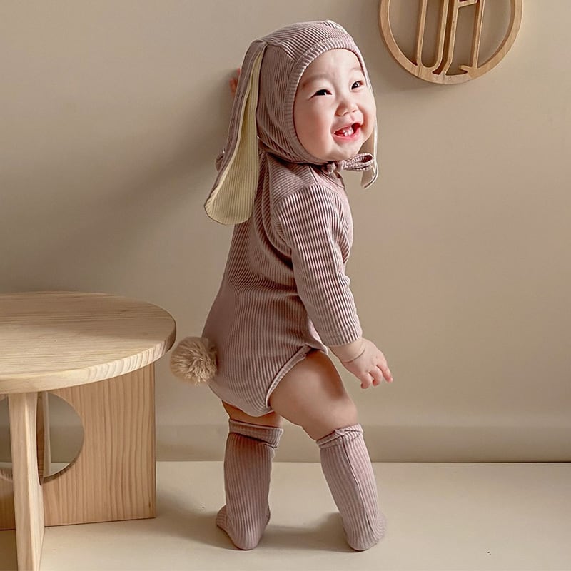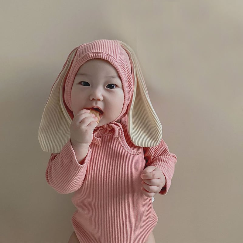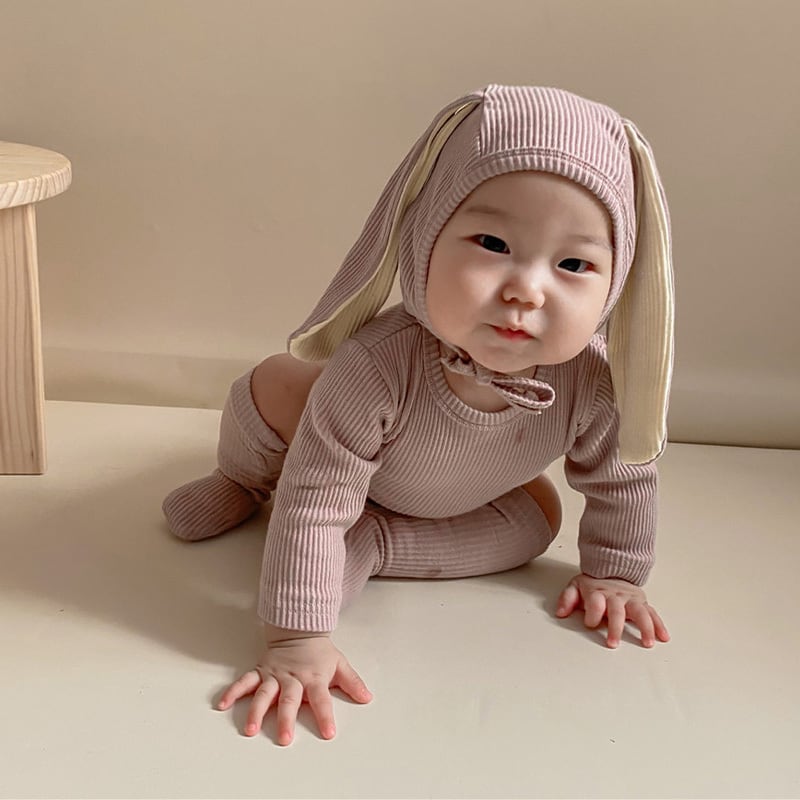 【BABY】ウサギ耳帽子付け純色綿製ロンパースセット2色SK11362