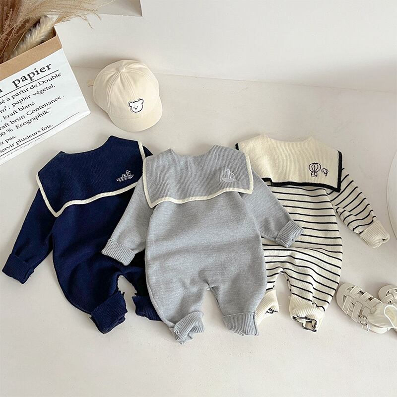 【BABY】セーラー襟ニットロンパース全3色SK11363
