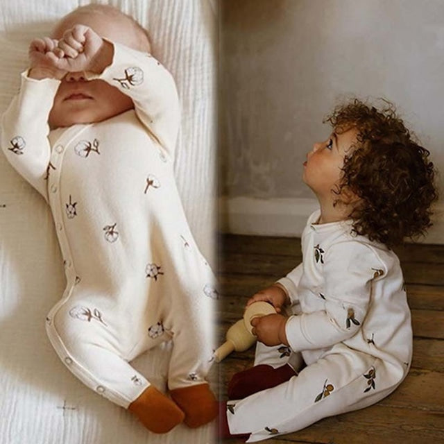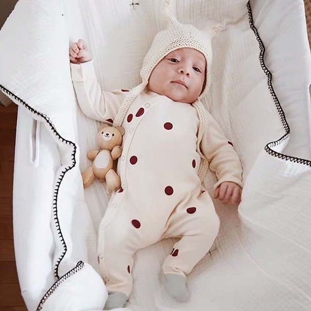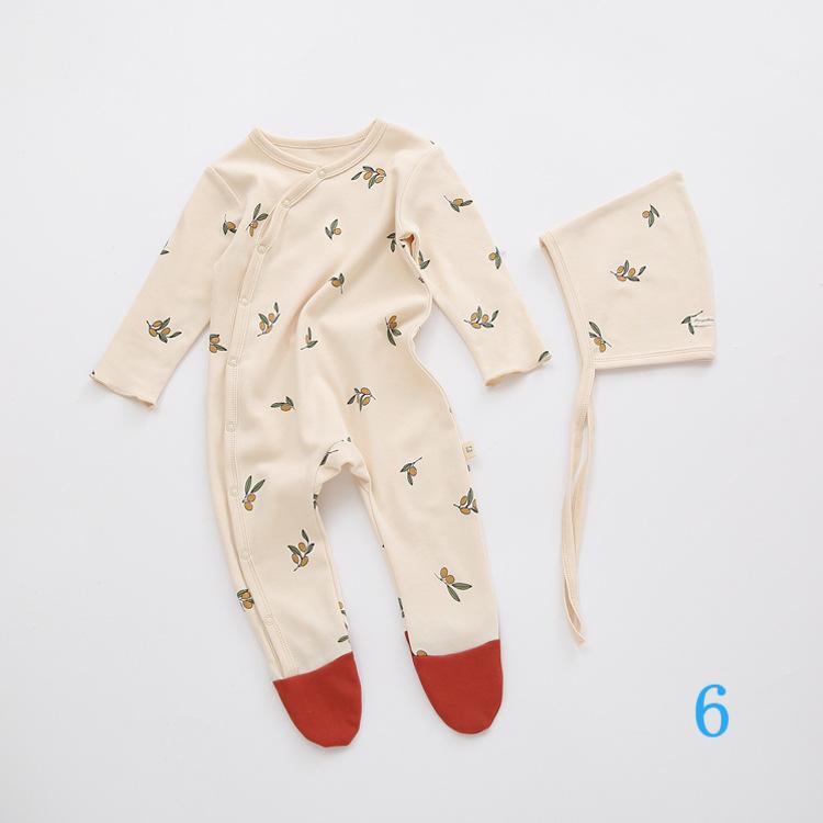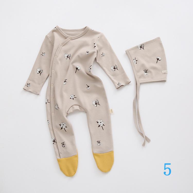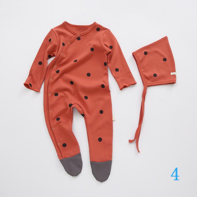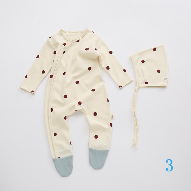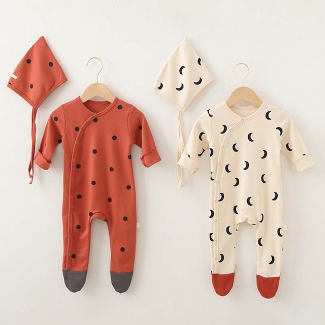 【BABY】帽子&靴下付け月OR花ORドット柄ロンパース全6色SK11355