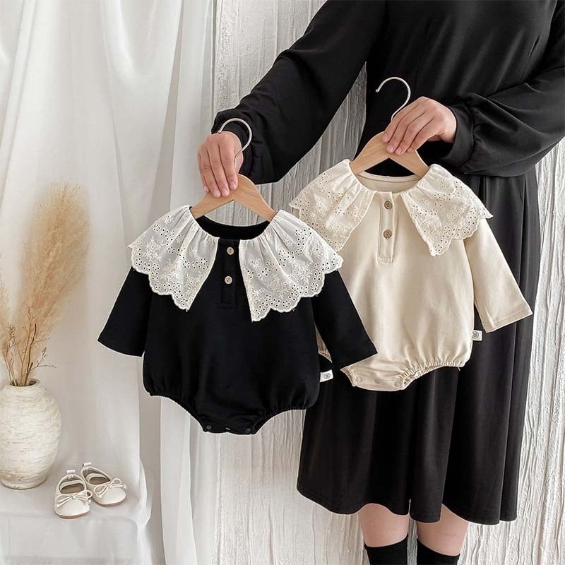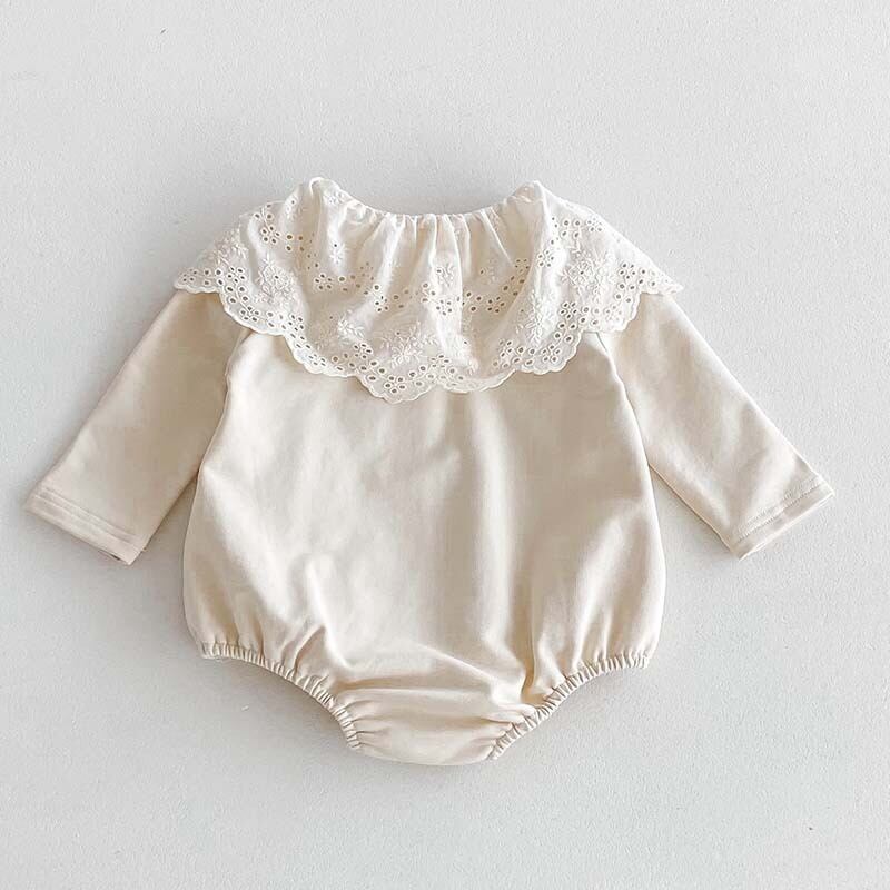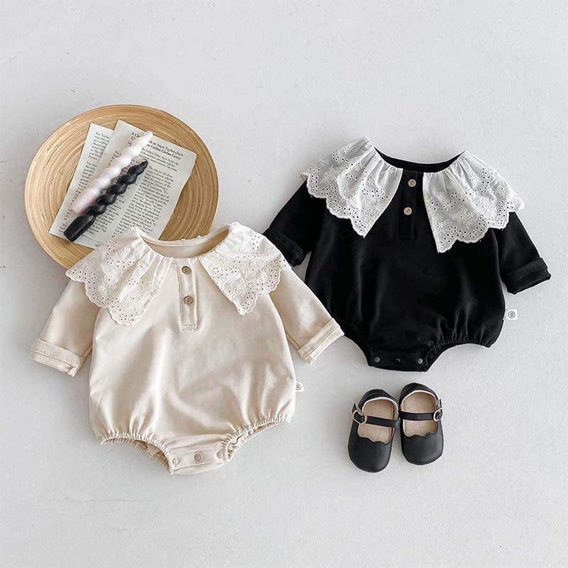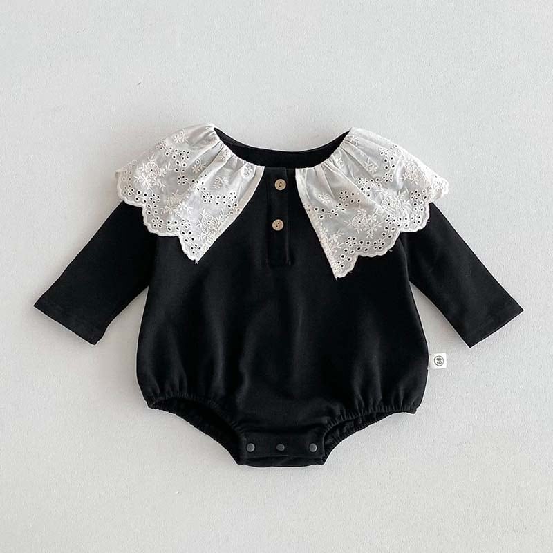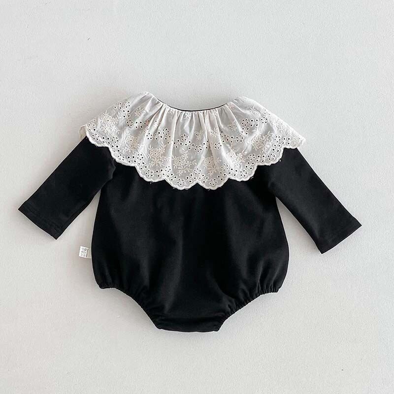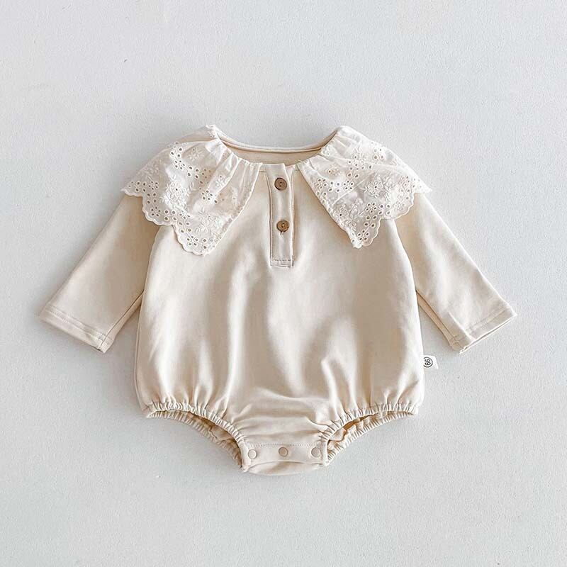 【BABY】花刺しゅう入りレース襟無地ロンパース2色SK11360