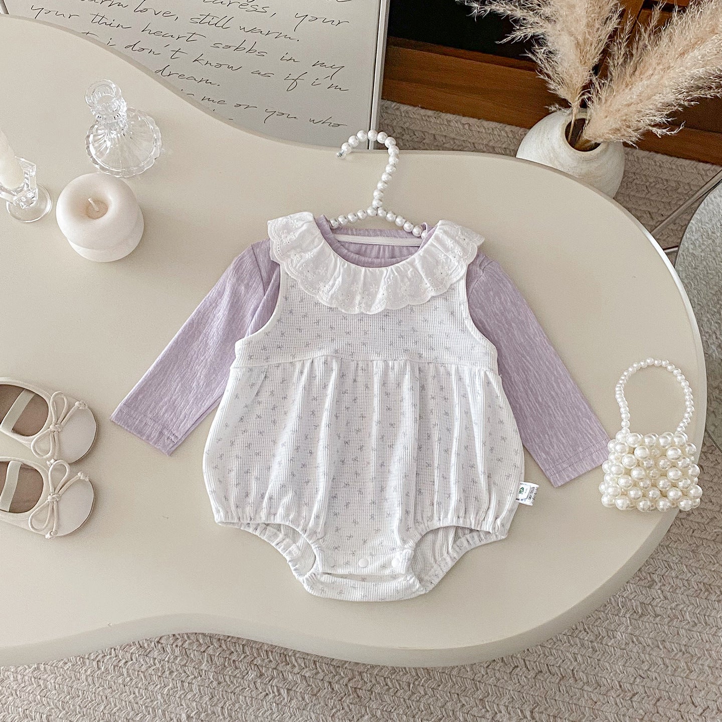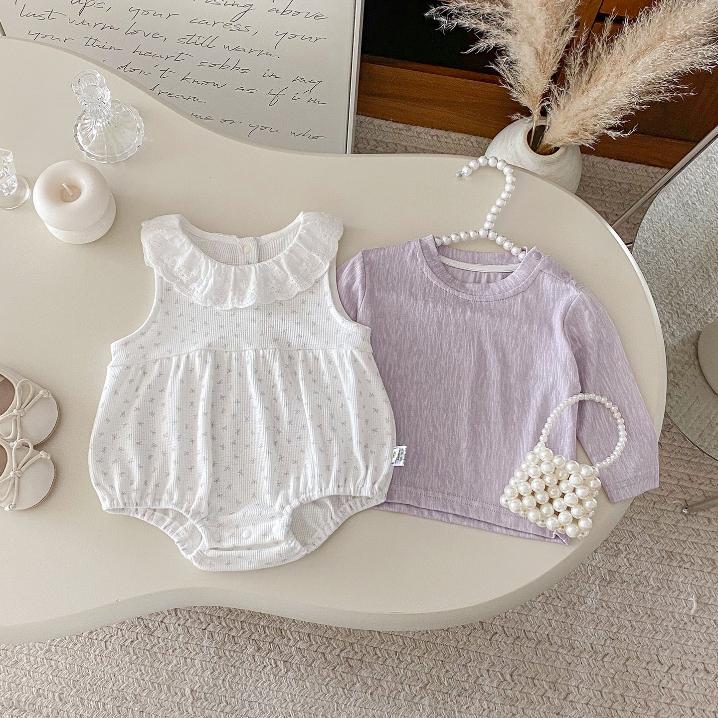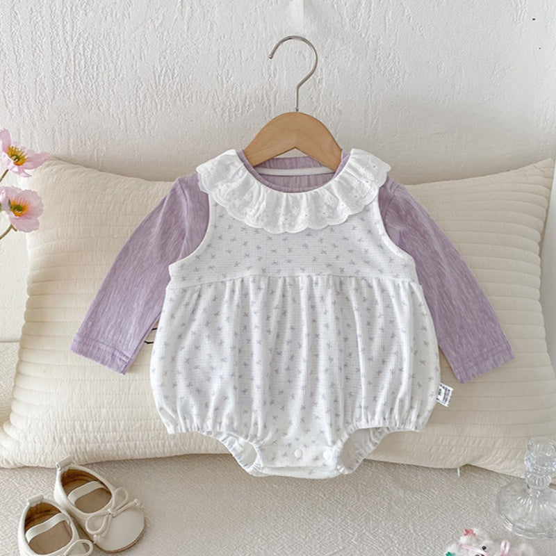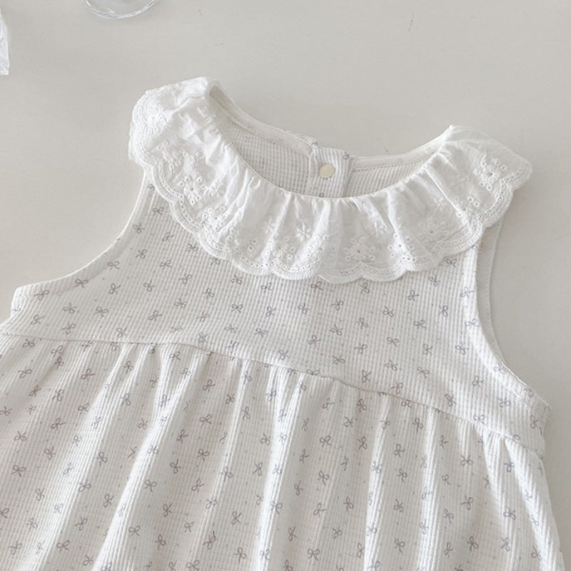 【BABY】総柄蝶結びロンパース&無地トップスSK100412