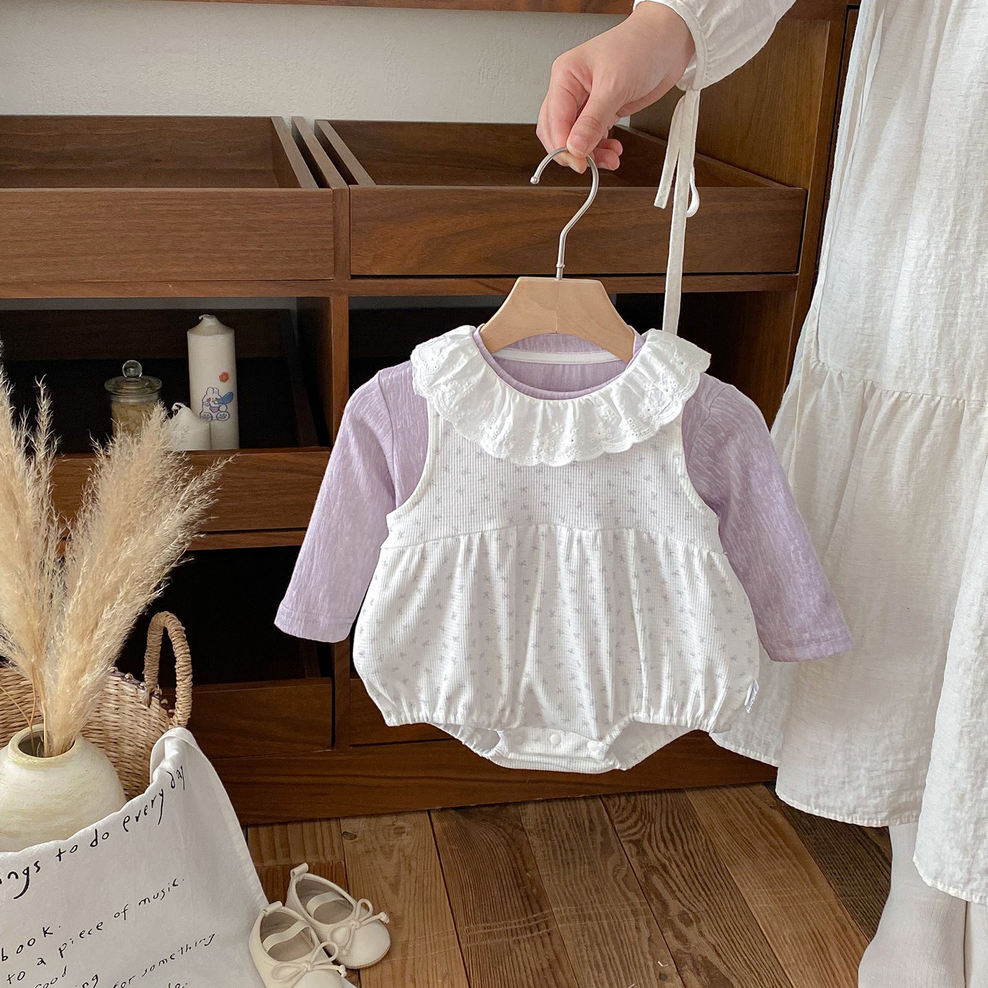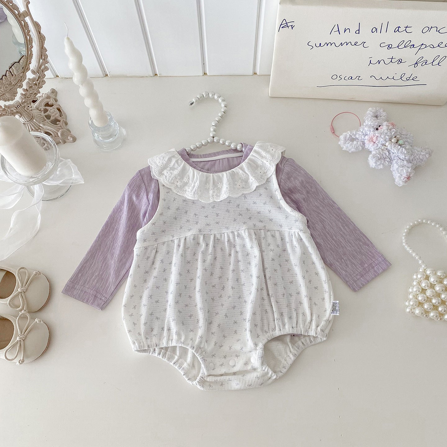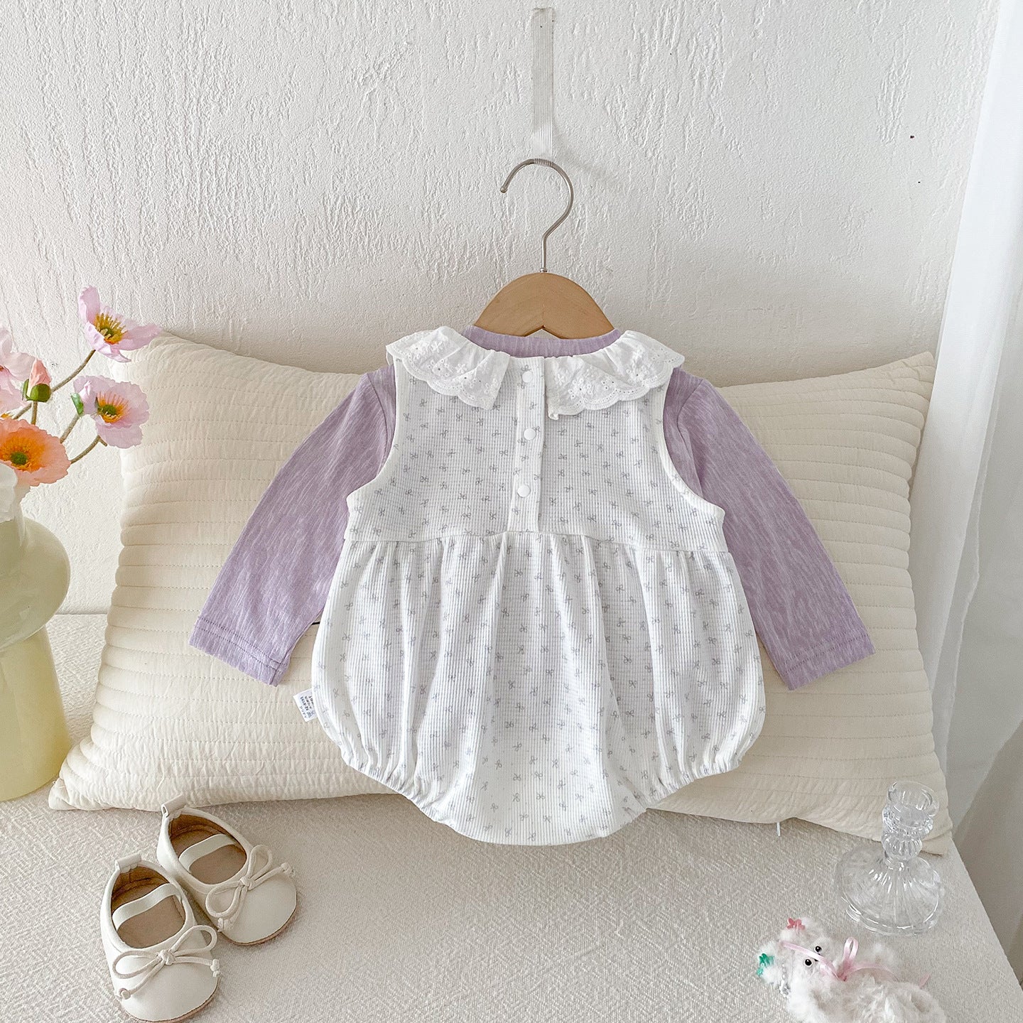【BABY】総柄蝶結びロンパース&無地トップスSK100412
