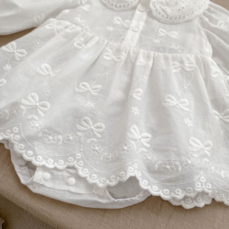 【BABY】翻襟蝶結び刺繍ロンパーススカートSK092815