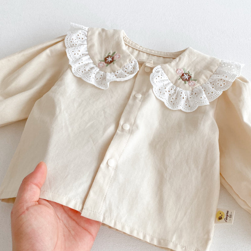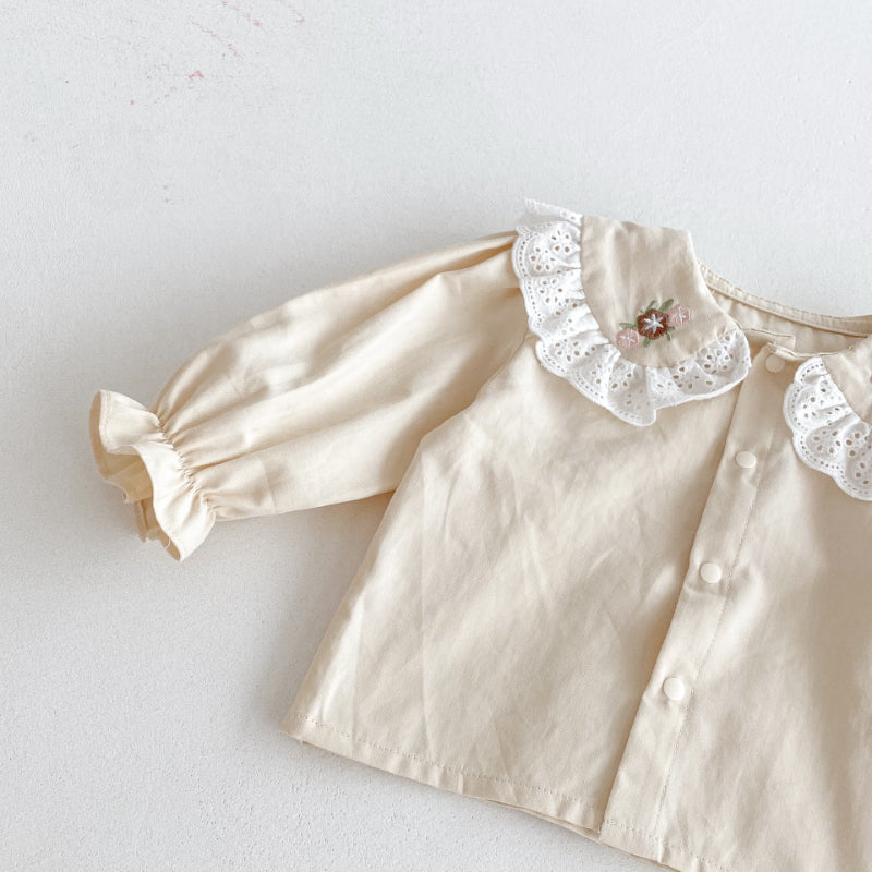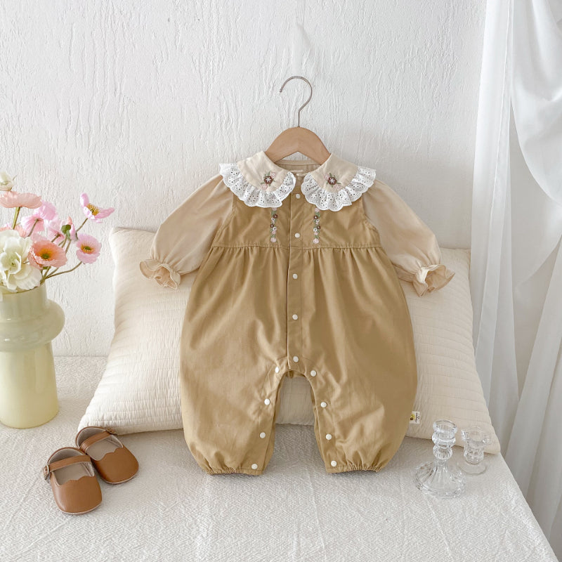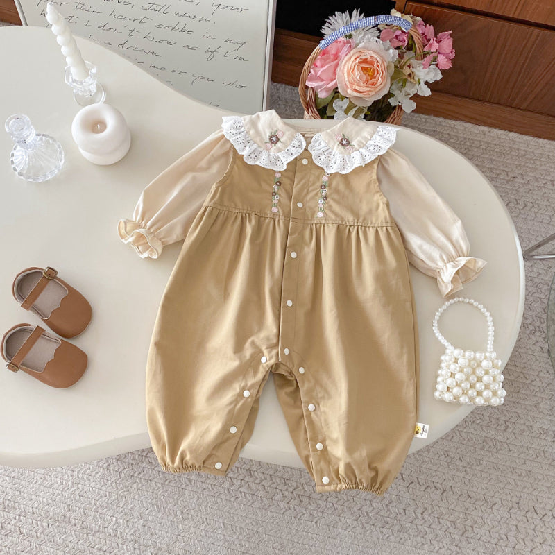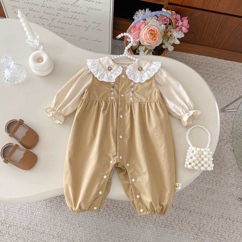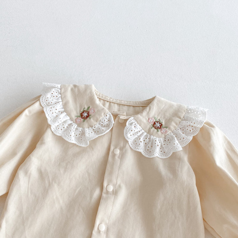 【BABY】花刺繍サロペット&レース襟ブラウスSK092516