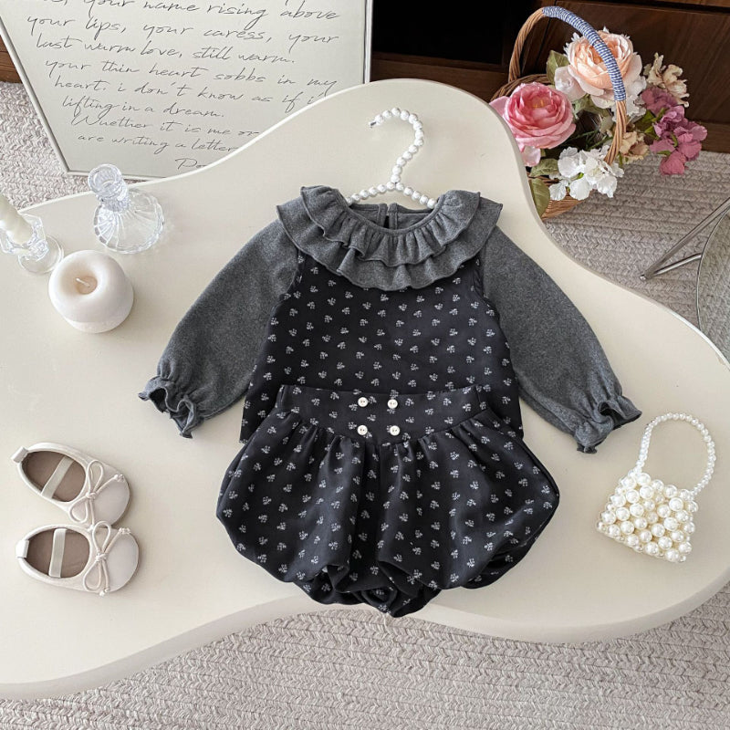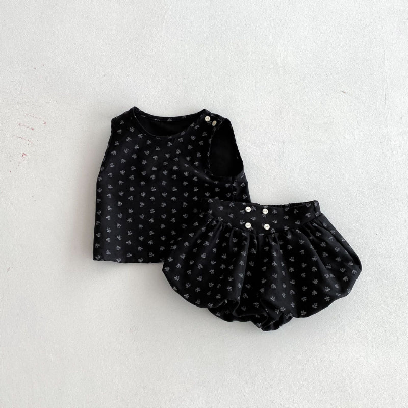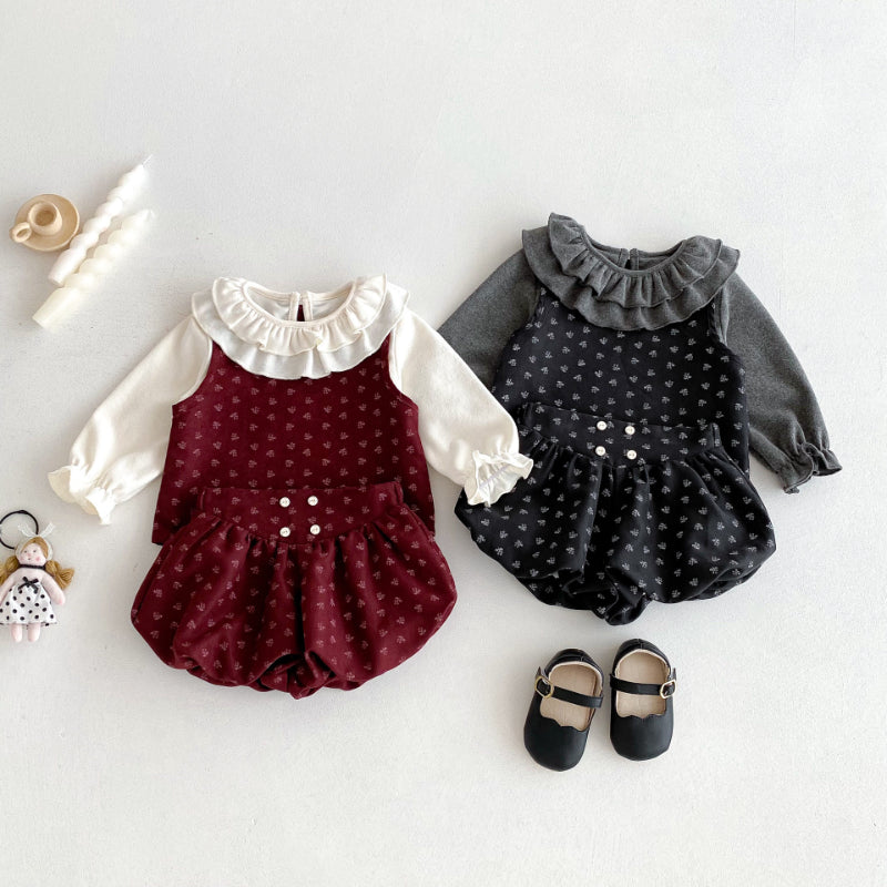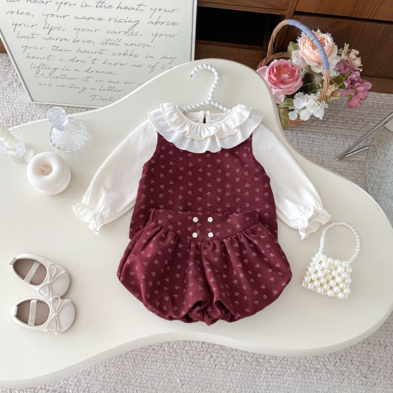 【BABY】花柄キャミ&バルーンパンツ&丸襟Tシャツ3点セットSK100319
