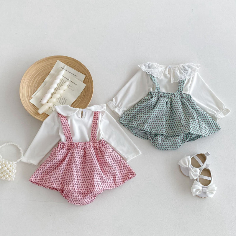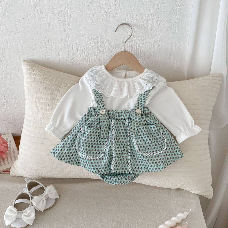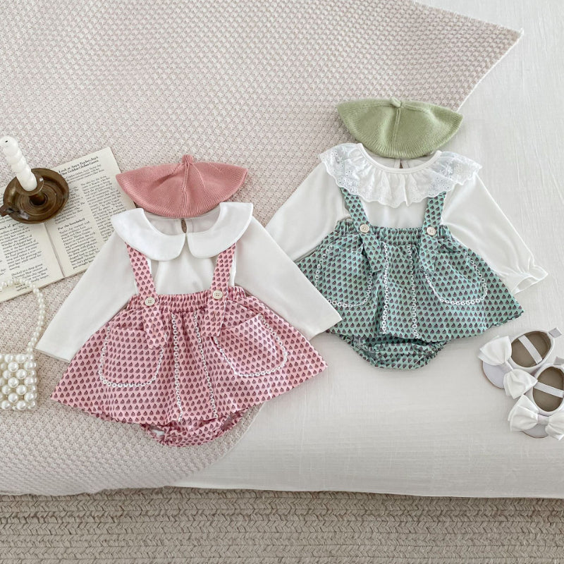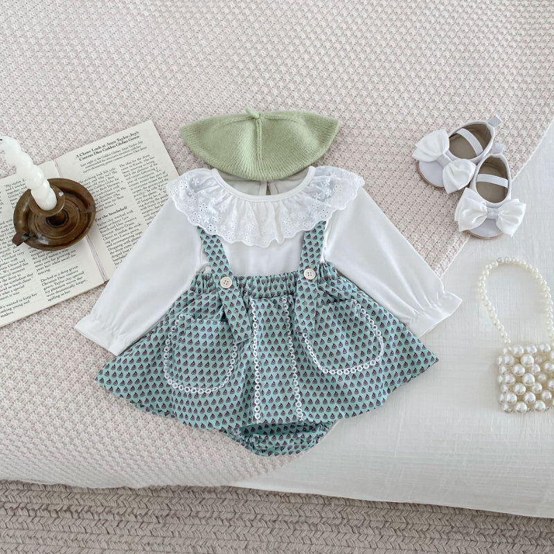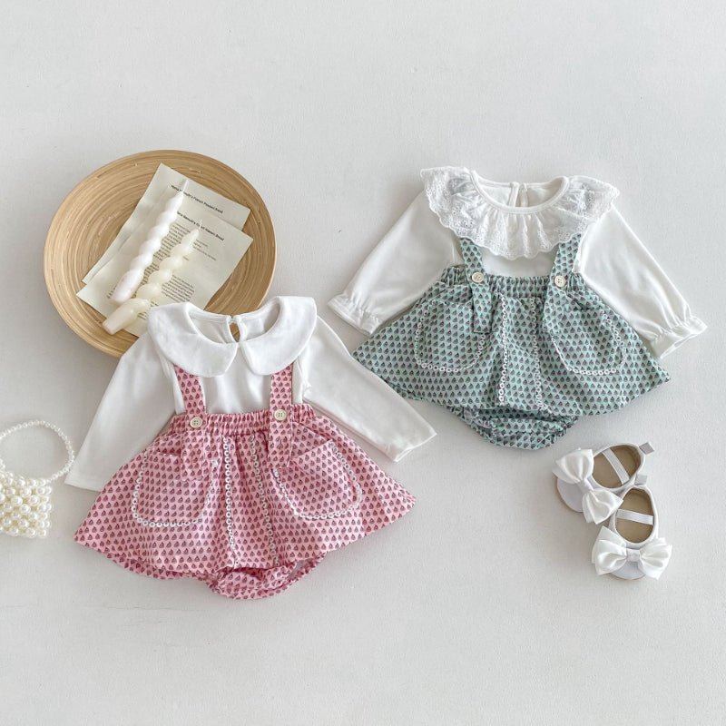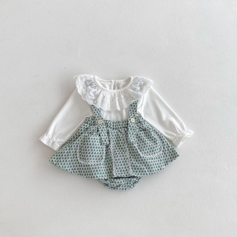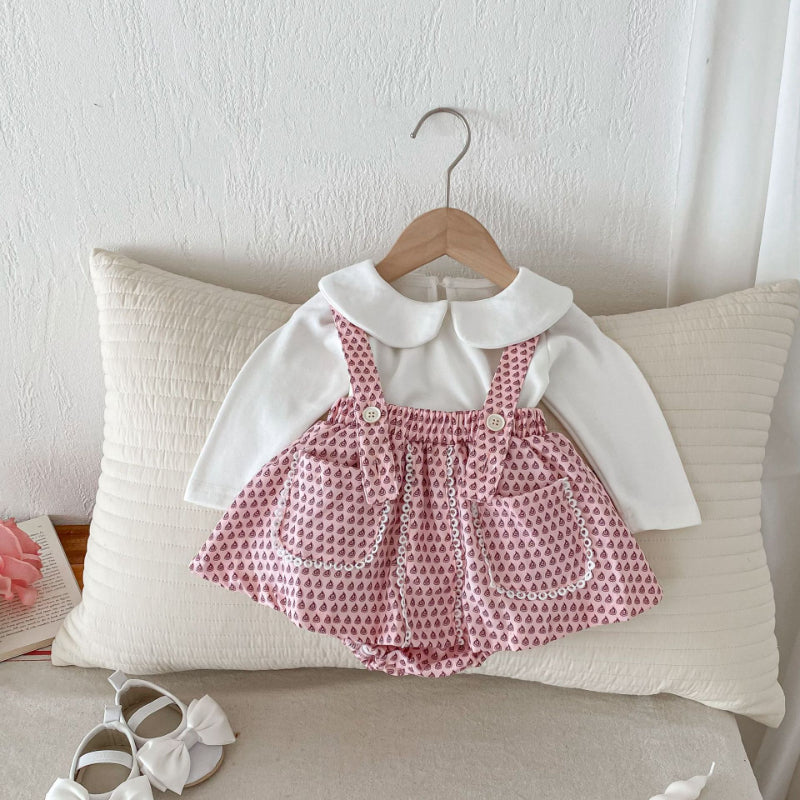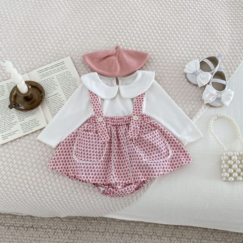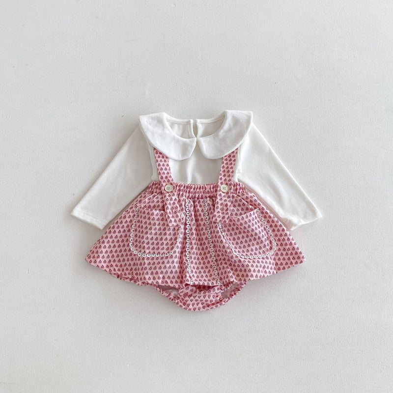 【BABY】花柄サロペットスカート、長袖TシャツSK100331
