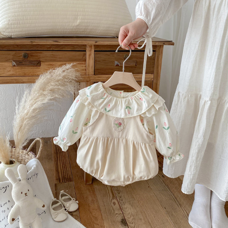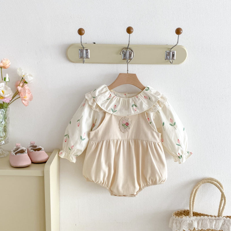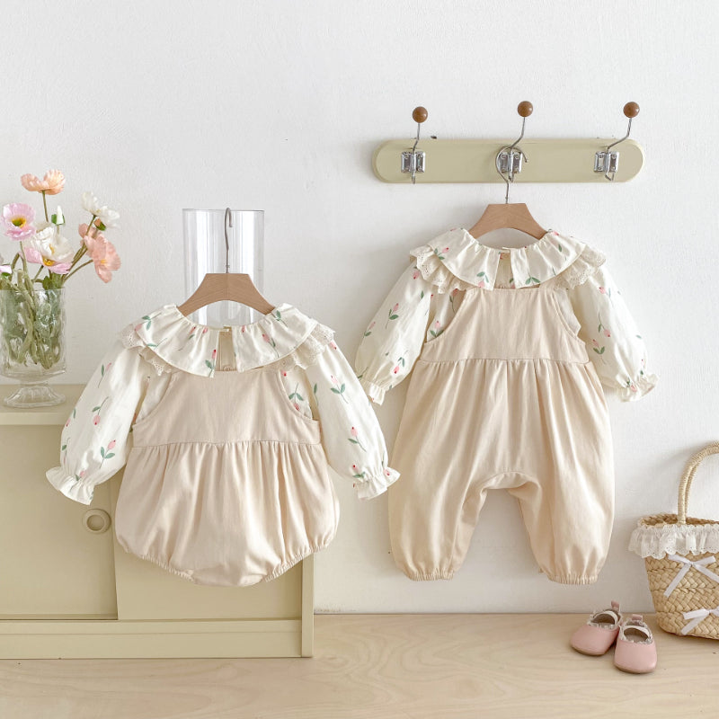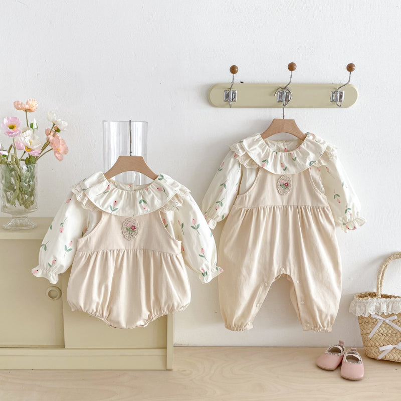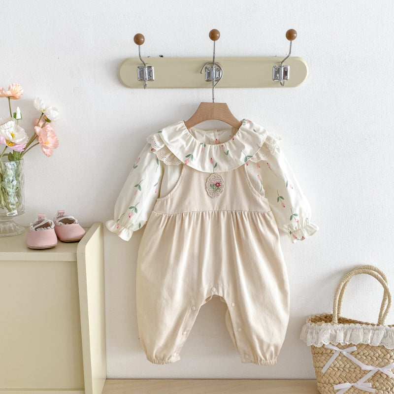 【BABY】花柄トップス、花刺繍サロペットパンツSK092318