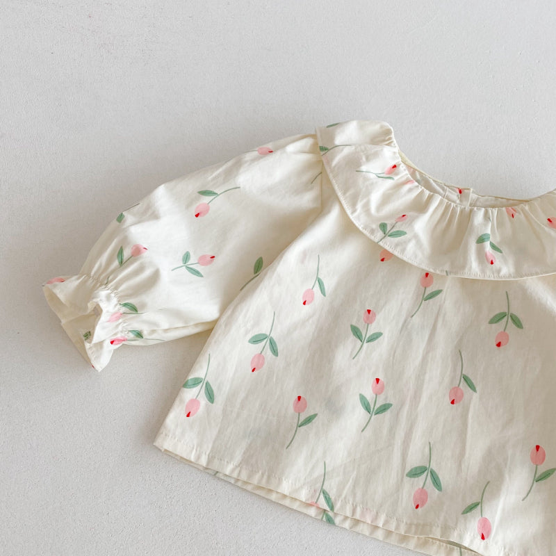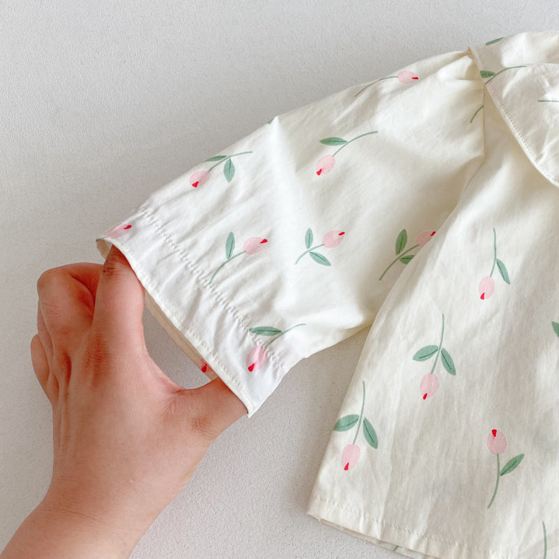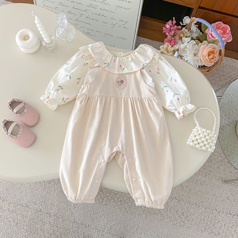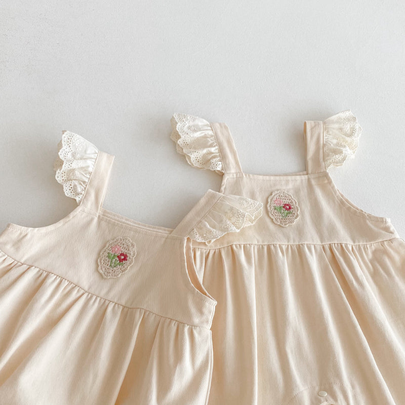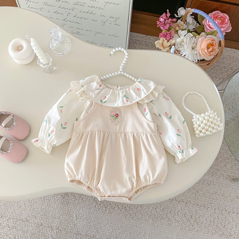 【BABY】花柄トップス、花刺繍サロペットパンツSK092318