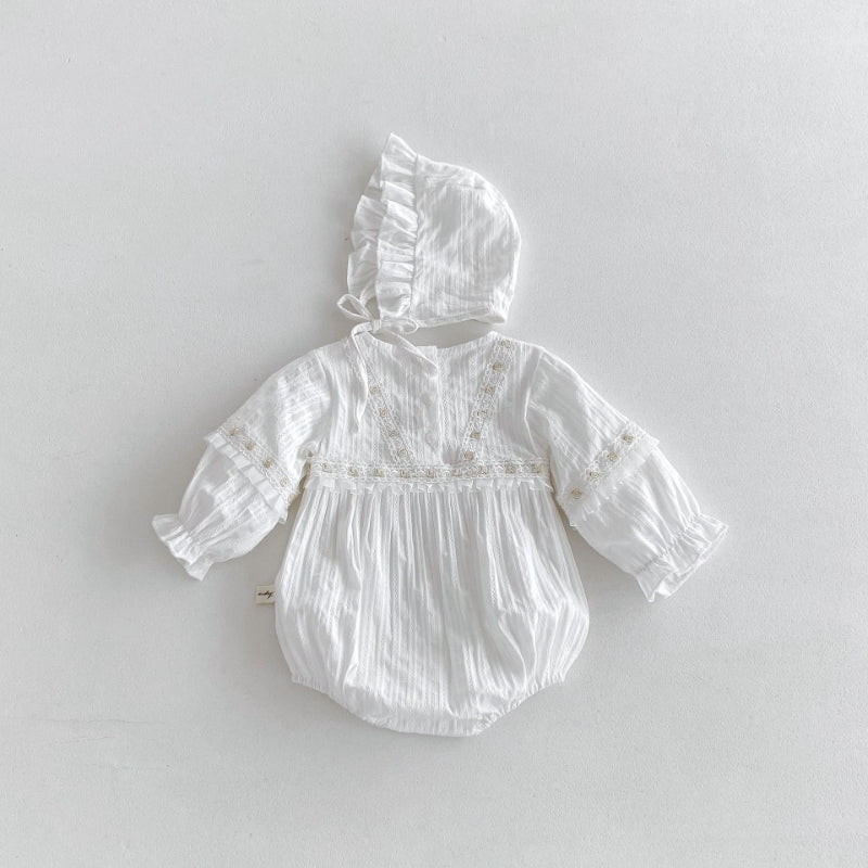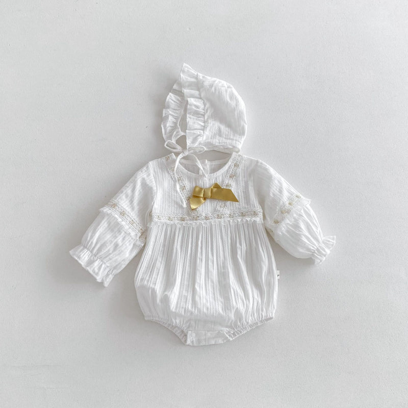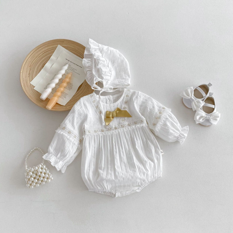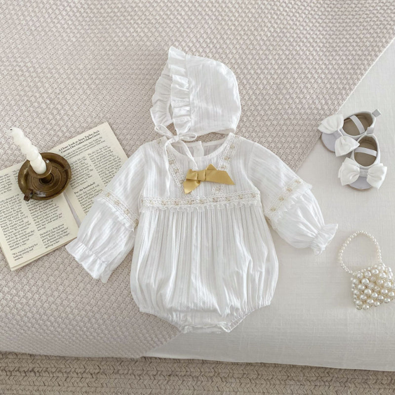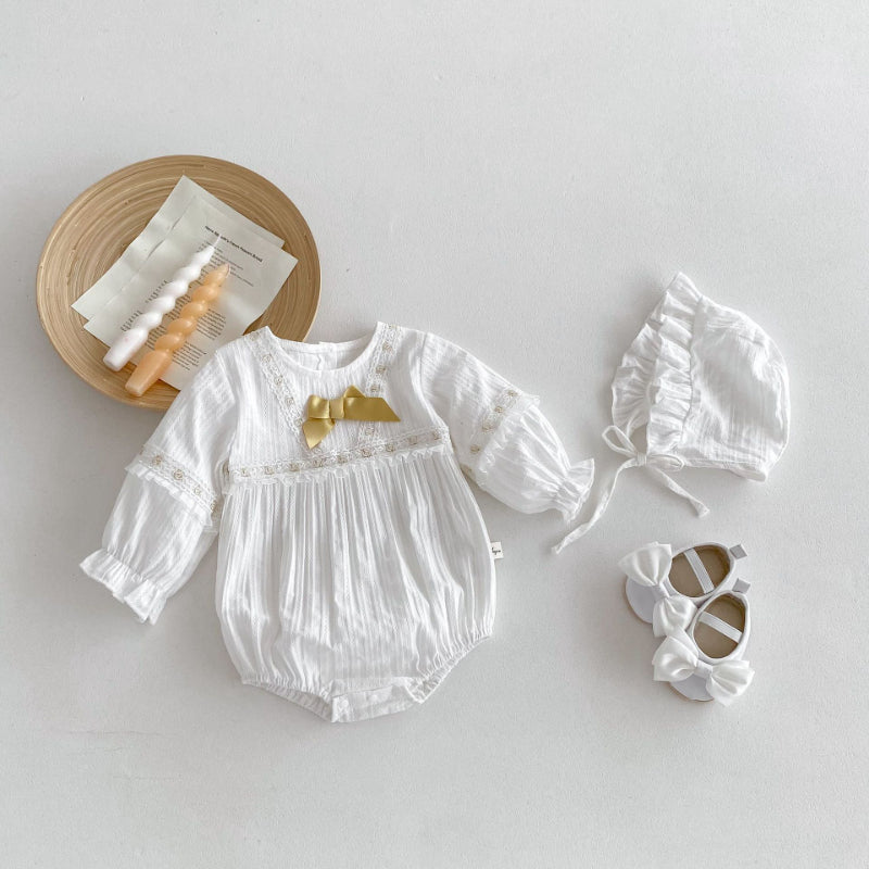 【BABY】蝶結びレースロンパース&帽子SK100314