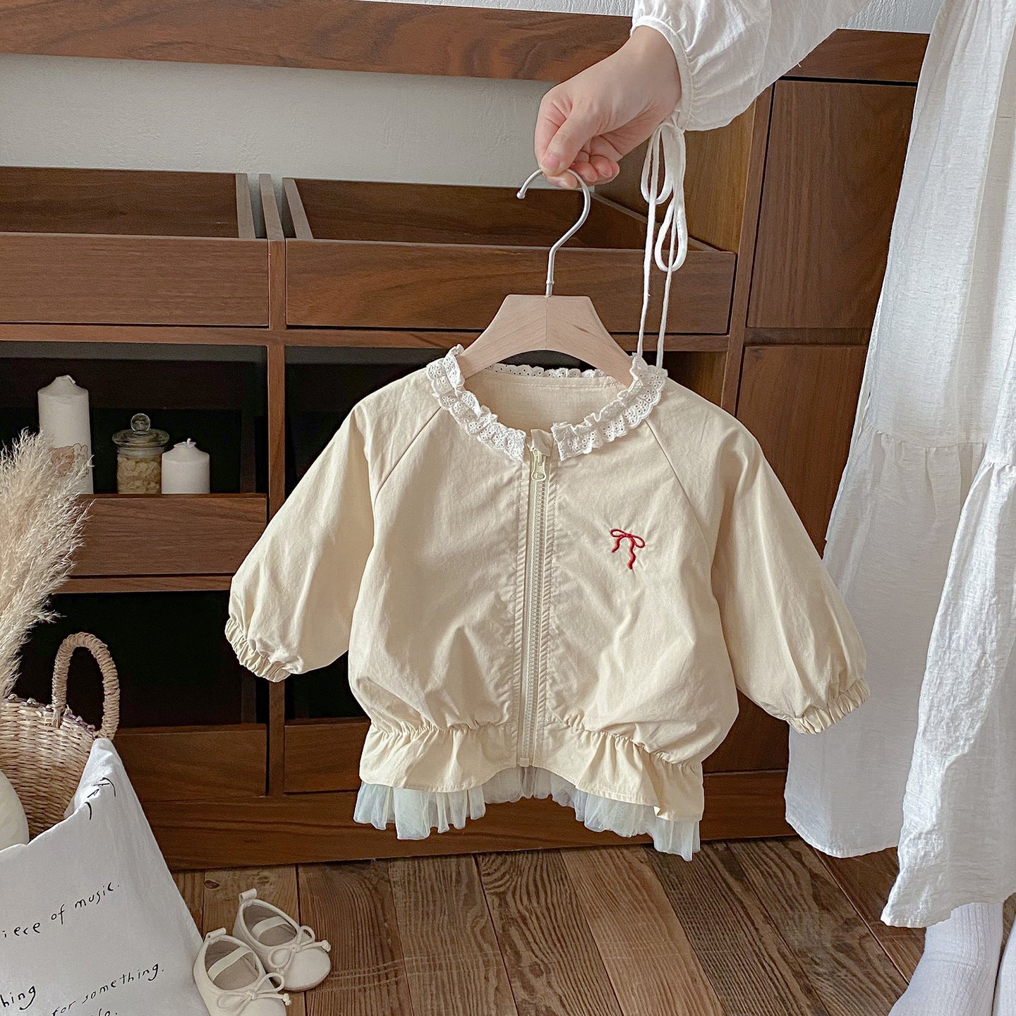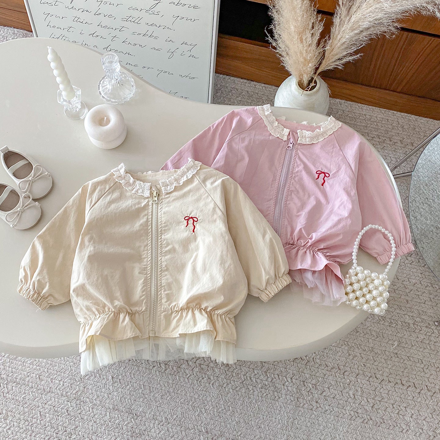 【BABY】蝶結び刺繍チュール縁アウターSK100450
