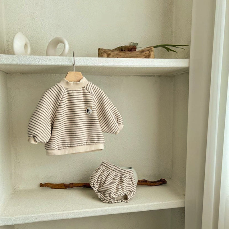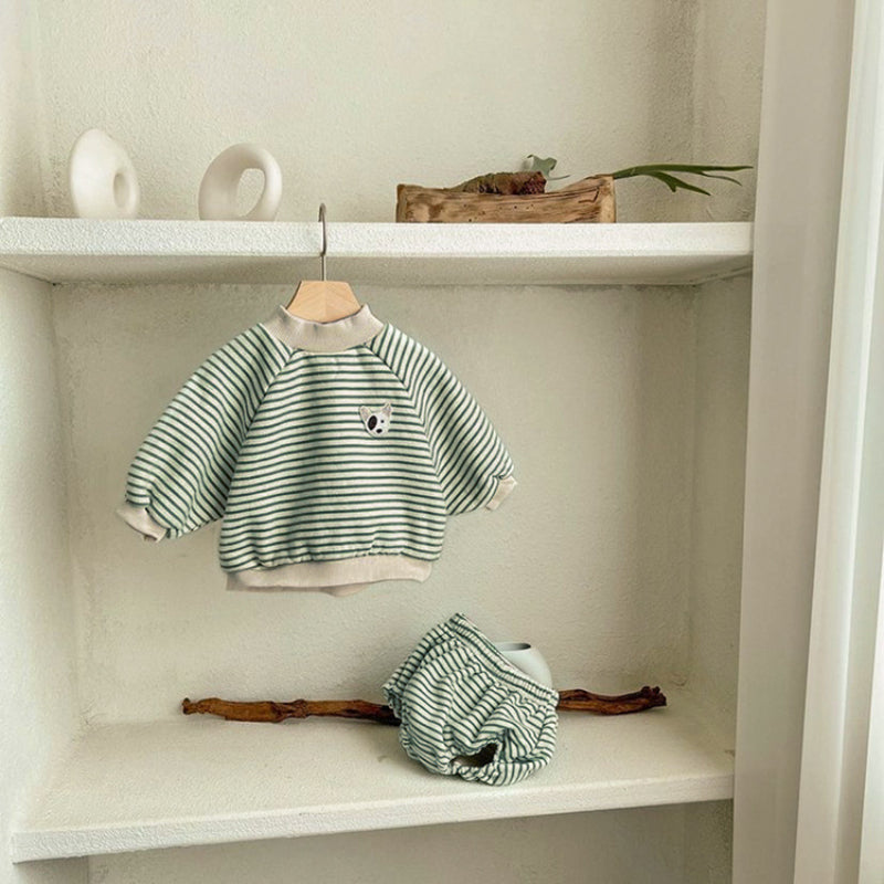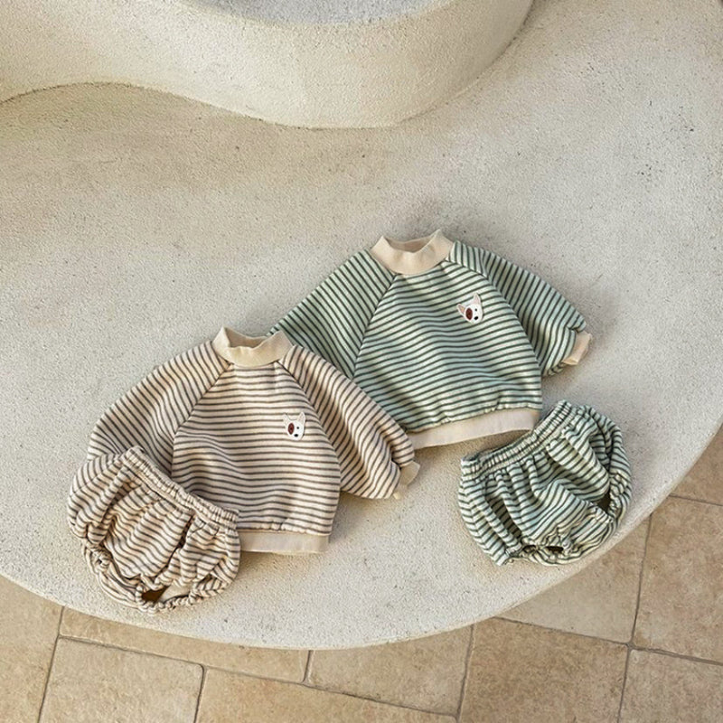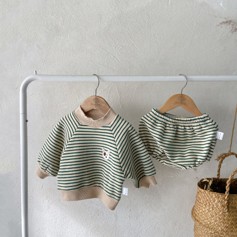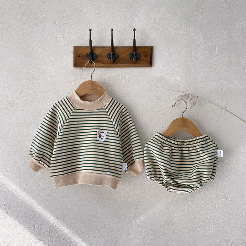 【BABY】裏起毛ボーダーハイネックスウェット&かぼちゃパンツSK101511