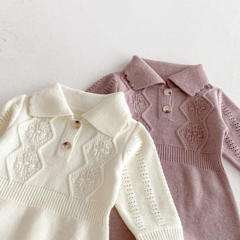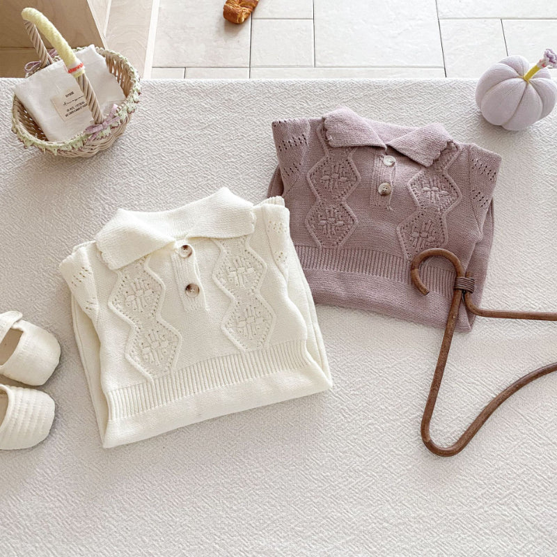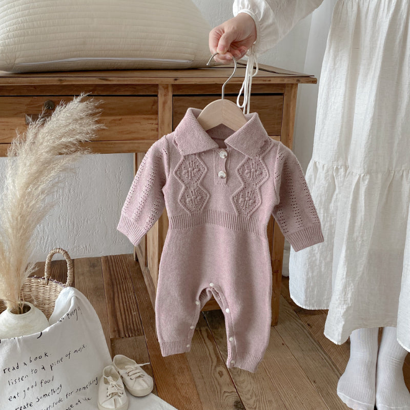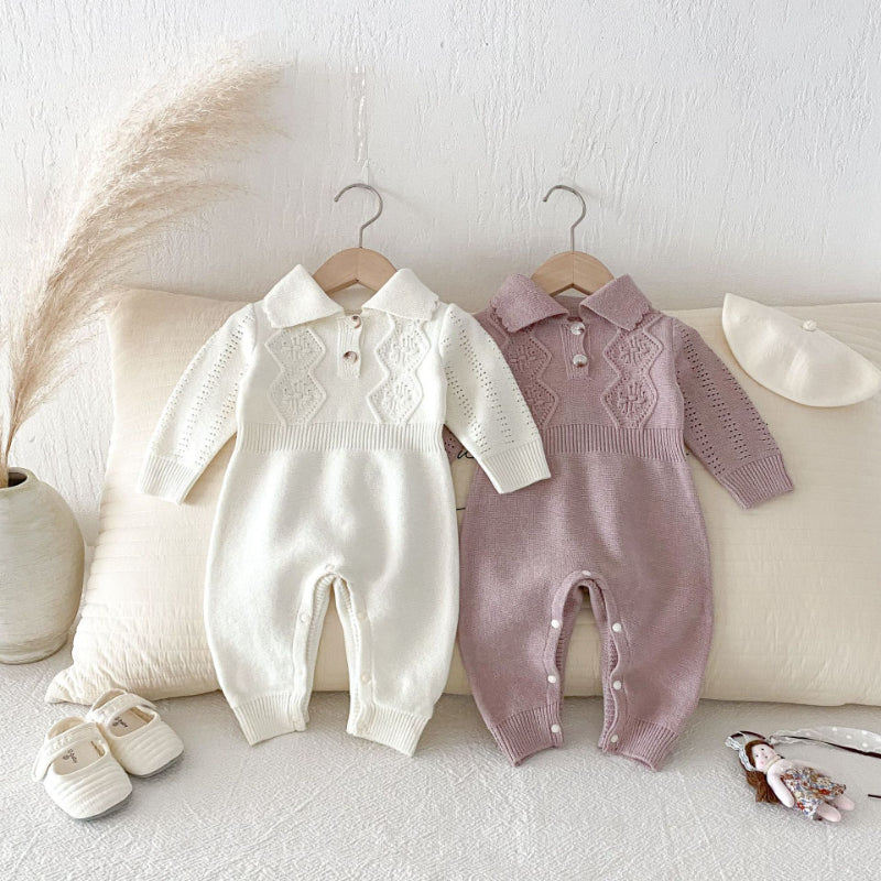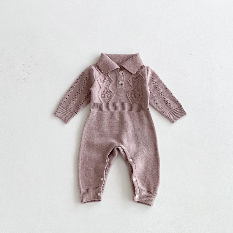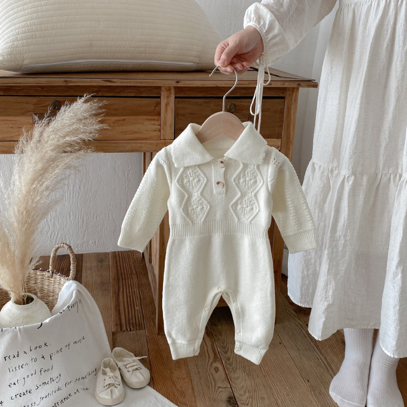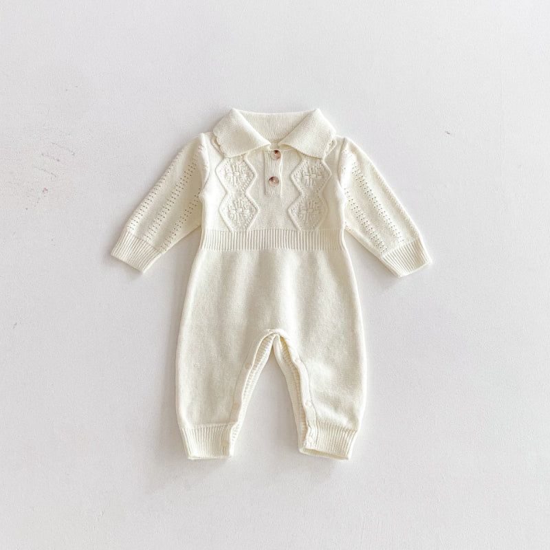 【BABY】襟付きアラン編みニットカバーオールSK092526