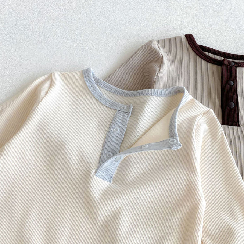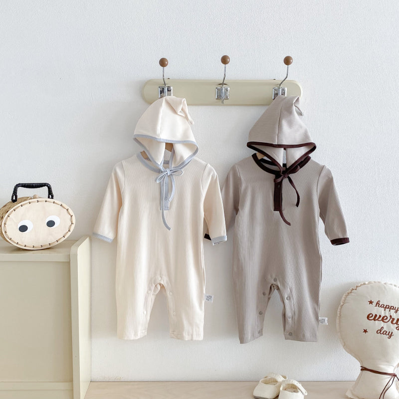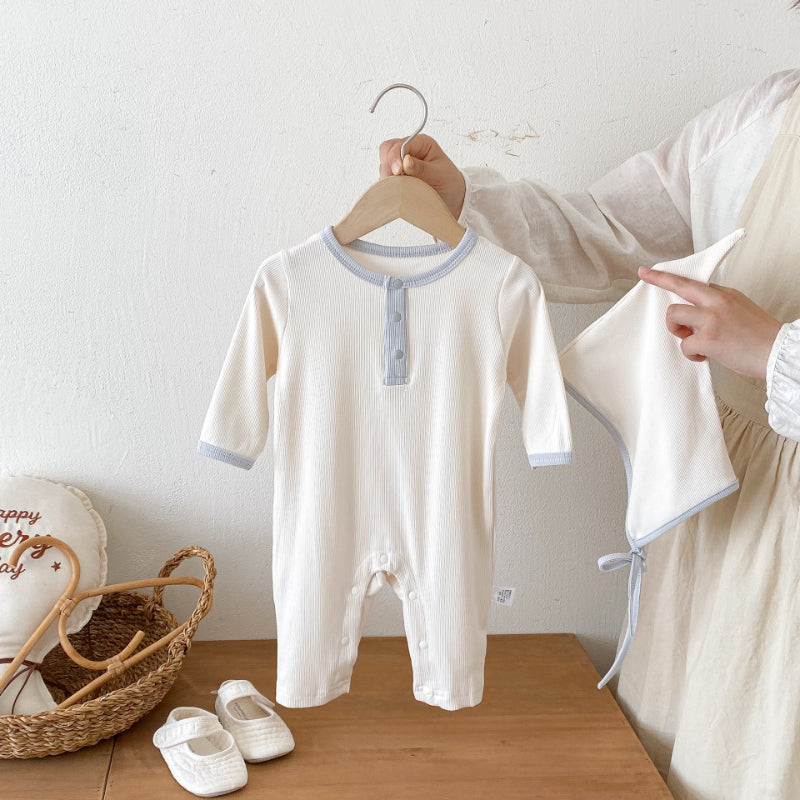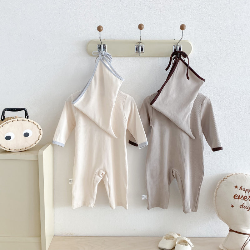 【BABY】配色長袖クルーネックカバーオール&帽子SK100117