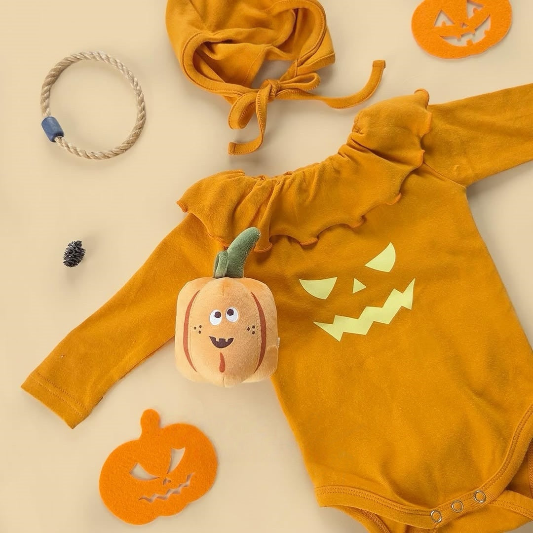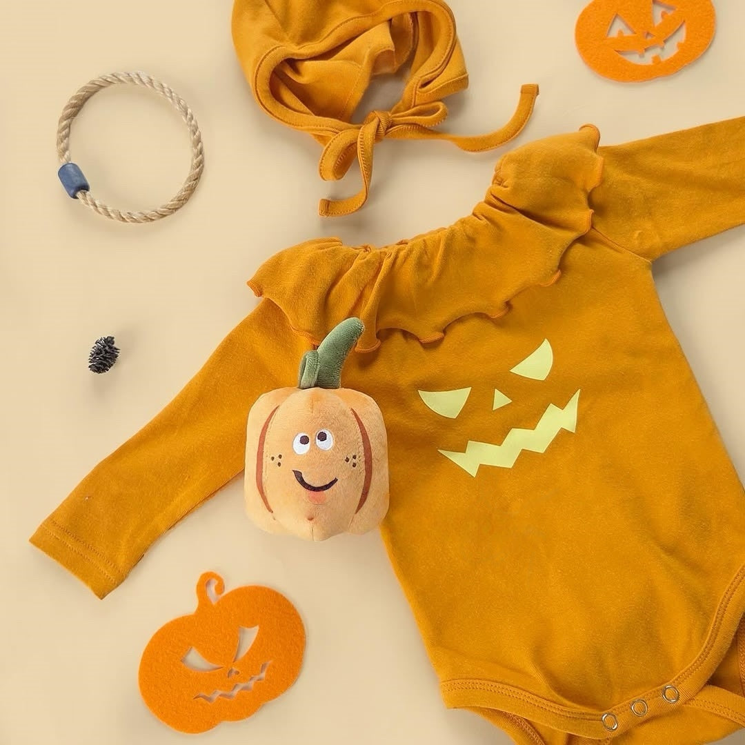 【BABY】長袖かぼちゃロンパース&帽子SK101703