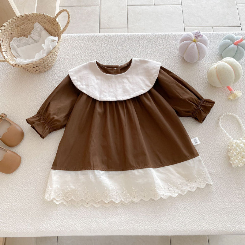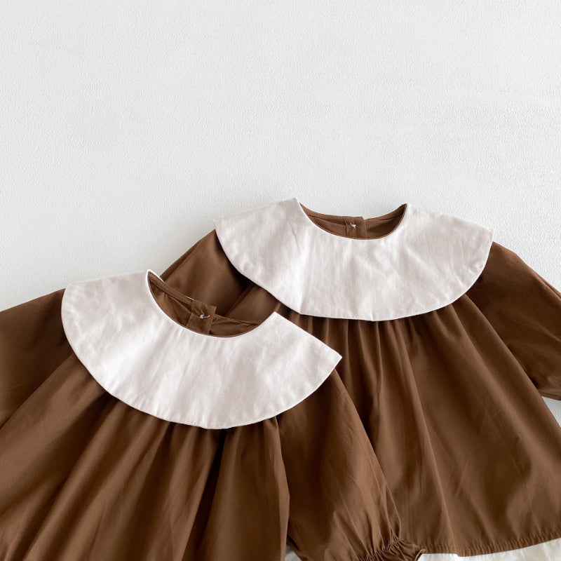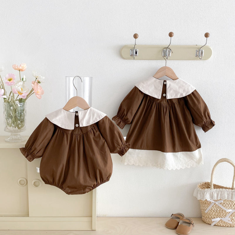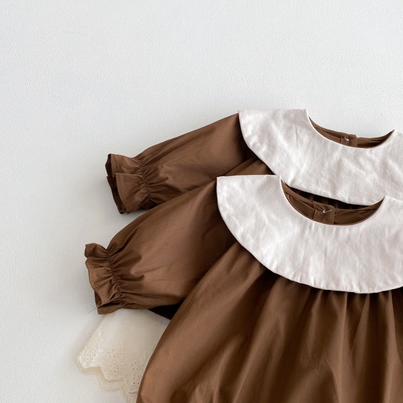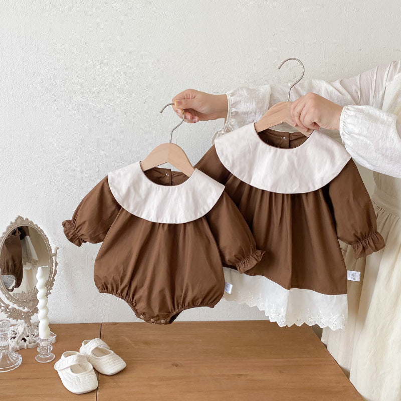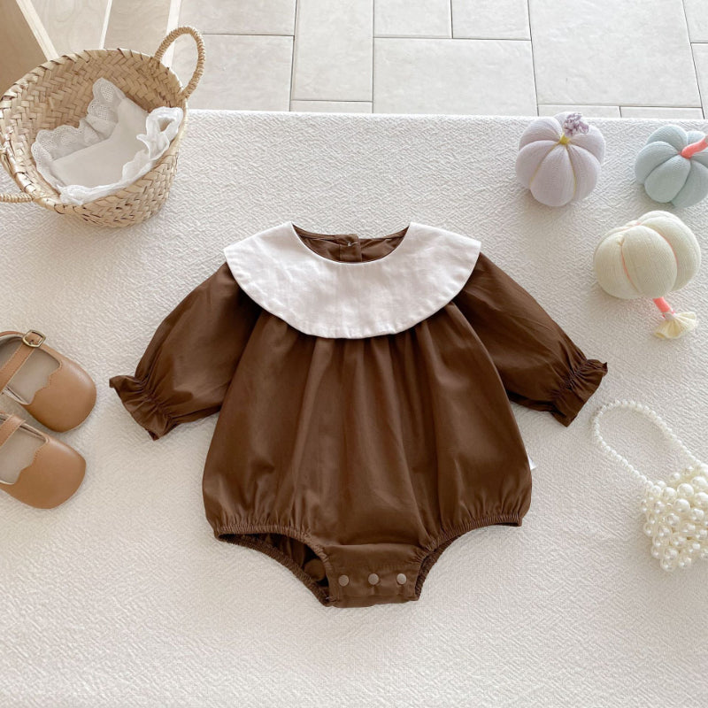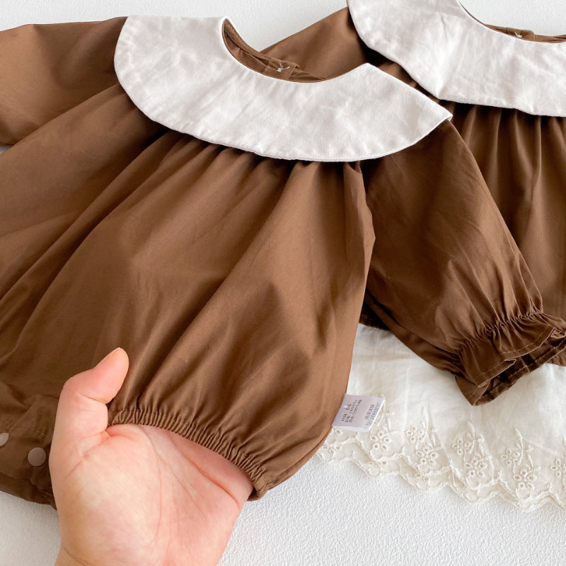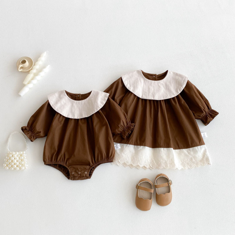 【BABY】長袖クルーネックロンパース、ワンピースSK100124