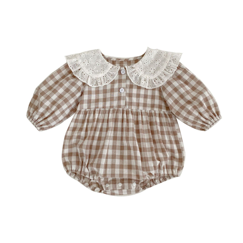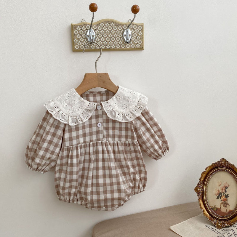 【BABY】韓国風レース襟チェック柄ロンパースSKO70717