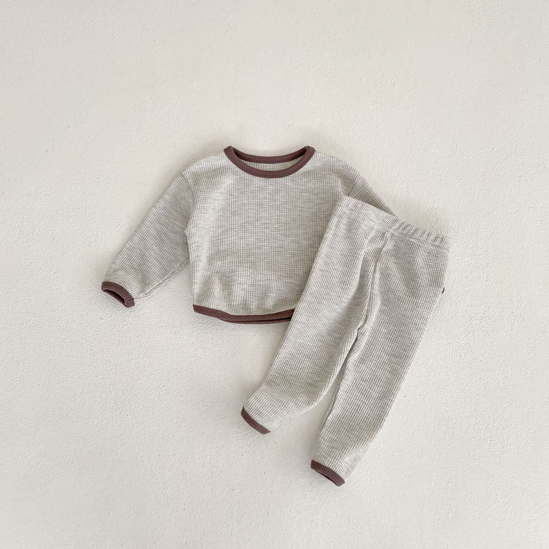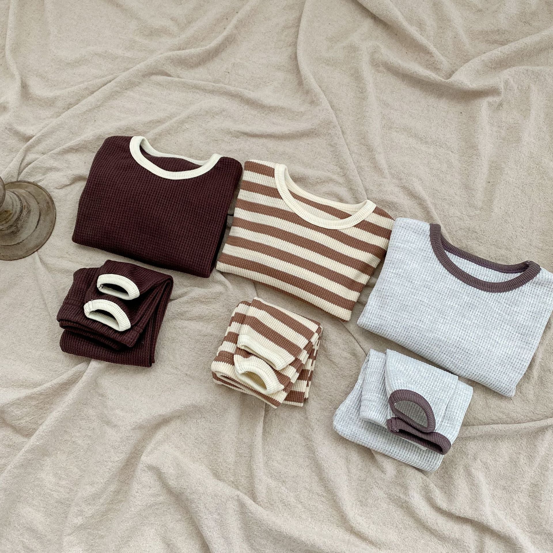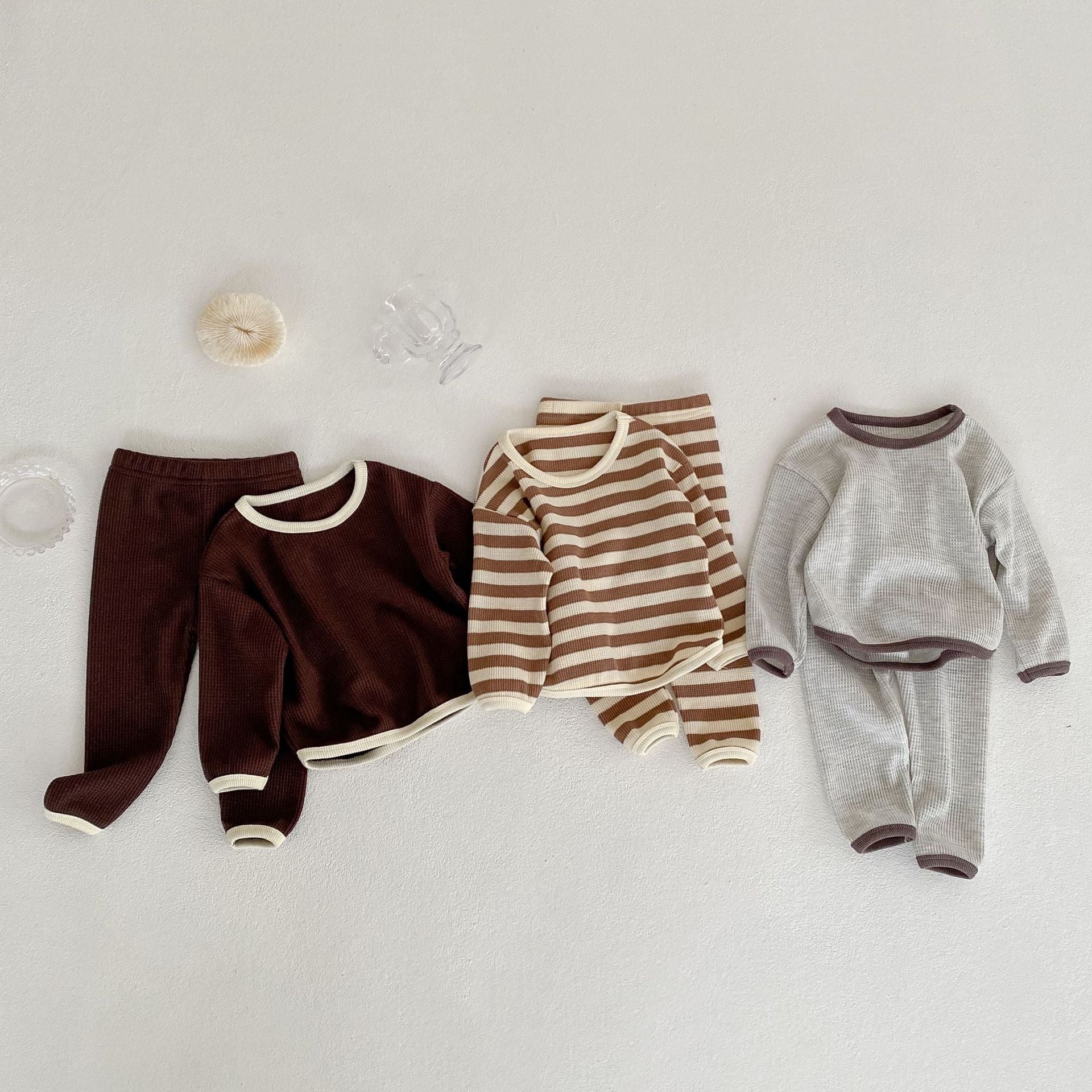 【BABY】韓国風ワッフル無地/ボーダーセットアップSK022906