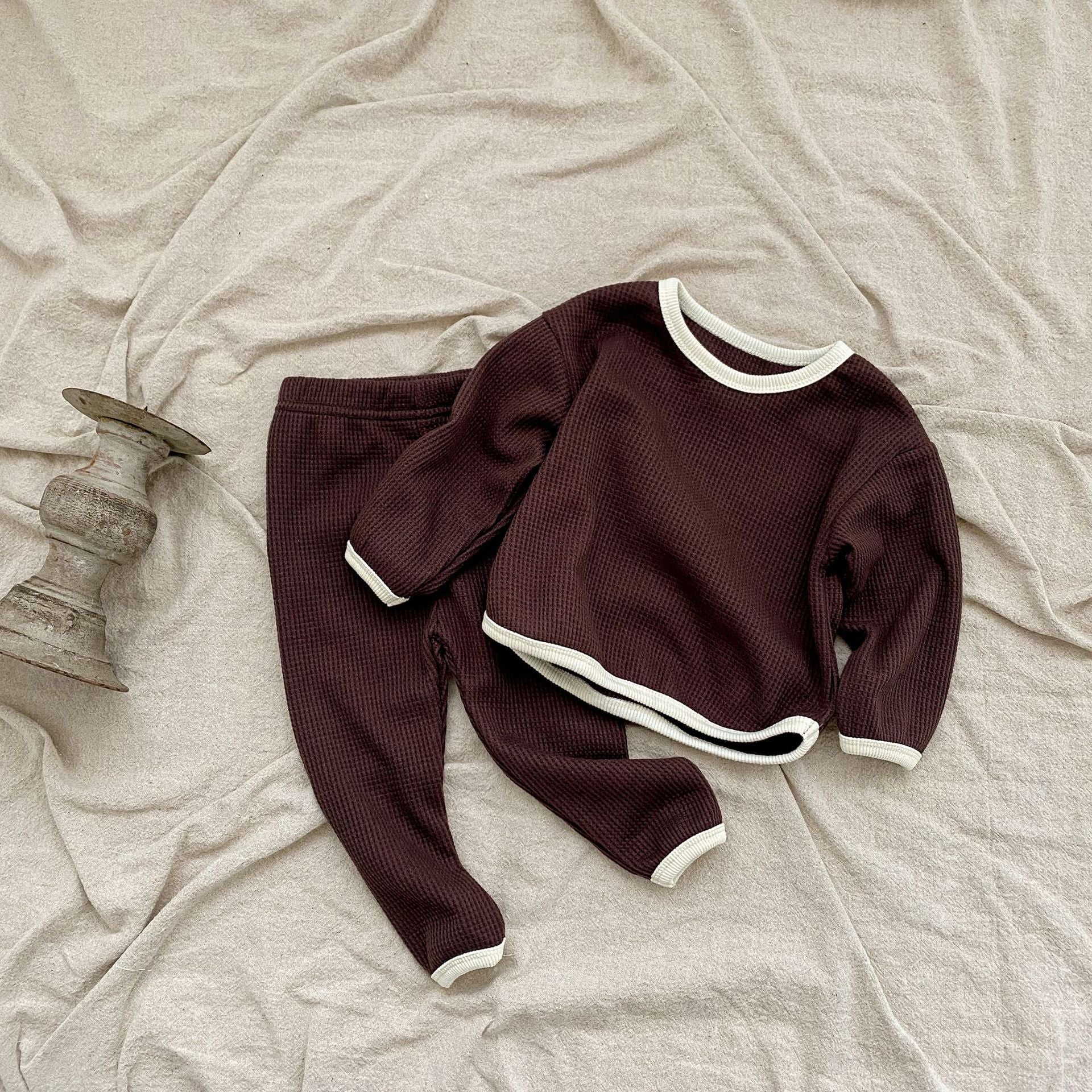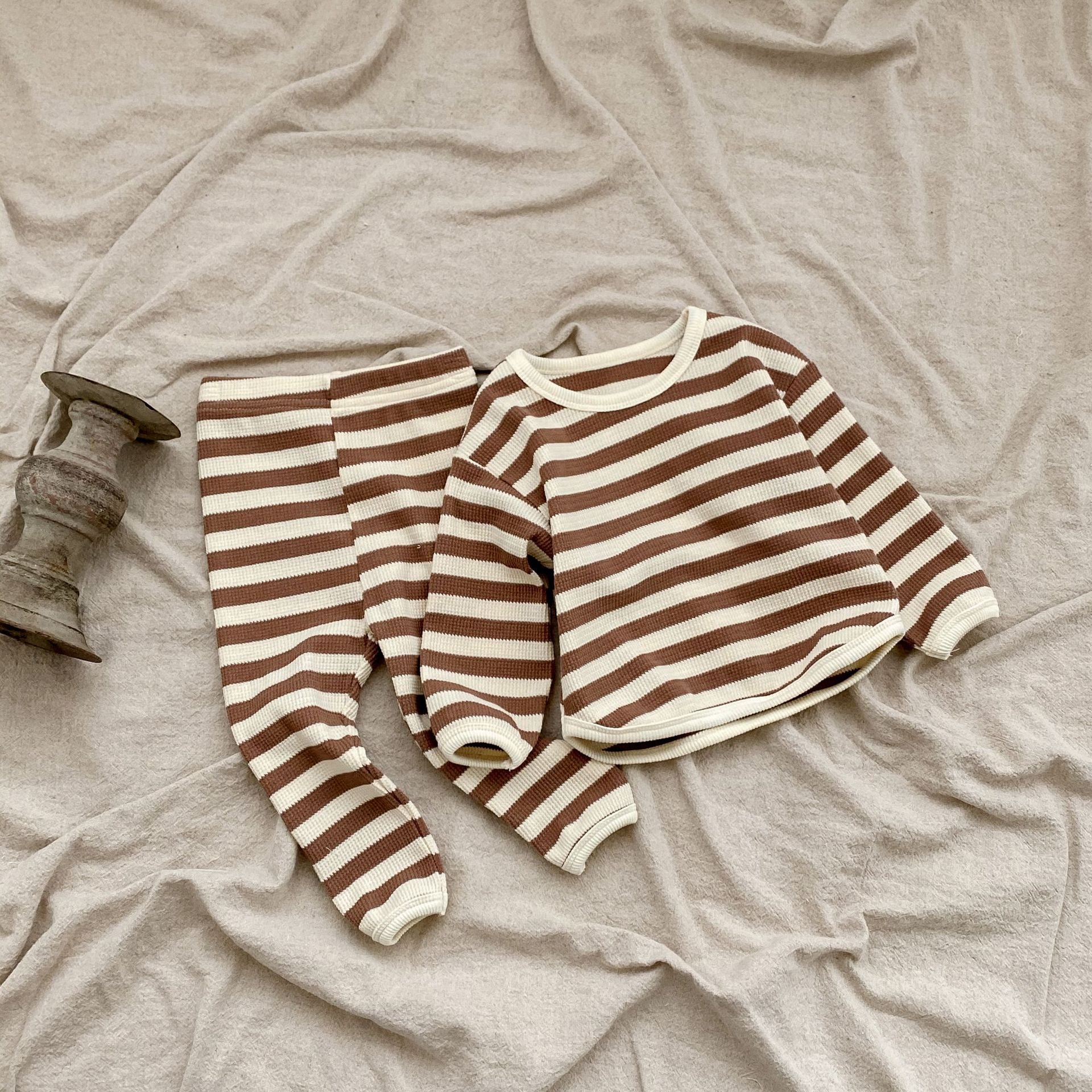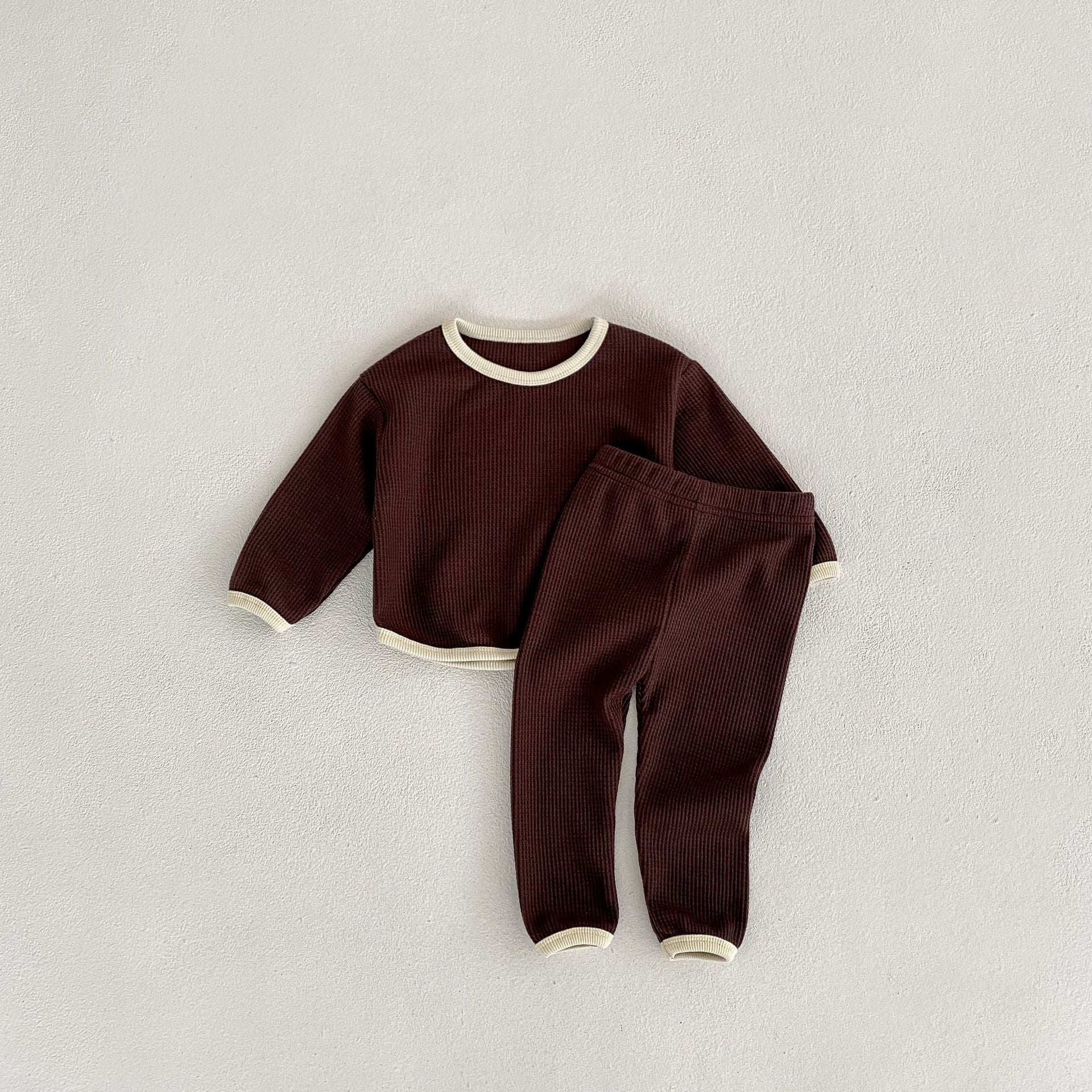 【BABY】韓国風ワッフル無地/ボーダーセットアップSK022906