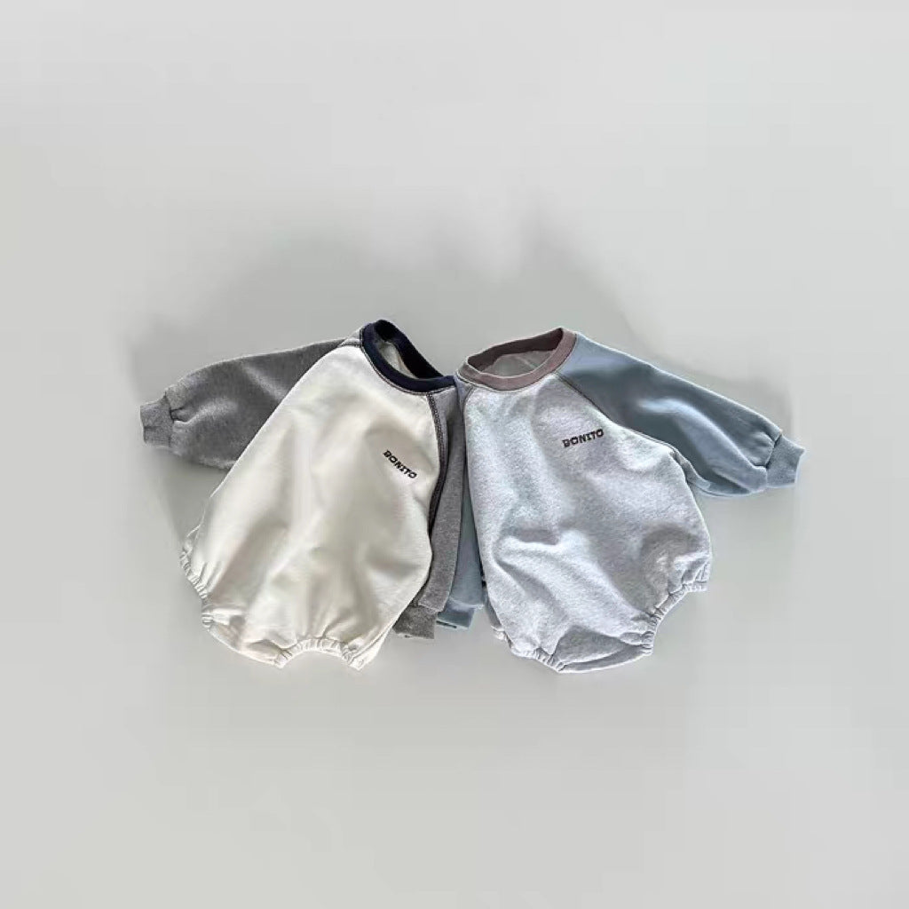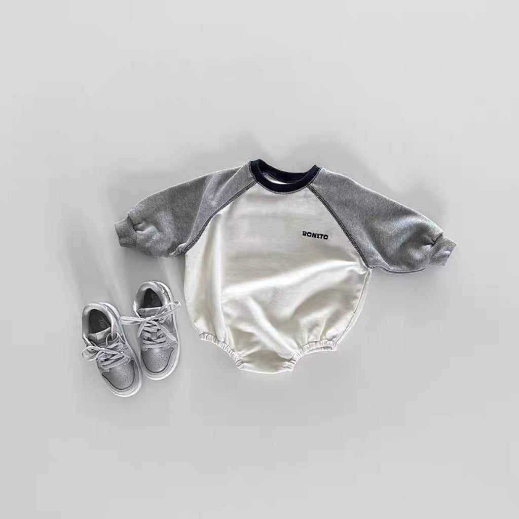 【BABY】韓国風切り替え袖ロンパースSK101905