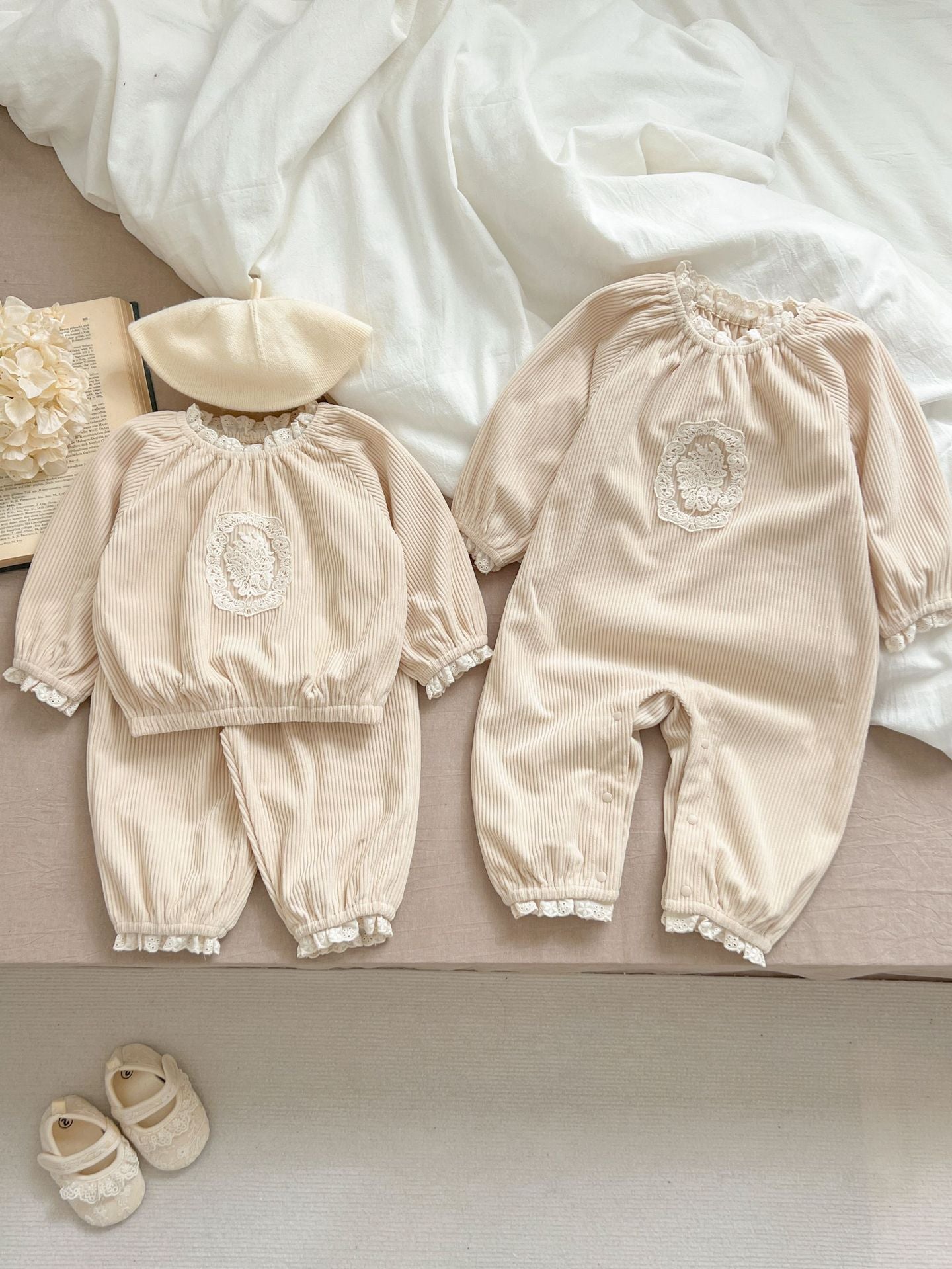 【BABY】韓国風 シンプル系プリンセスロンパース/セットアップSK060115