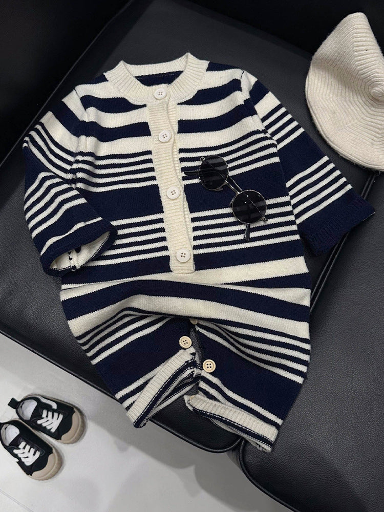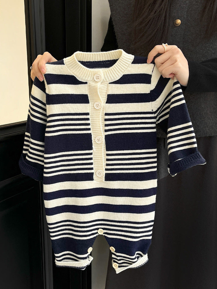 【BABY】韓国風 ボーダーロンパースSK022005