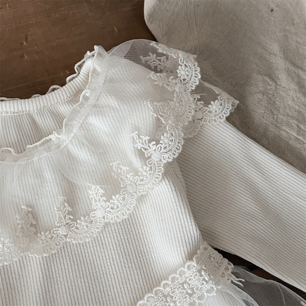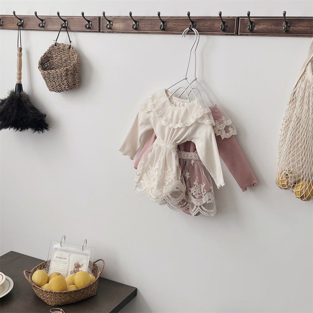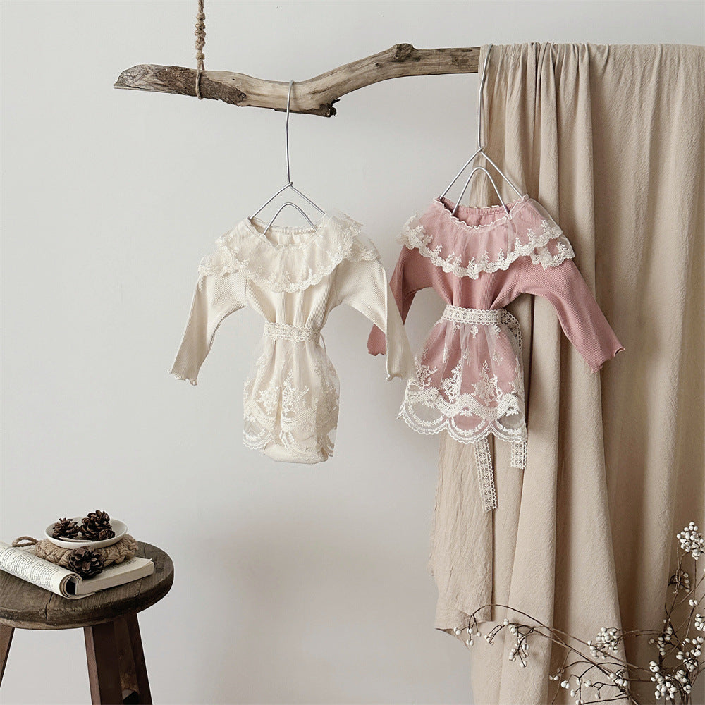 【BABY】韓国風 レース無地ロンパース レースエプロンSK031608
