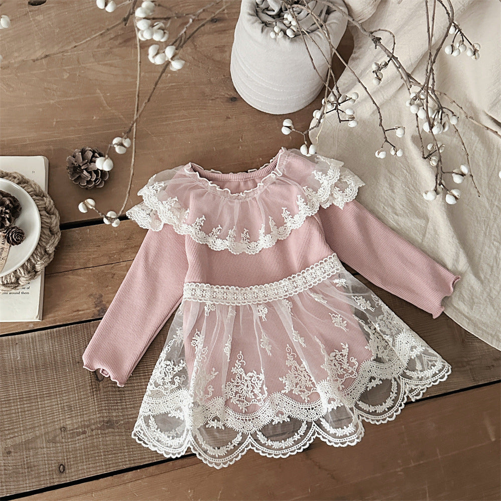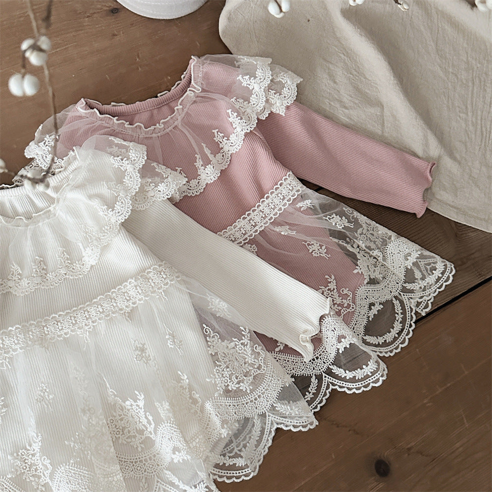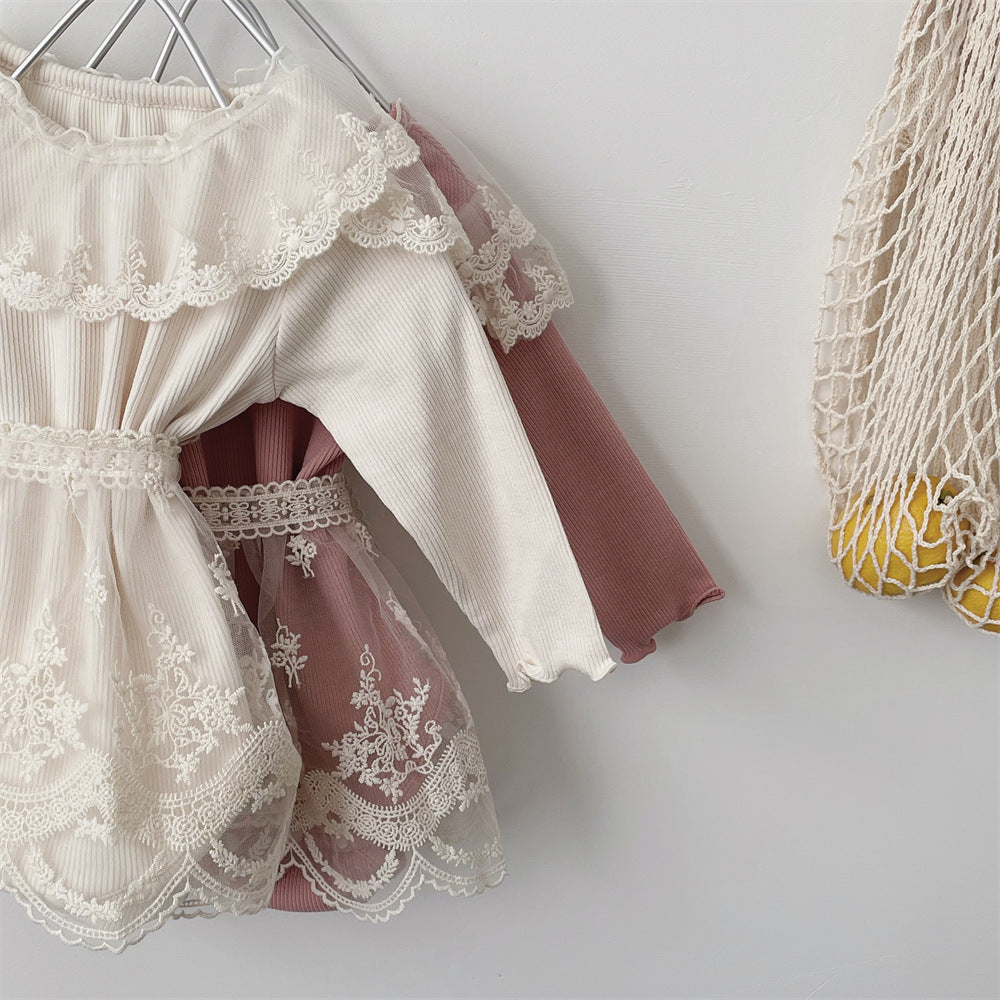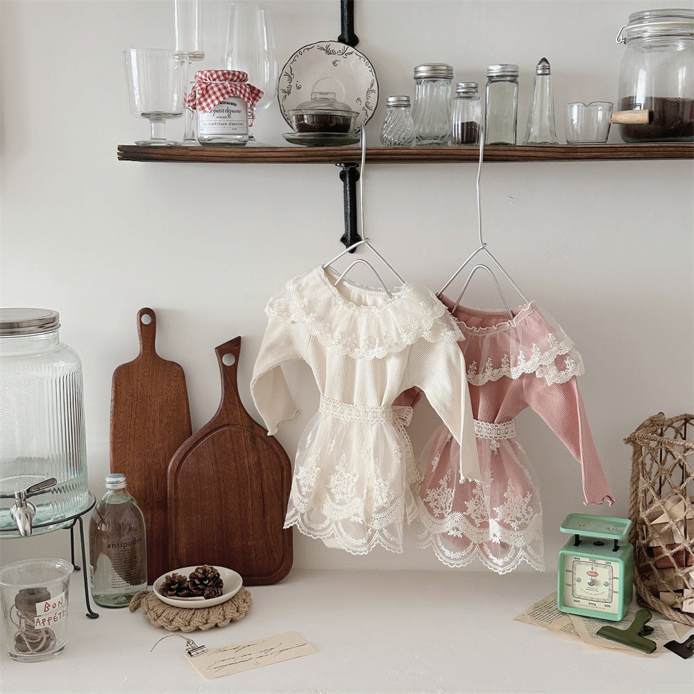 【BABY】韓国風 レース無地ロンパース レースエプロンSK031608