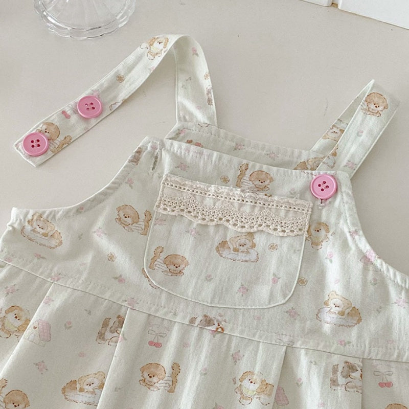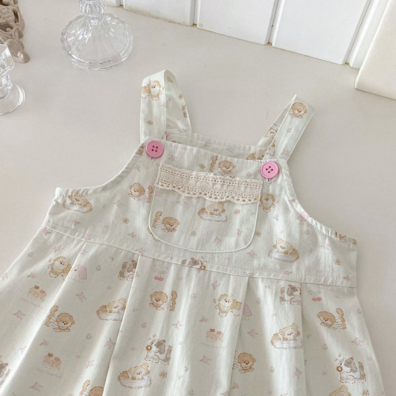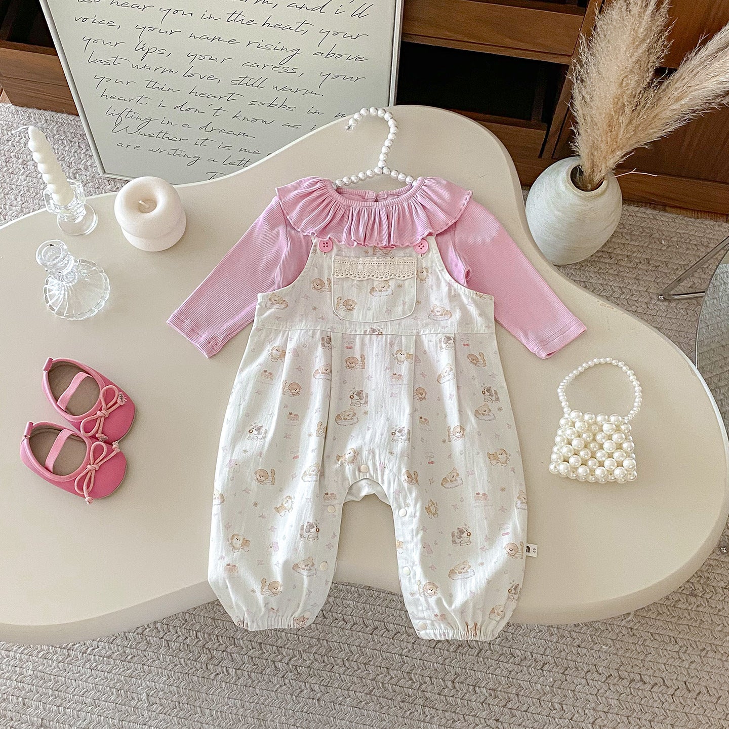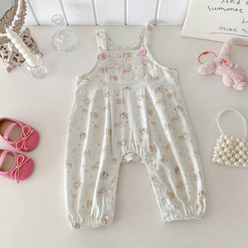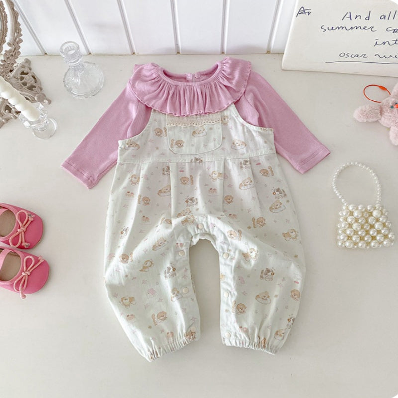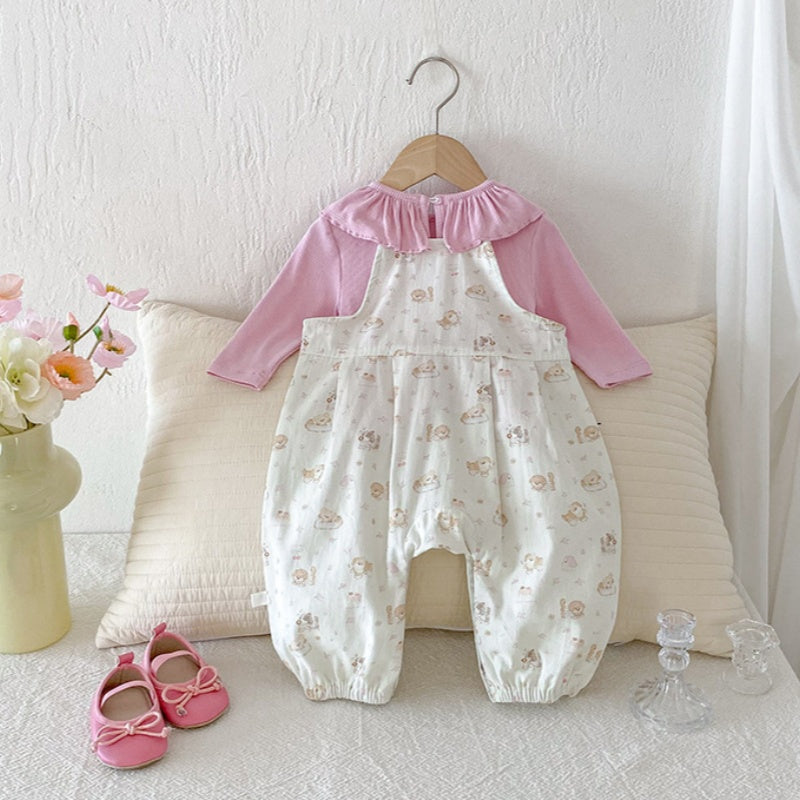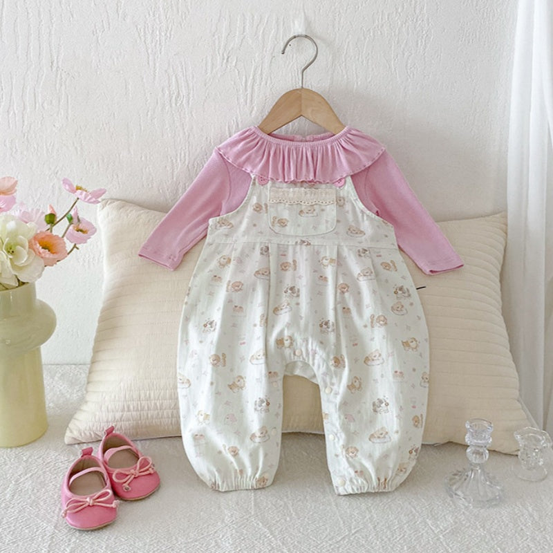 【BABY】いぬ柄サロペットパンツ&フリル襟TシャツSK100425