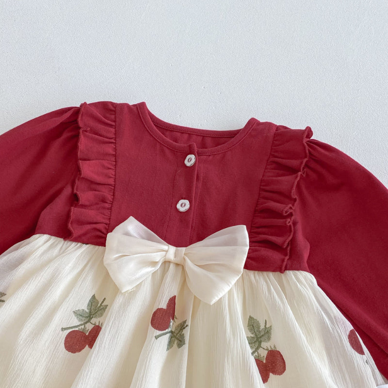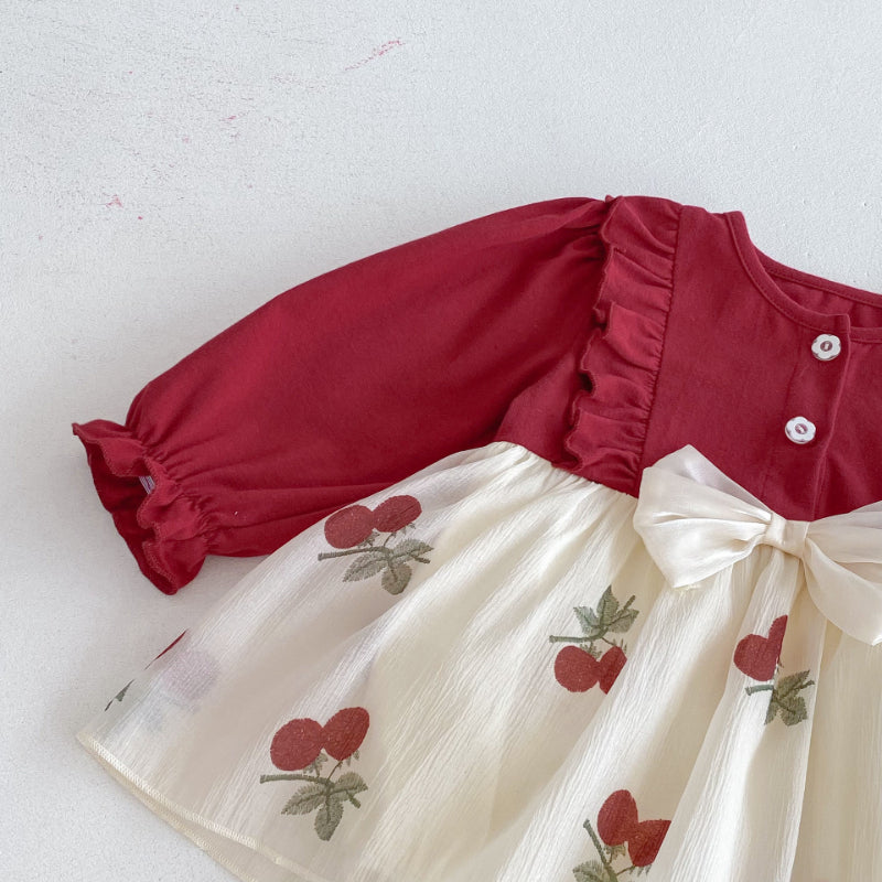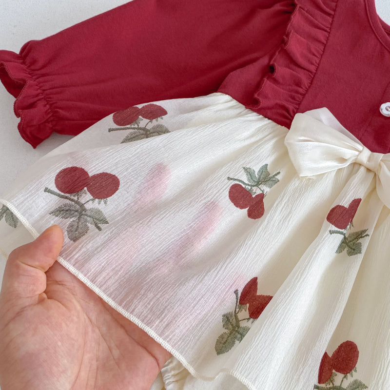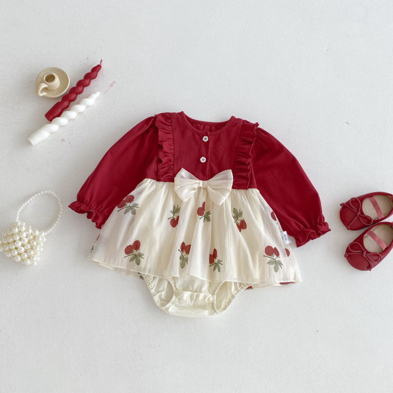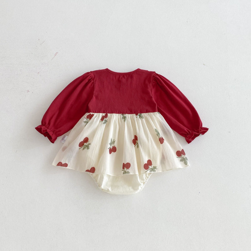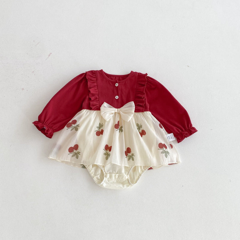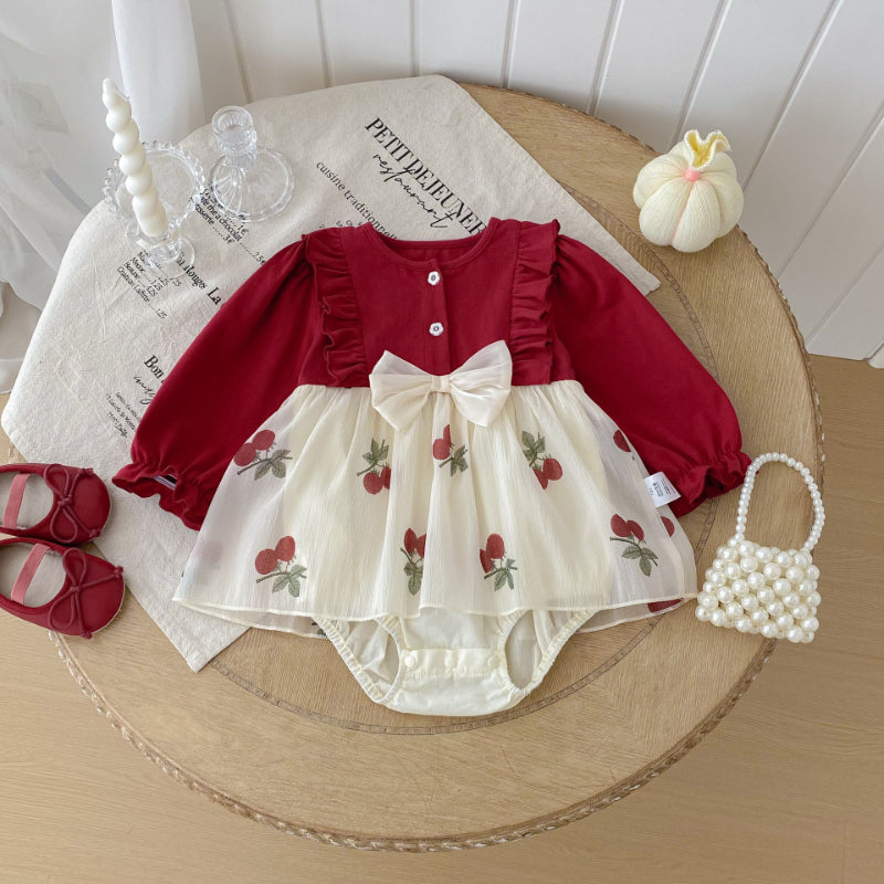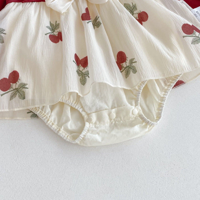 【BABY】さくらんぼ蝶結びロンパーススカートSK092803