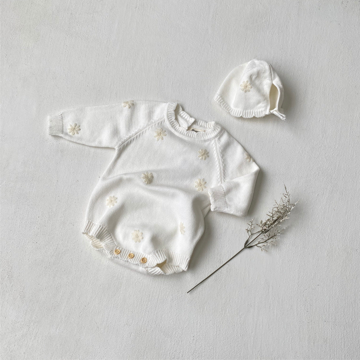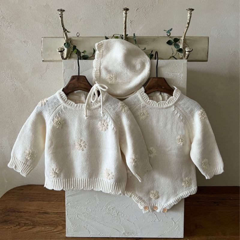 【BABY】デイジーかぎ針編みニットトップス、ロンパース、帽子SK010330
