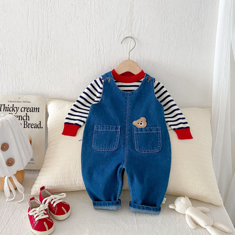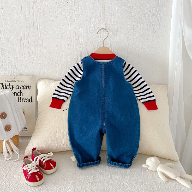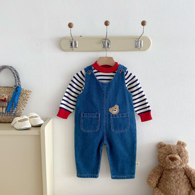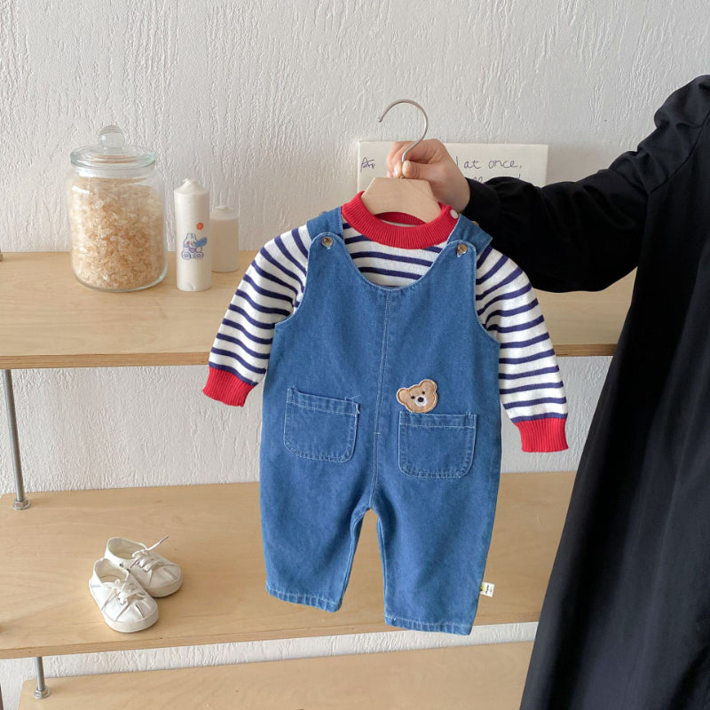 【BABY】デニムサロペット、ボーダートップスSK092533