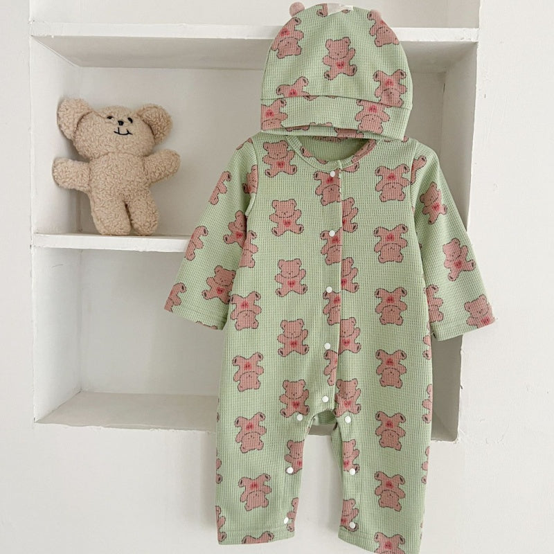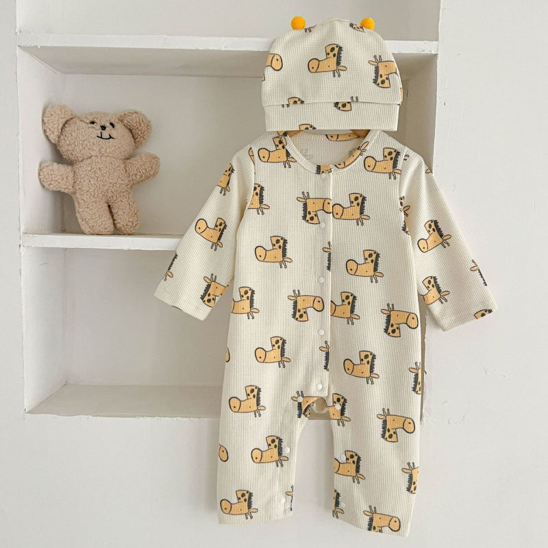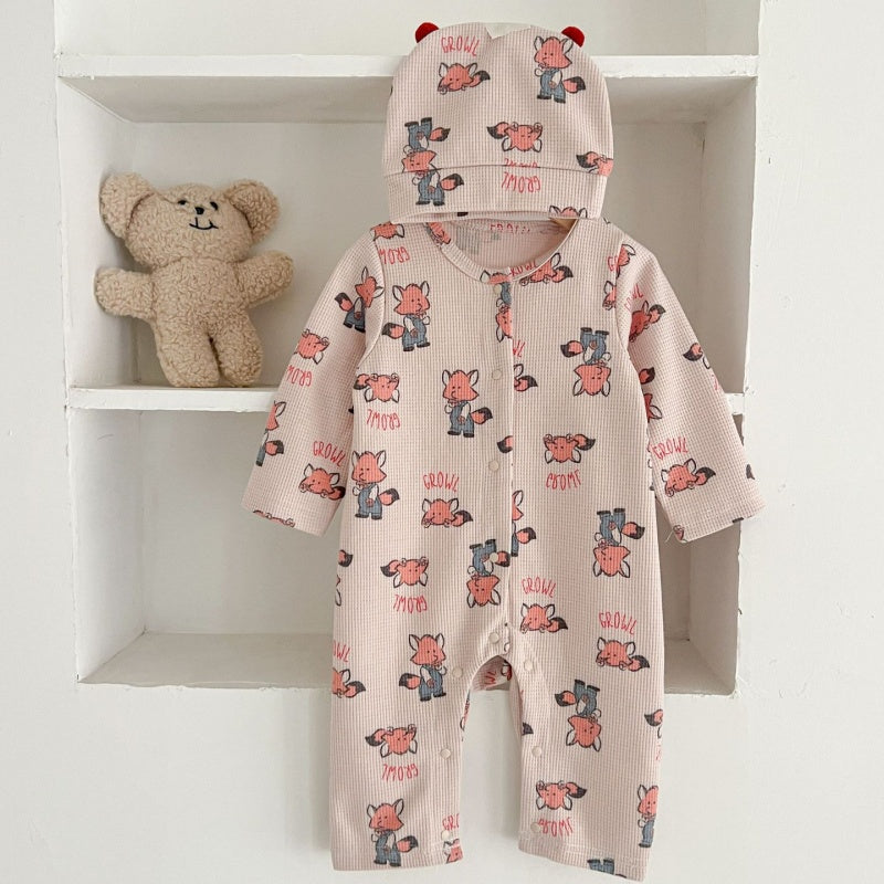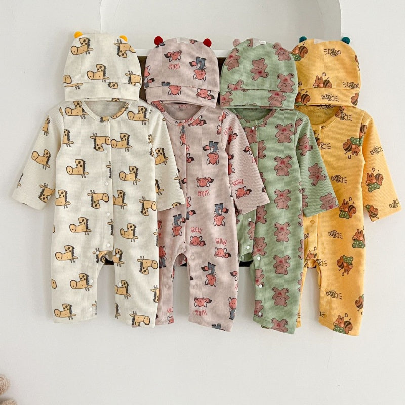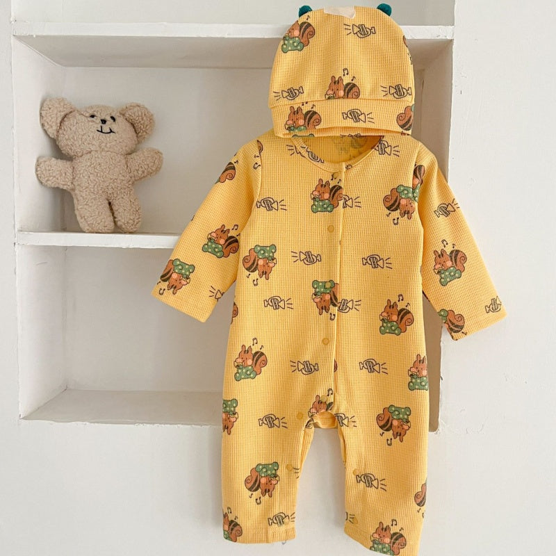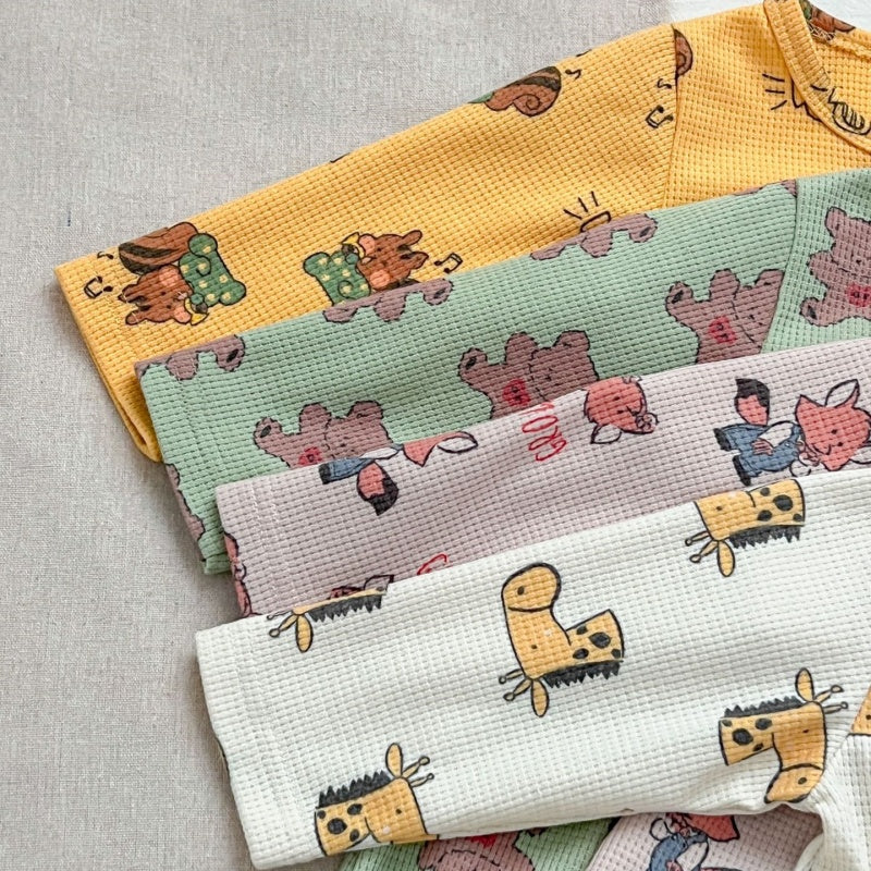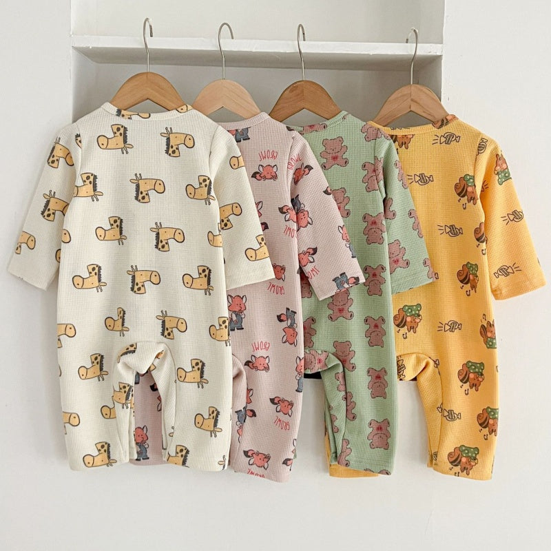 【BABY】ワッフル地可愛いプリントカバーオールSK100327
