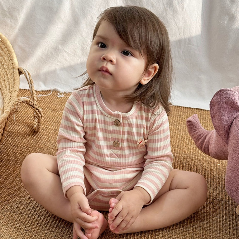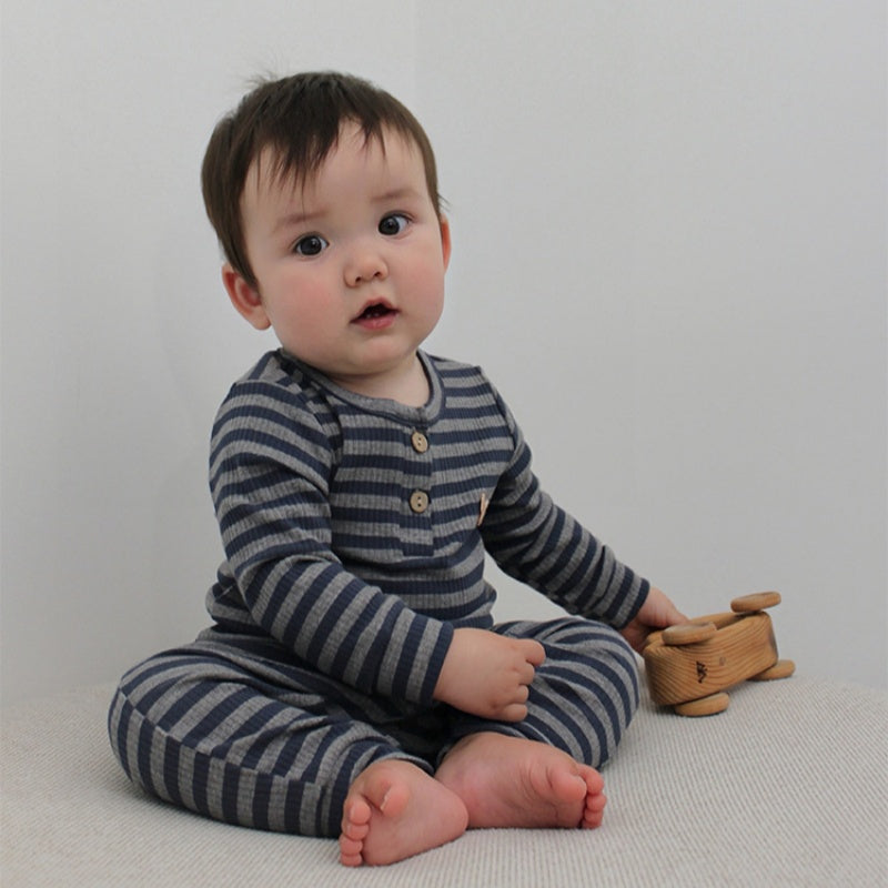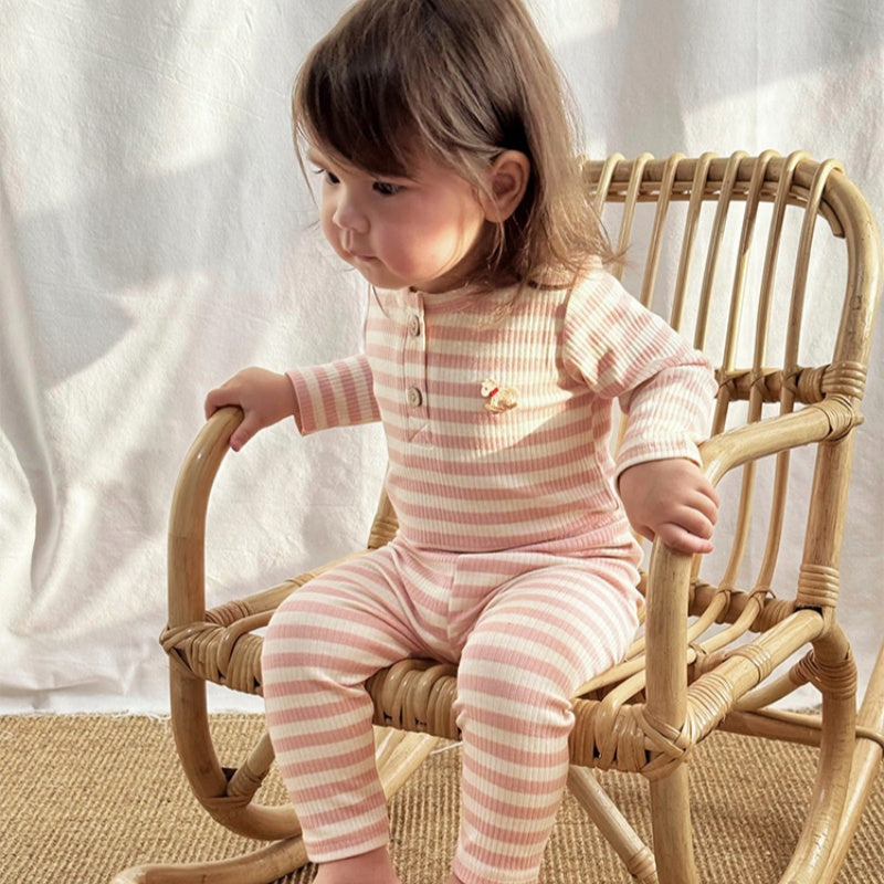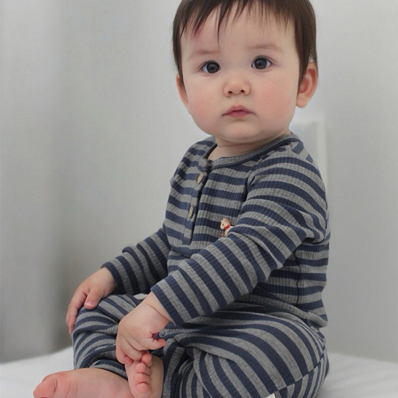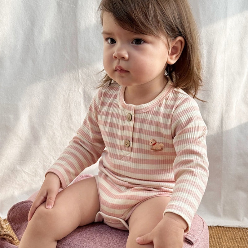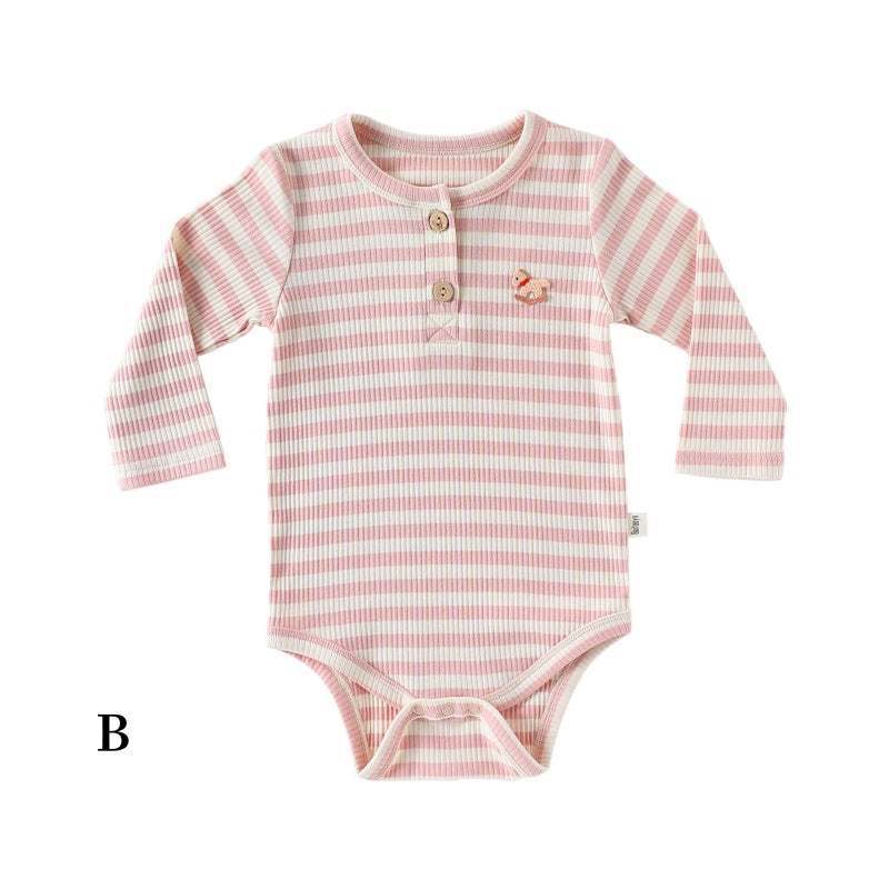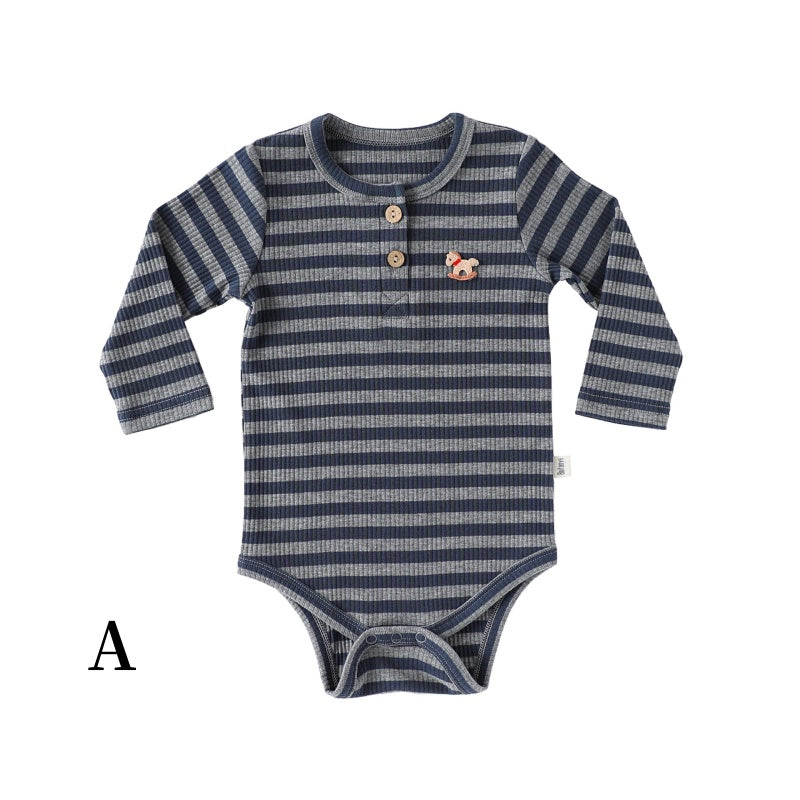 【BABY】北欧風ポニー刺繍ボーダーロンパース、レギンスSK101320