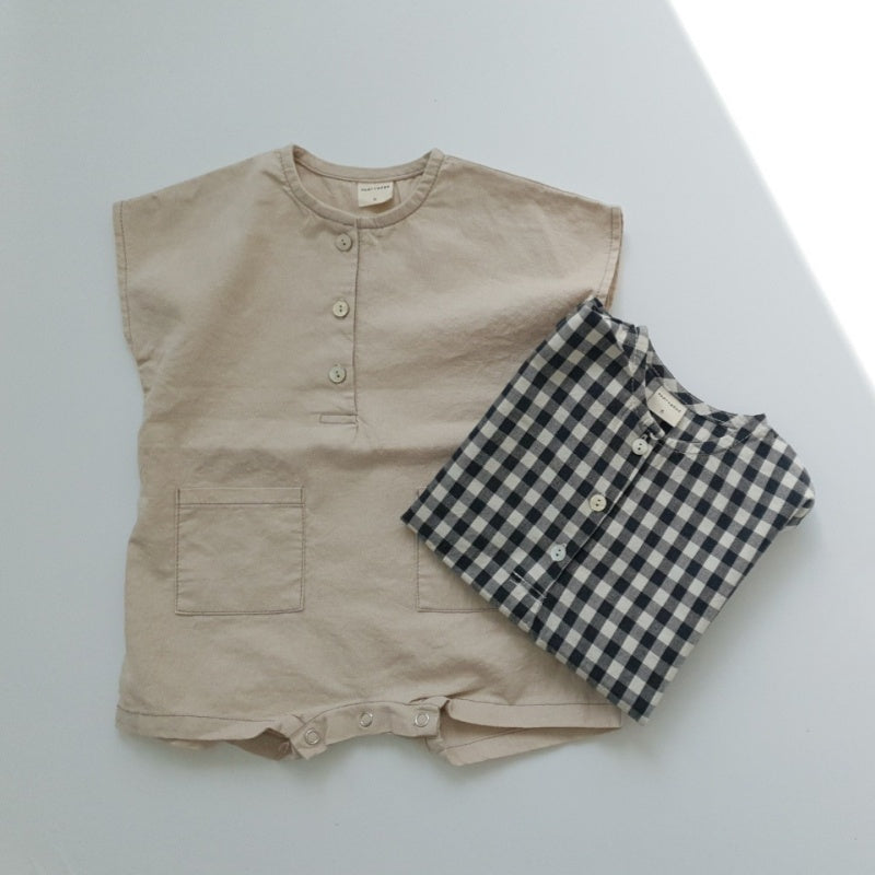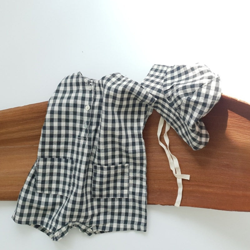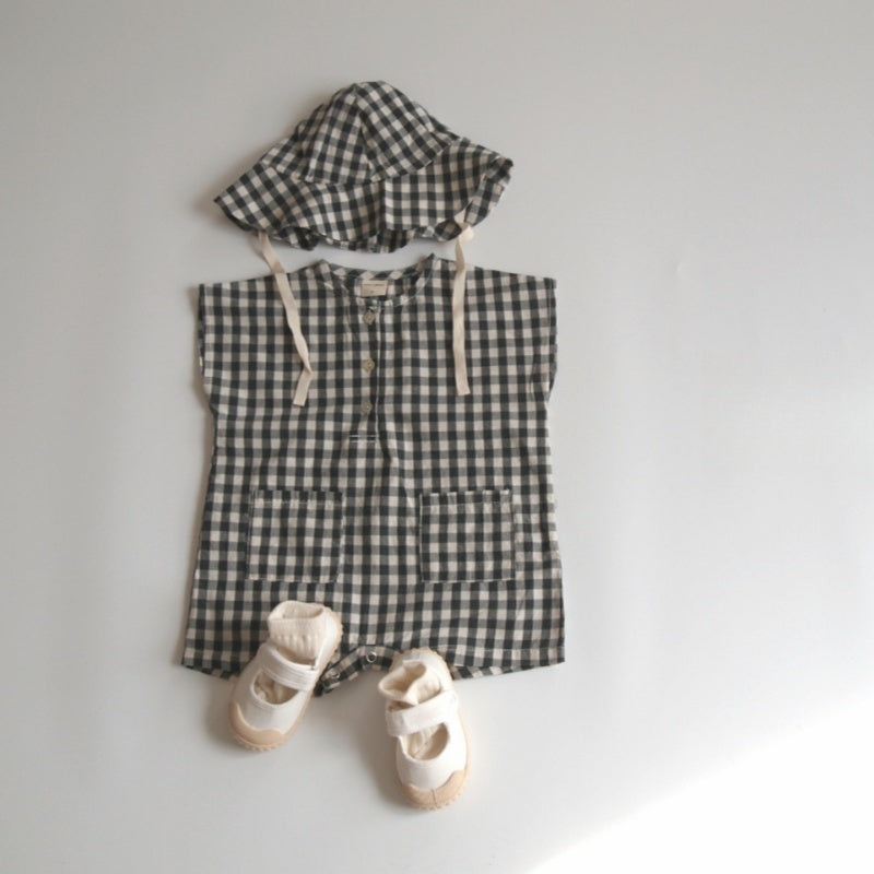 【BABY】夏新作 チェック、無地ロンパース&帽子SK071304