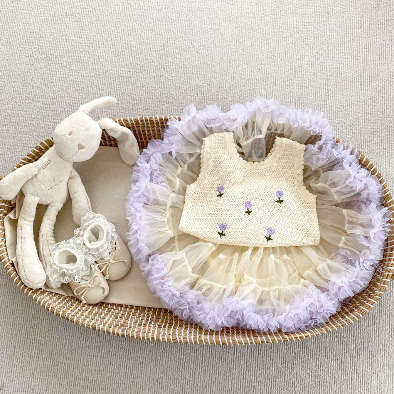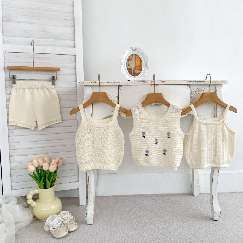 【BABY】夏新作 刺繍、無地ニットベスト、スカートSK071922