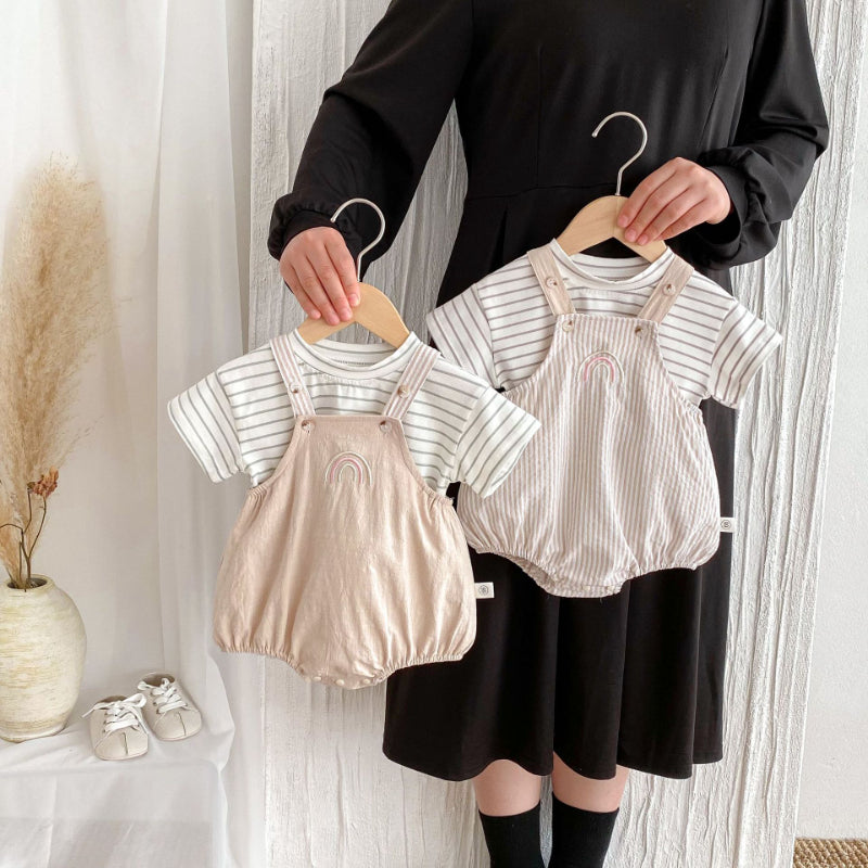 【BABY】夏新作 虹刺繍サロペット、薄手コットン半袖TシャツSK071016