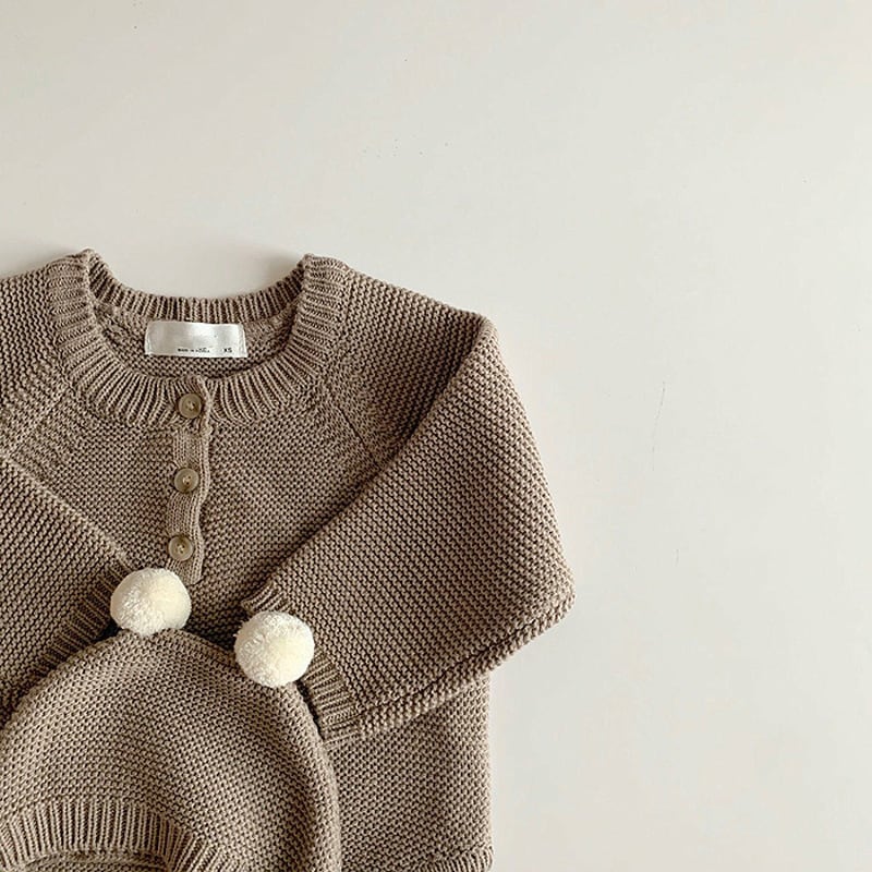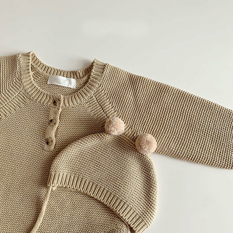 【BABY】ニット編み風ボタン付きロンパース&帽子 全3色SK11352