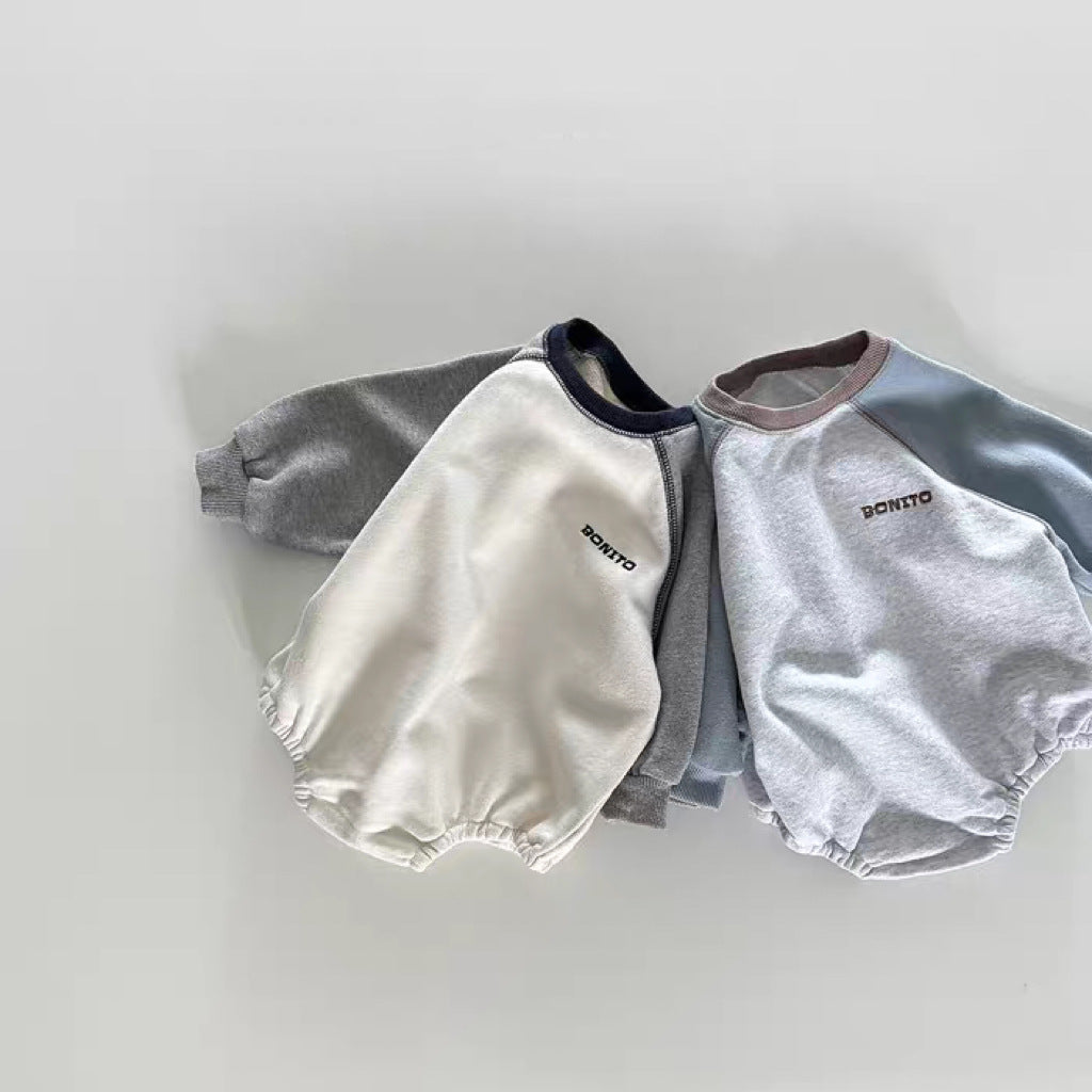 【BABY】韓国風切り替え袖ロンパースSK101905