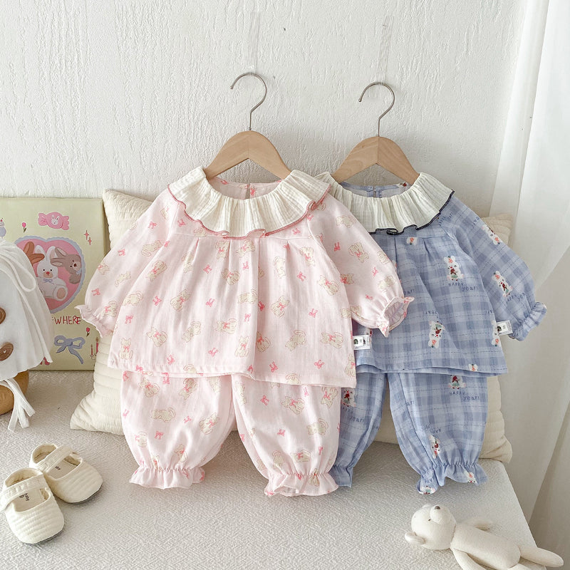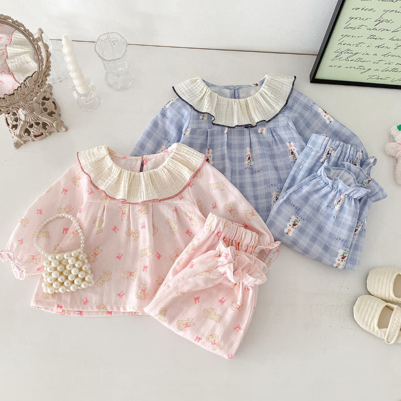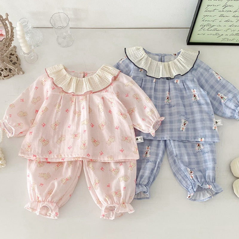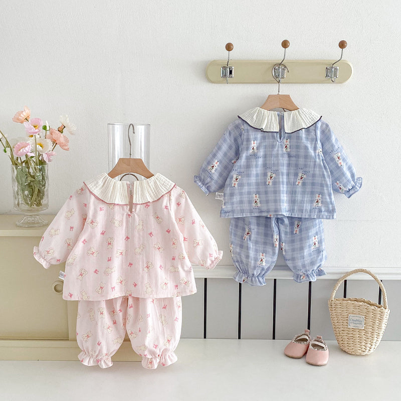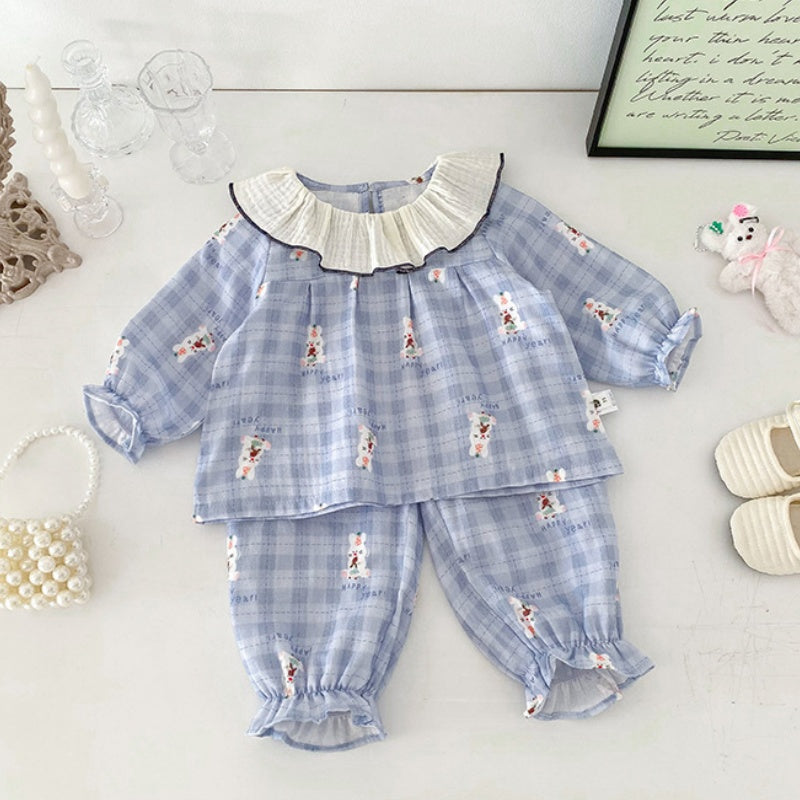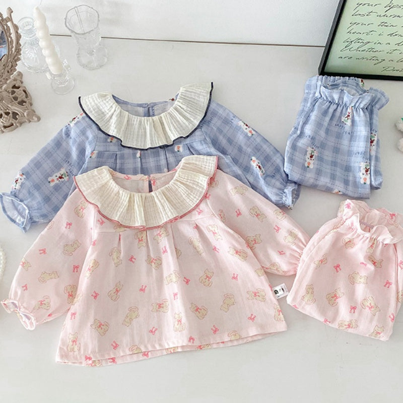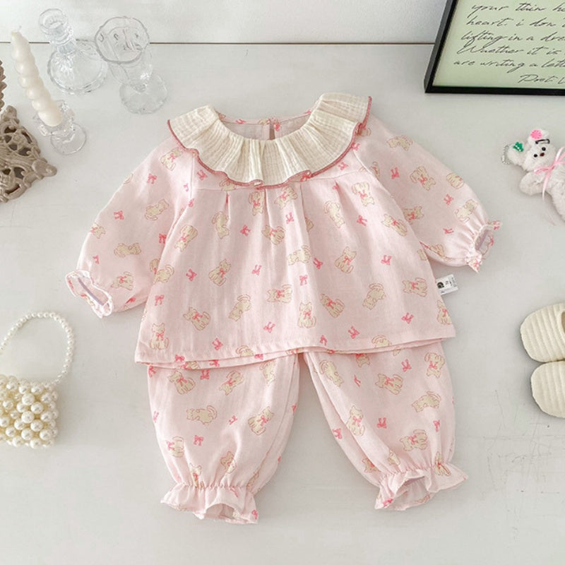 【BABY】フリル襟カートゥーンプリントセットアップSK100526