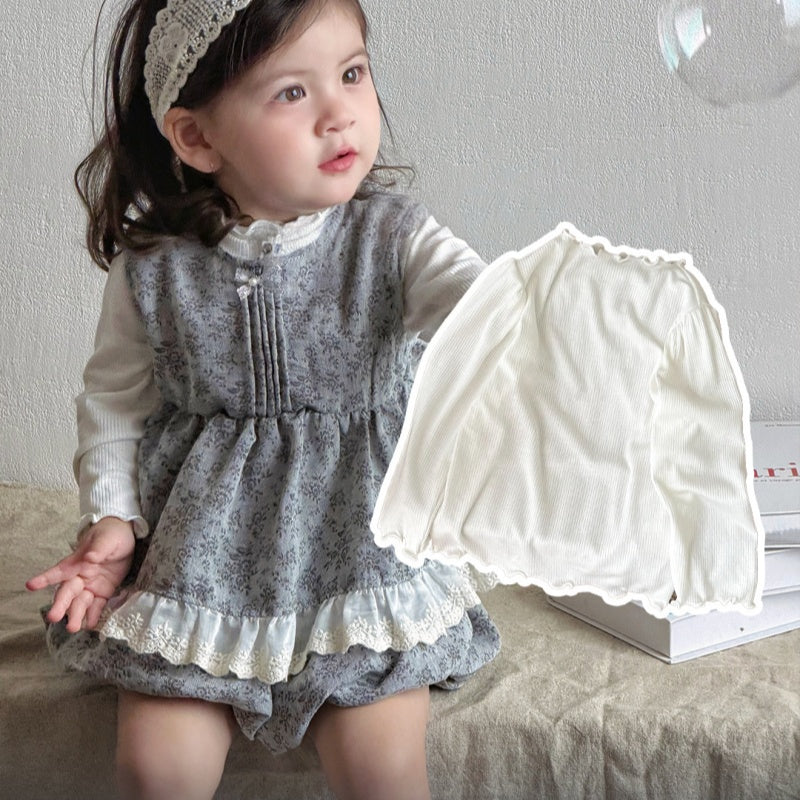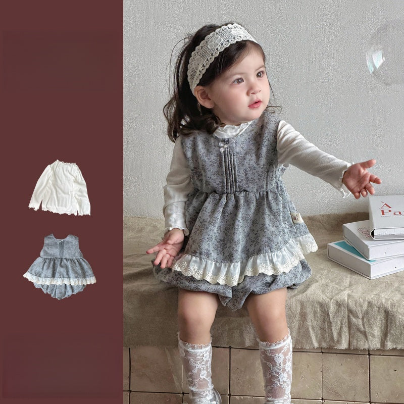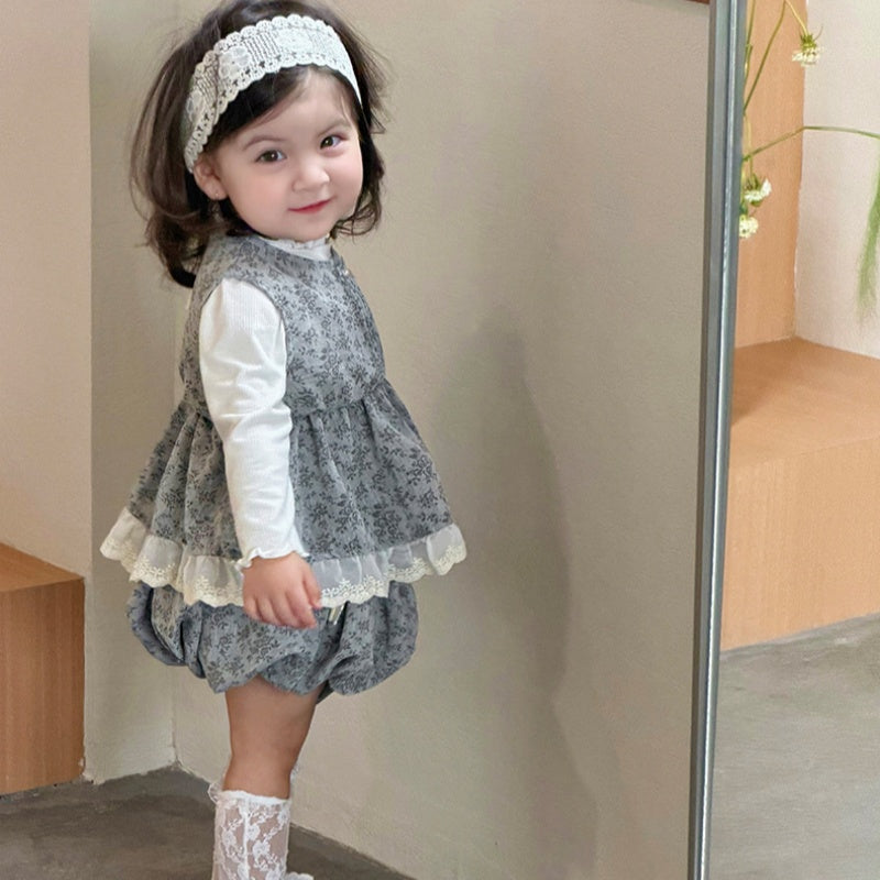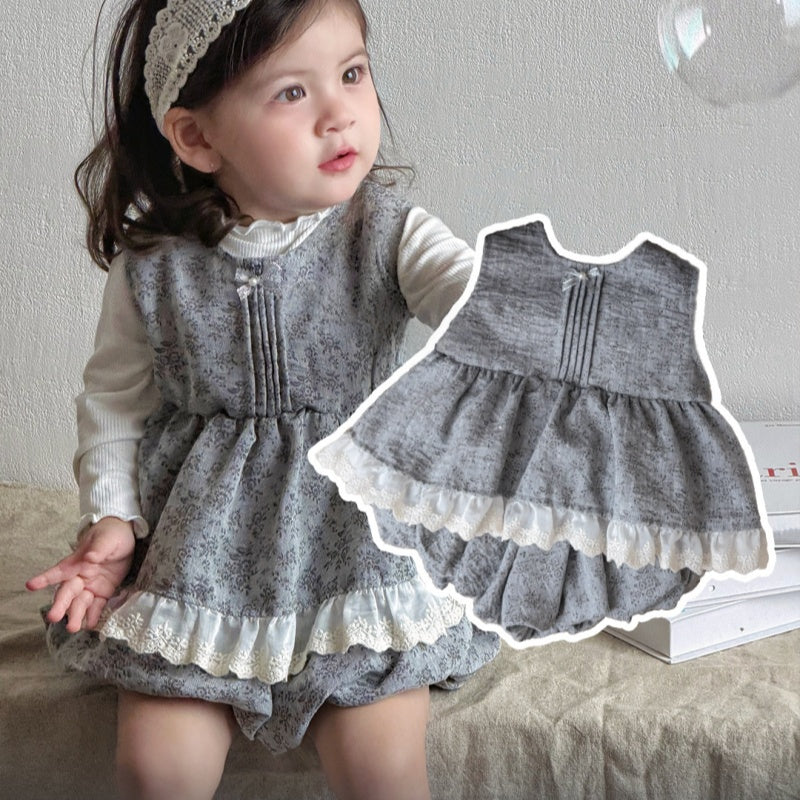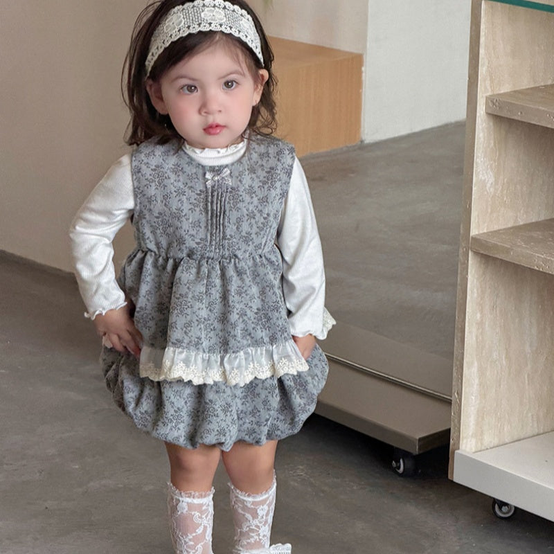 【BABY】小花柄レーストリムベスト&バルーンパンツSK103705