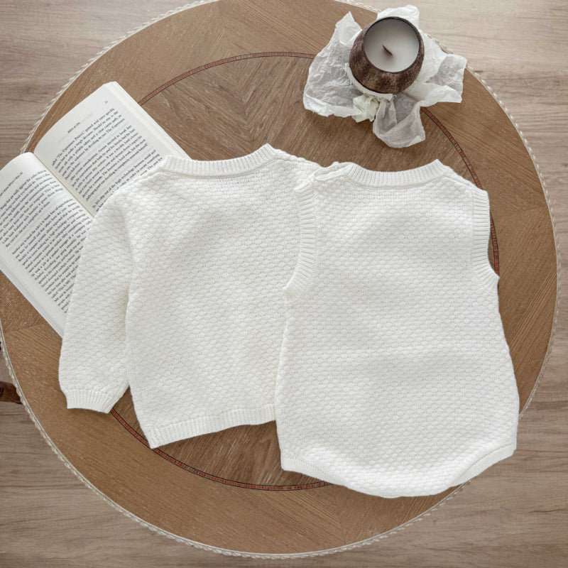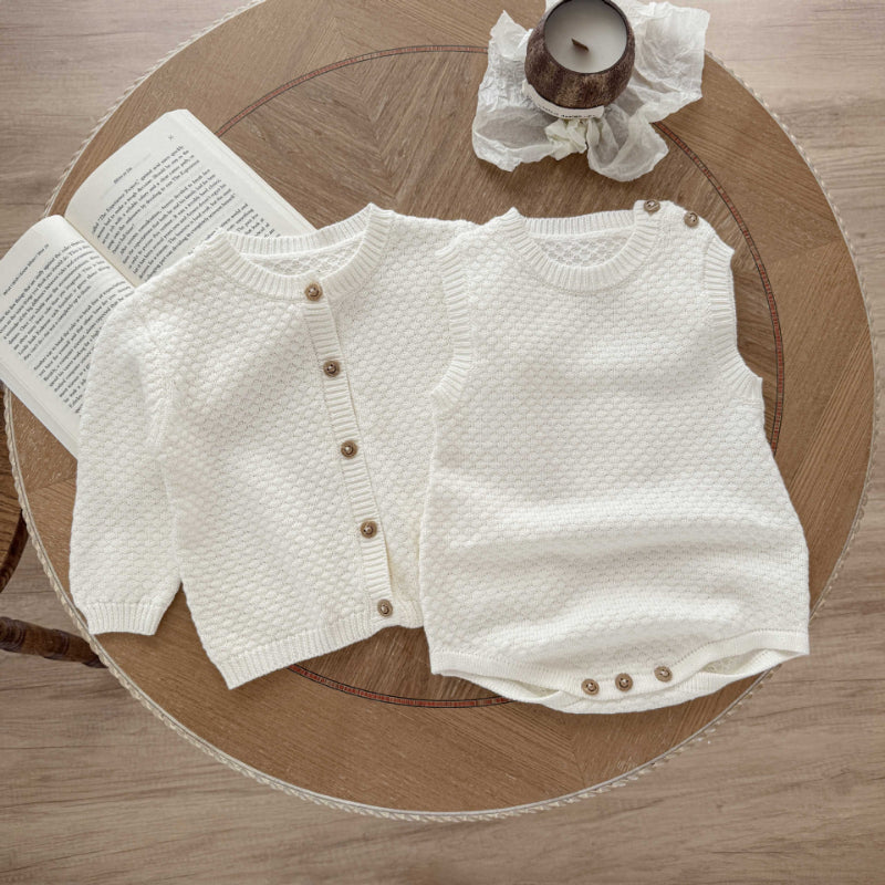 【BABY】無地ニットカーディガン、ロンパースSK100516