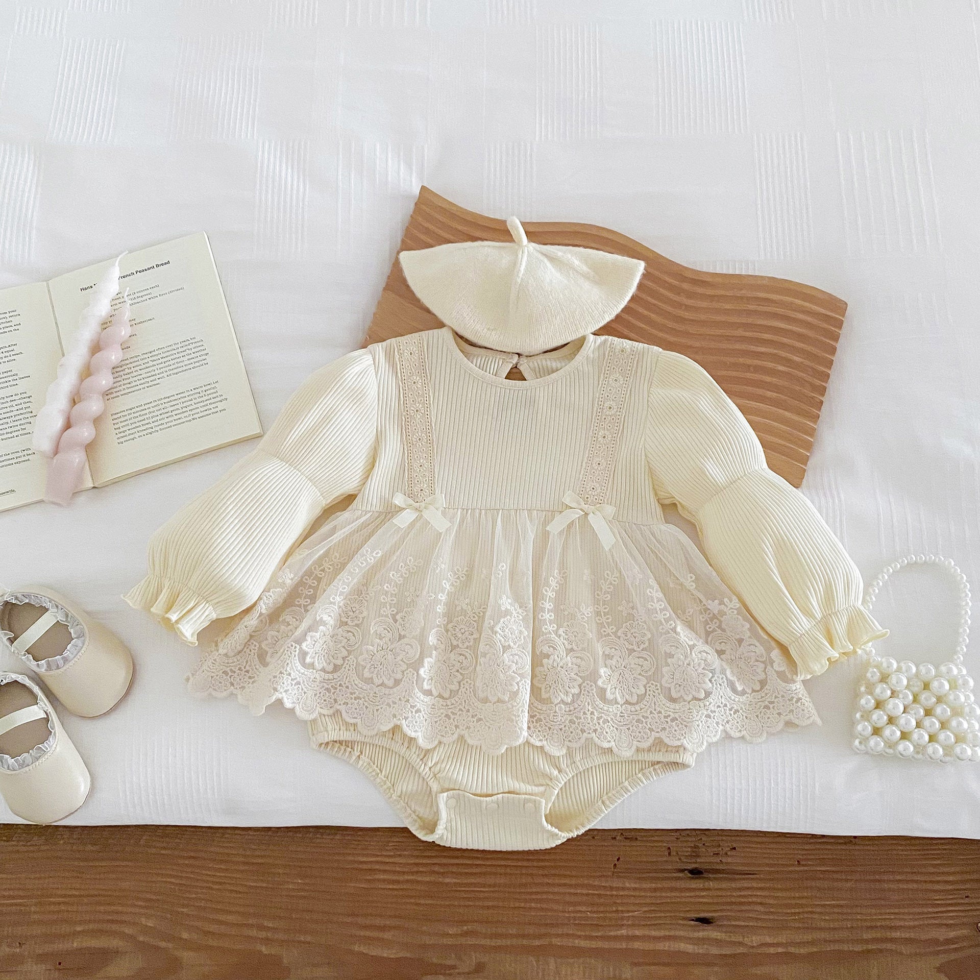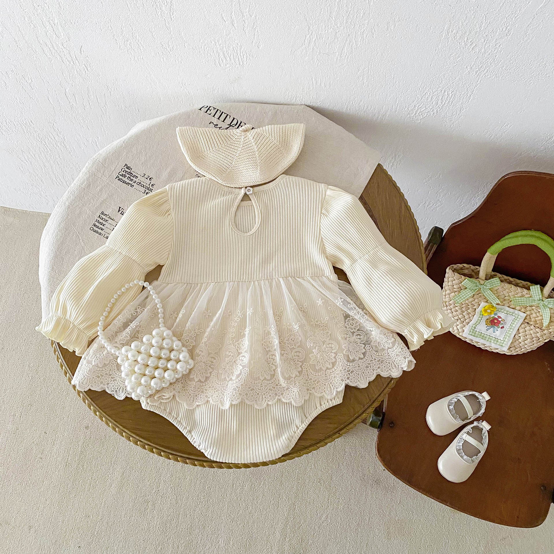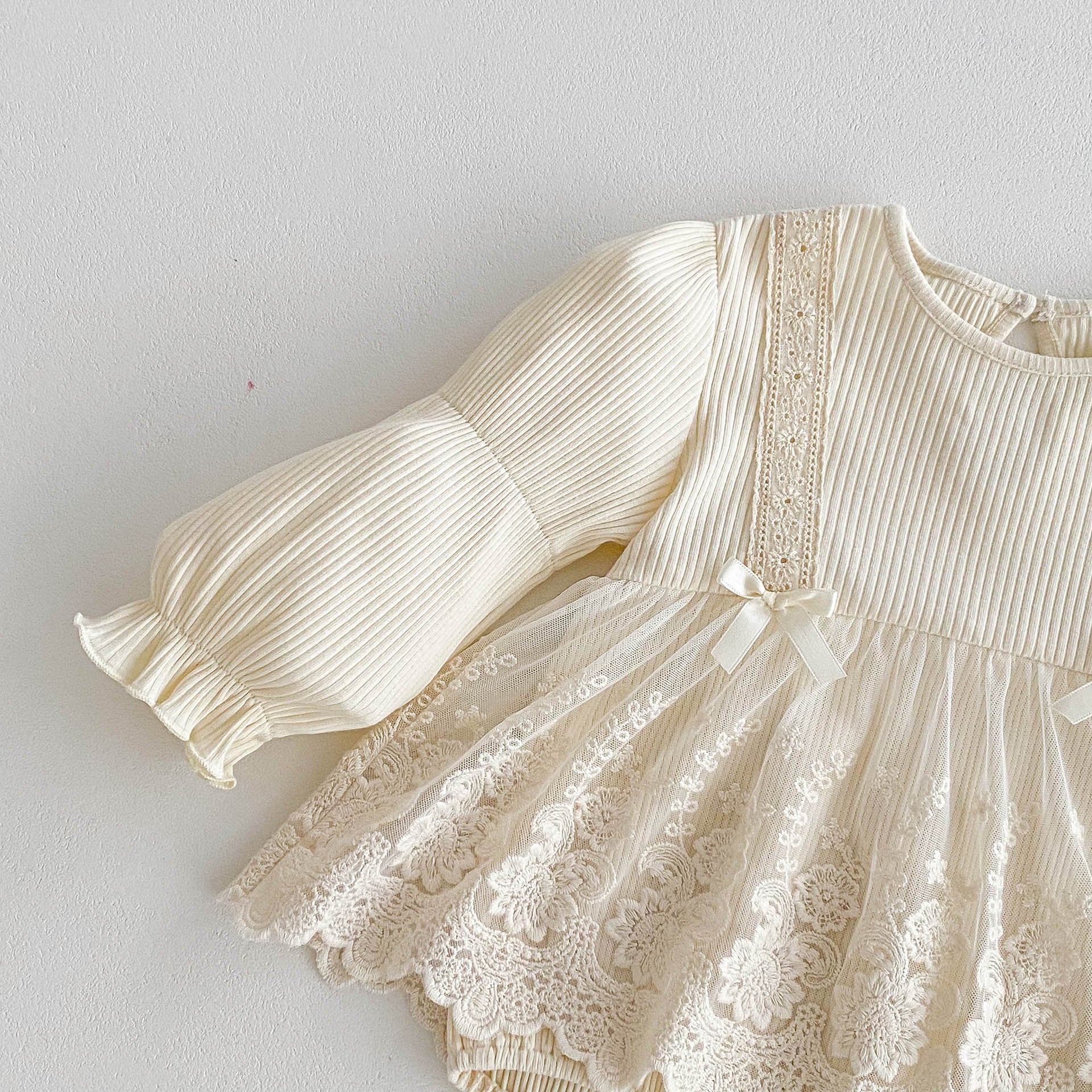 【BABY】 INS風無地レース付けワンピースロンパースSK060108