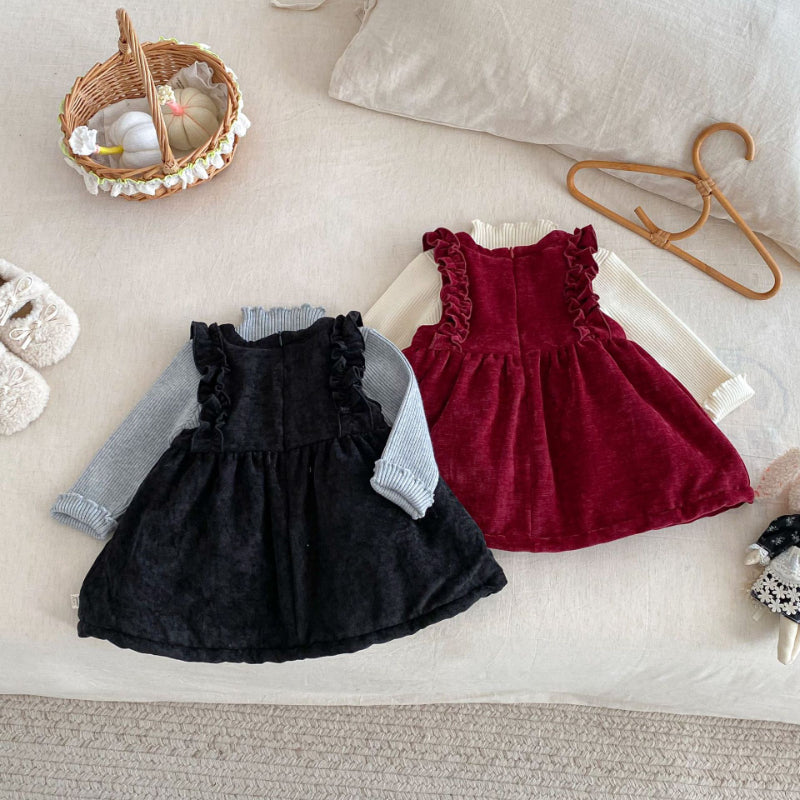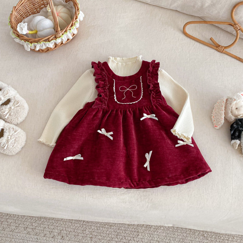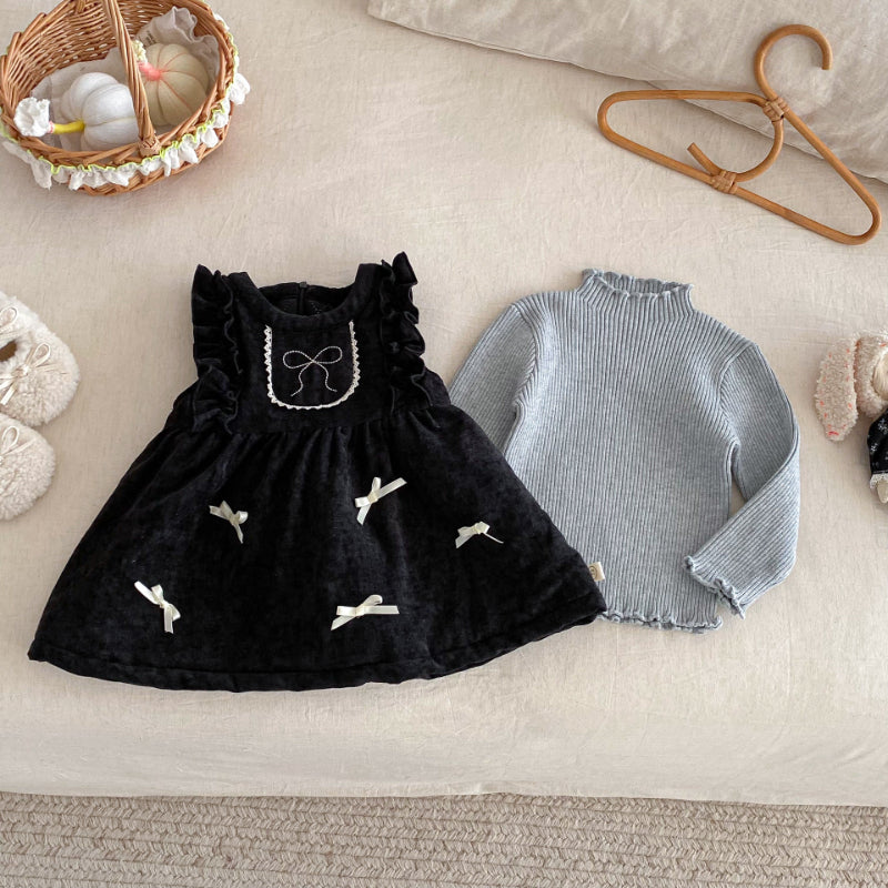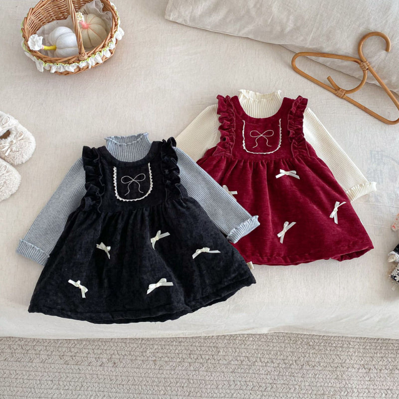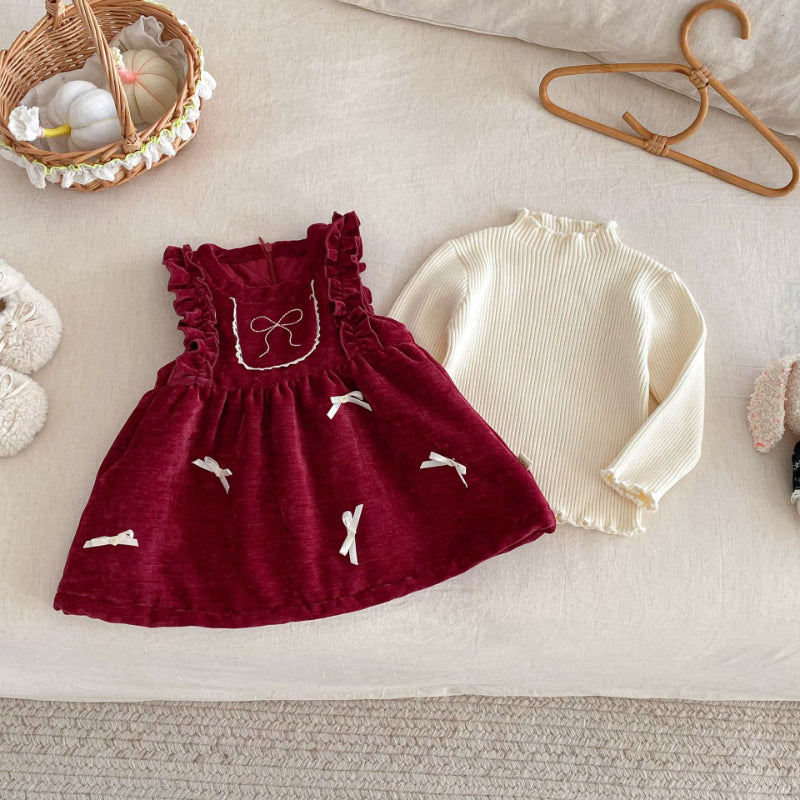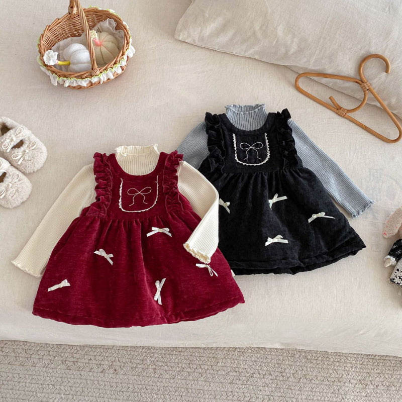 【BABY&KID】冬新作ベロア裏起毛リボンワンピースSK102735