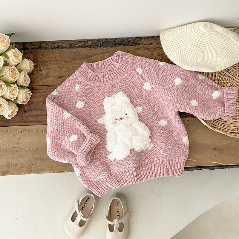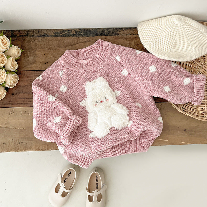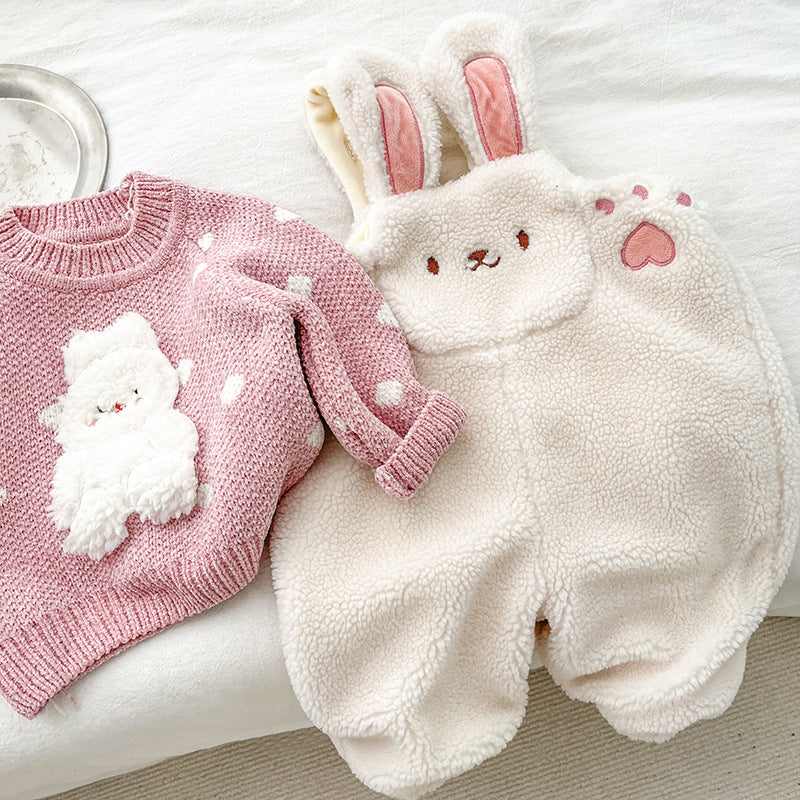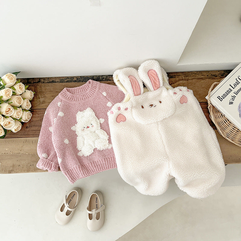 【BABY&KID】もこもこピンクウサギセーター、サロペットSK012918