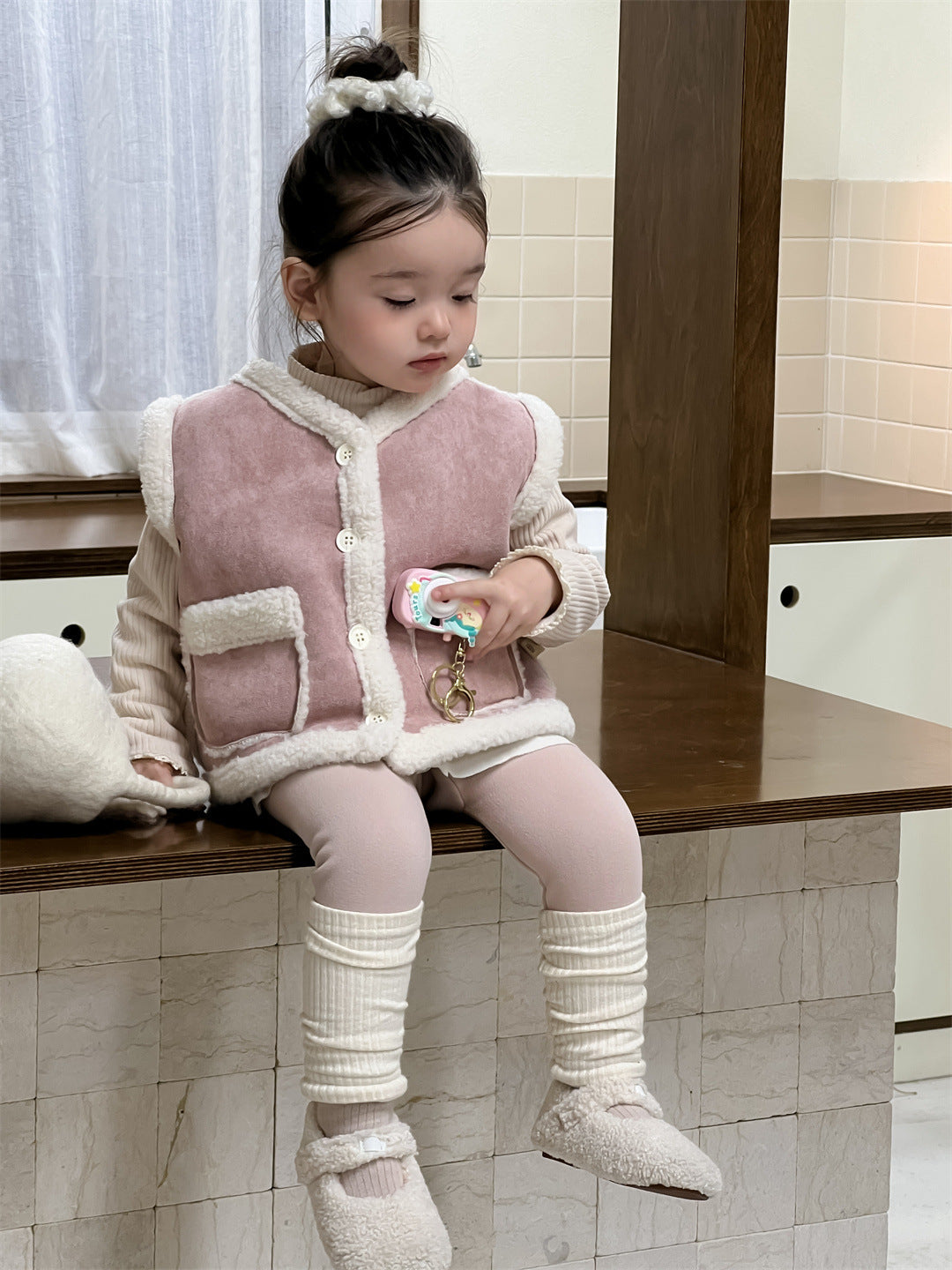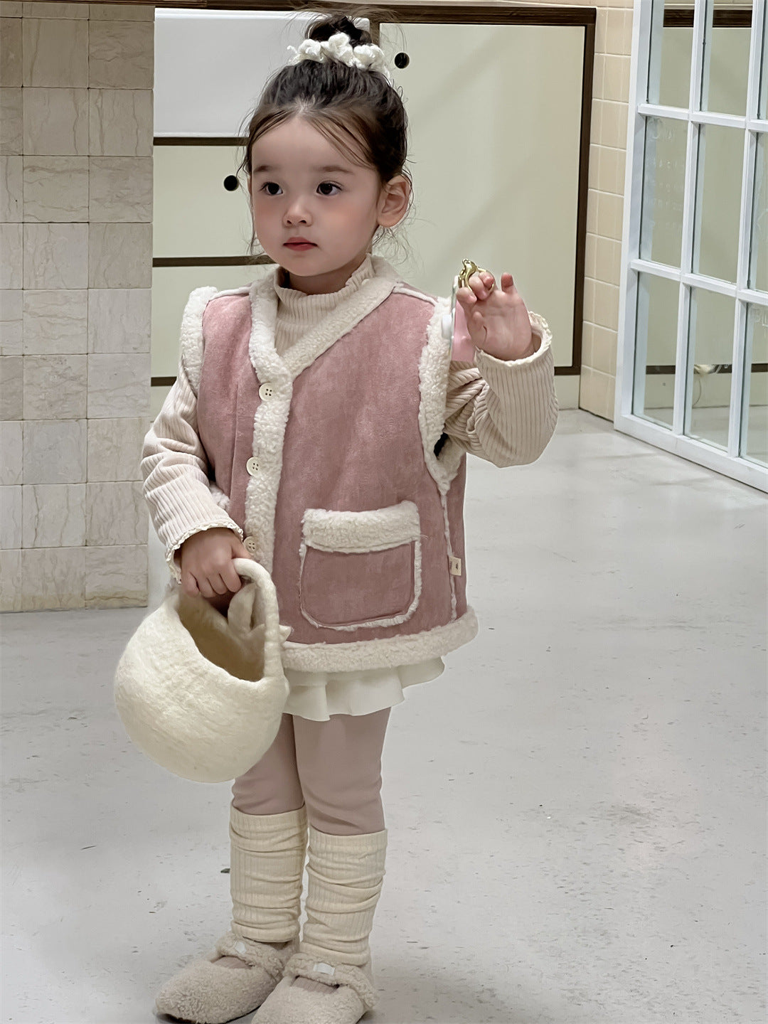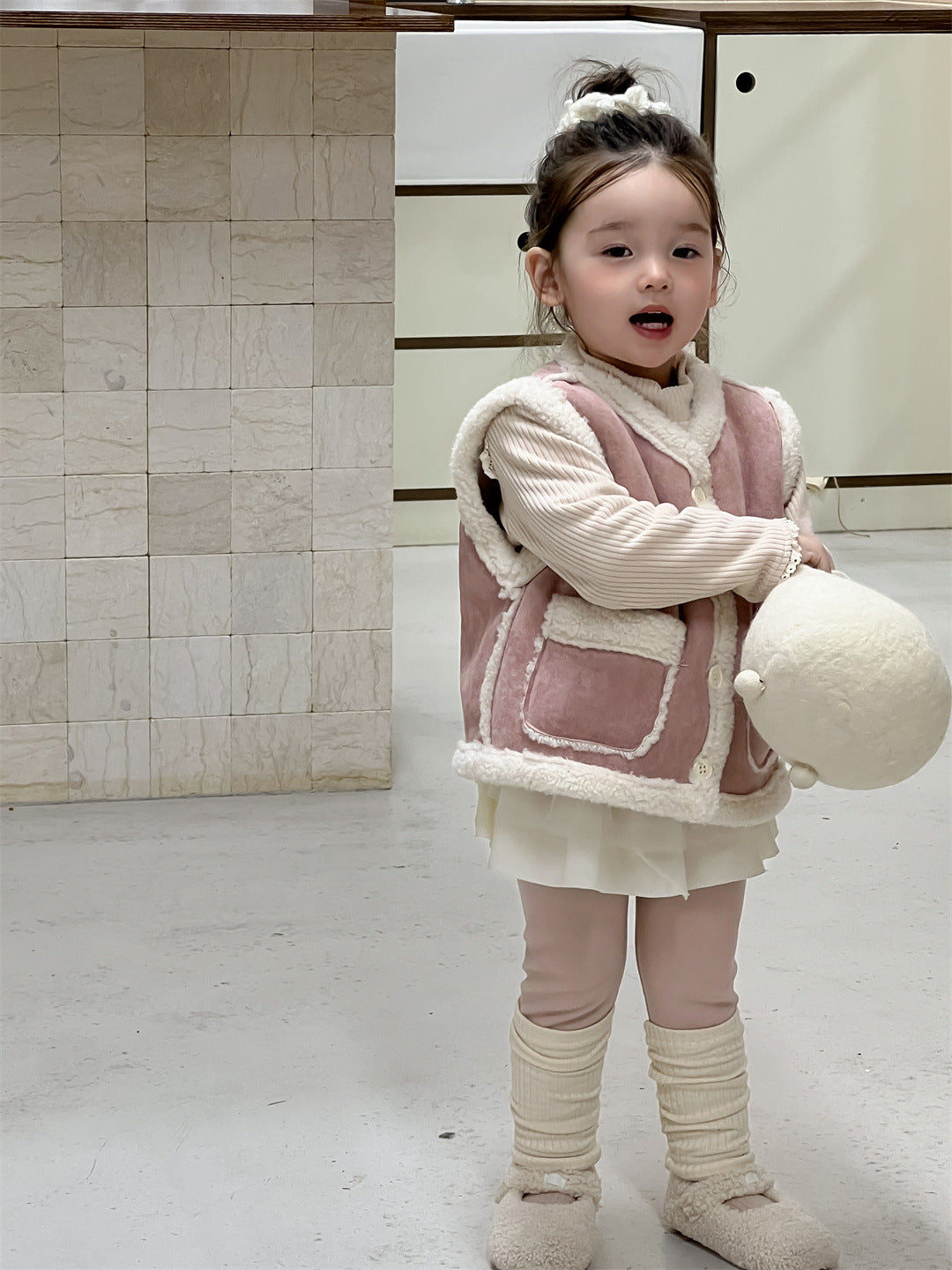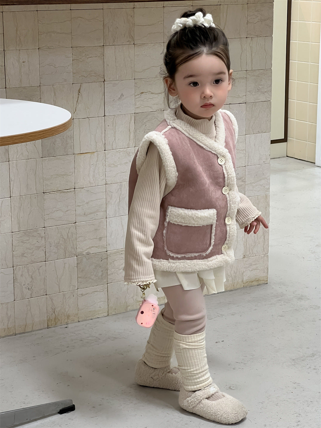 【BABY&KID】もこもこ暖かいベスト、 無地暖かいTシャツ、裏起毛レギンスSK021506