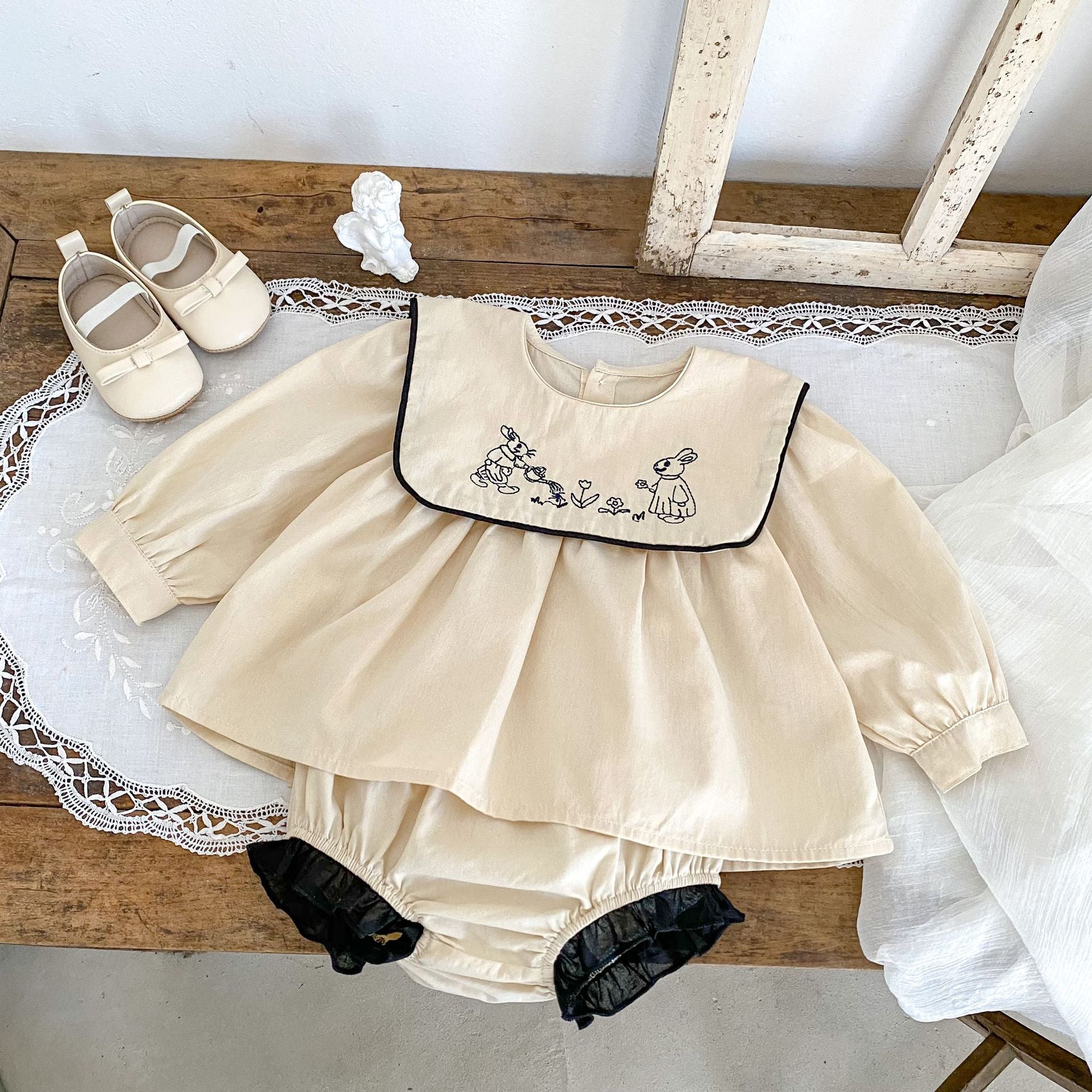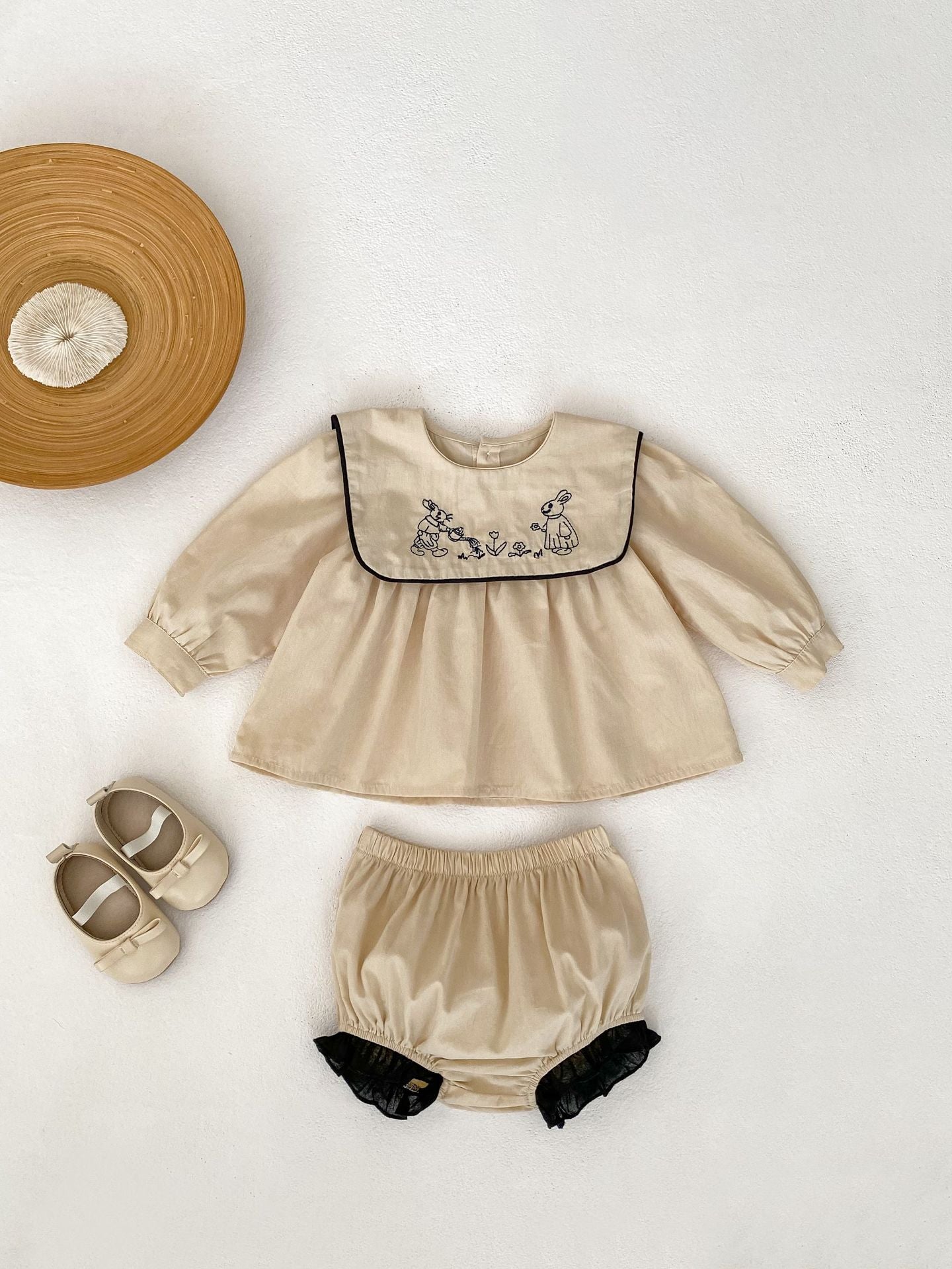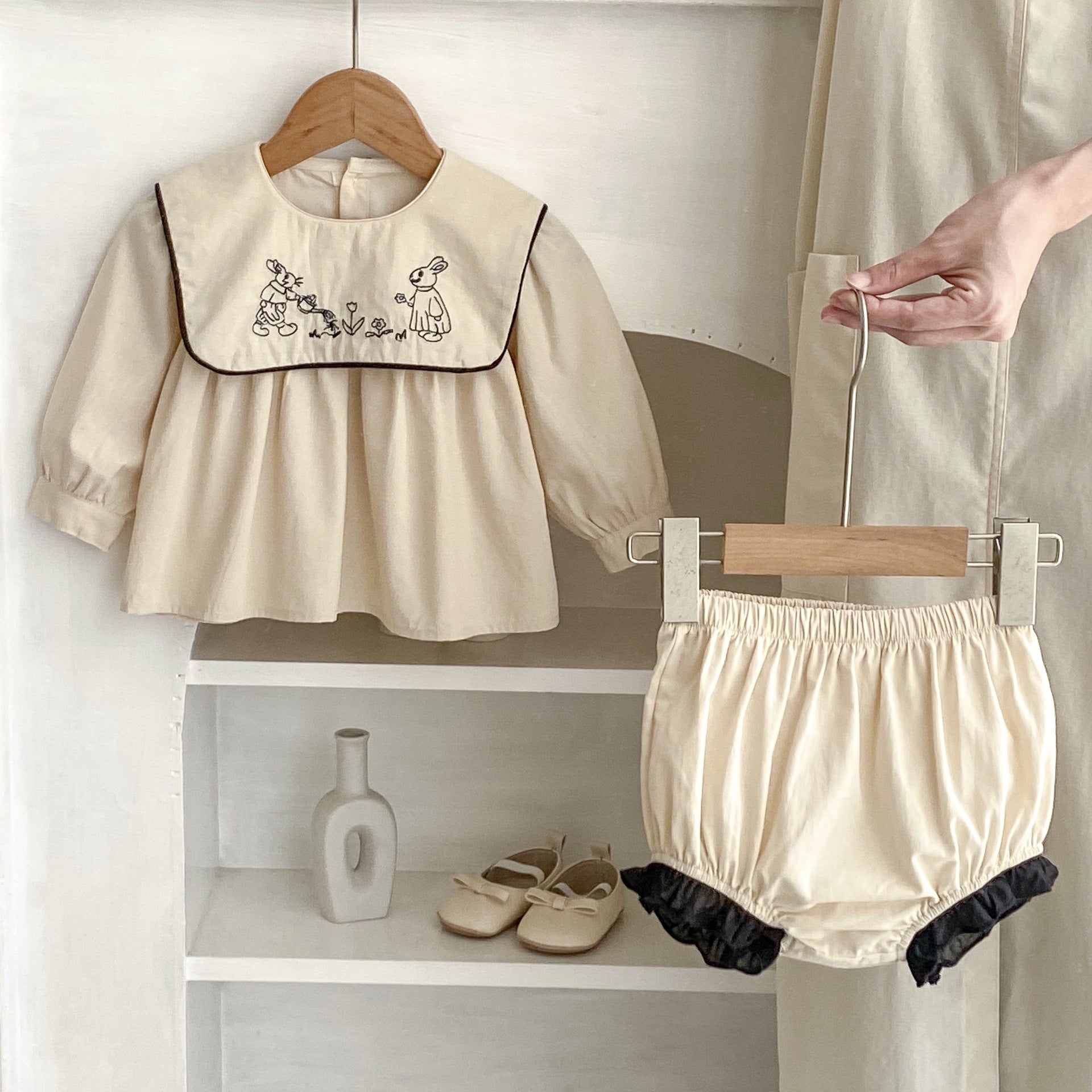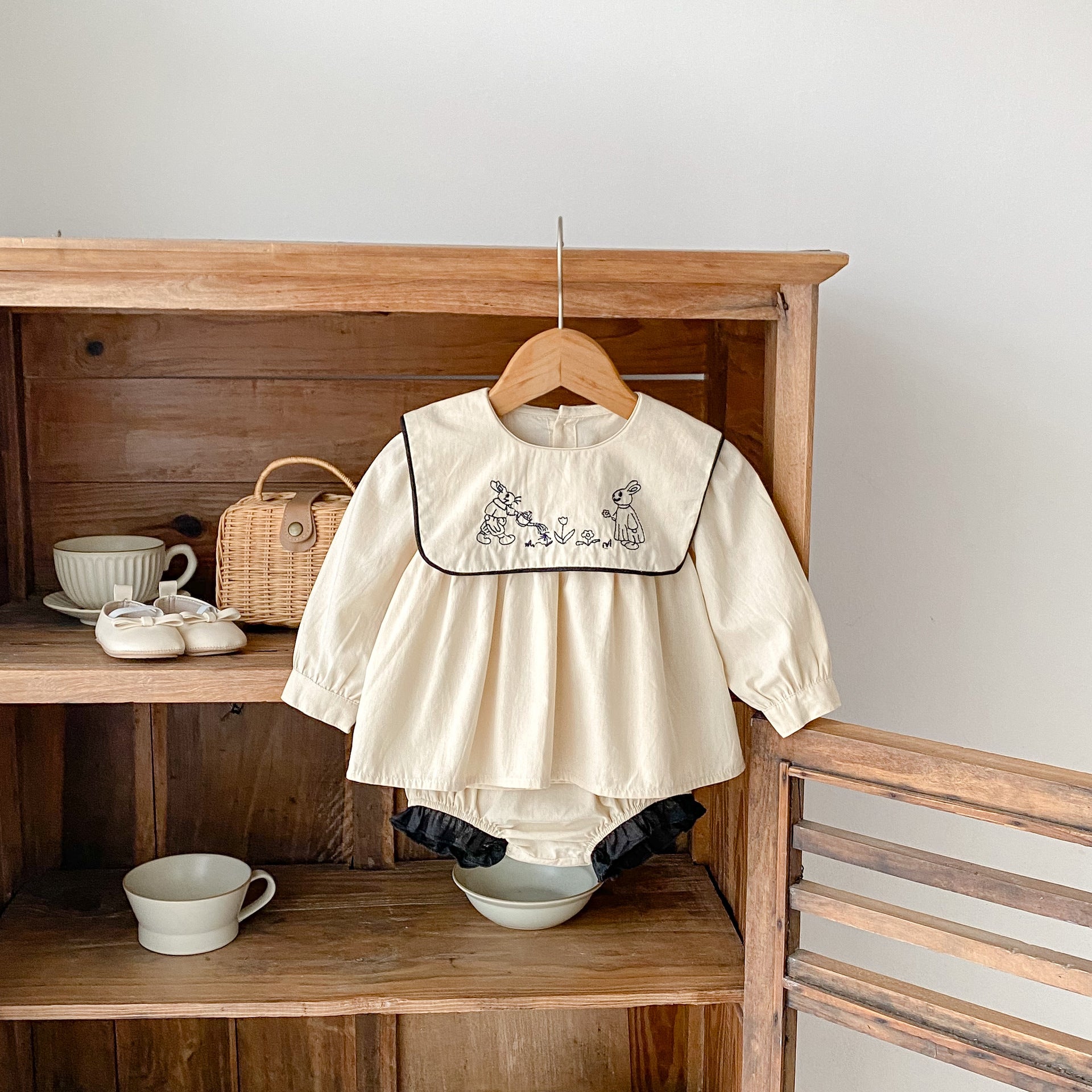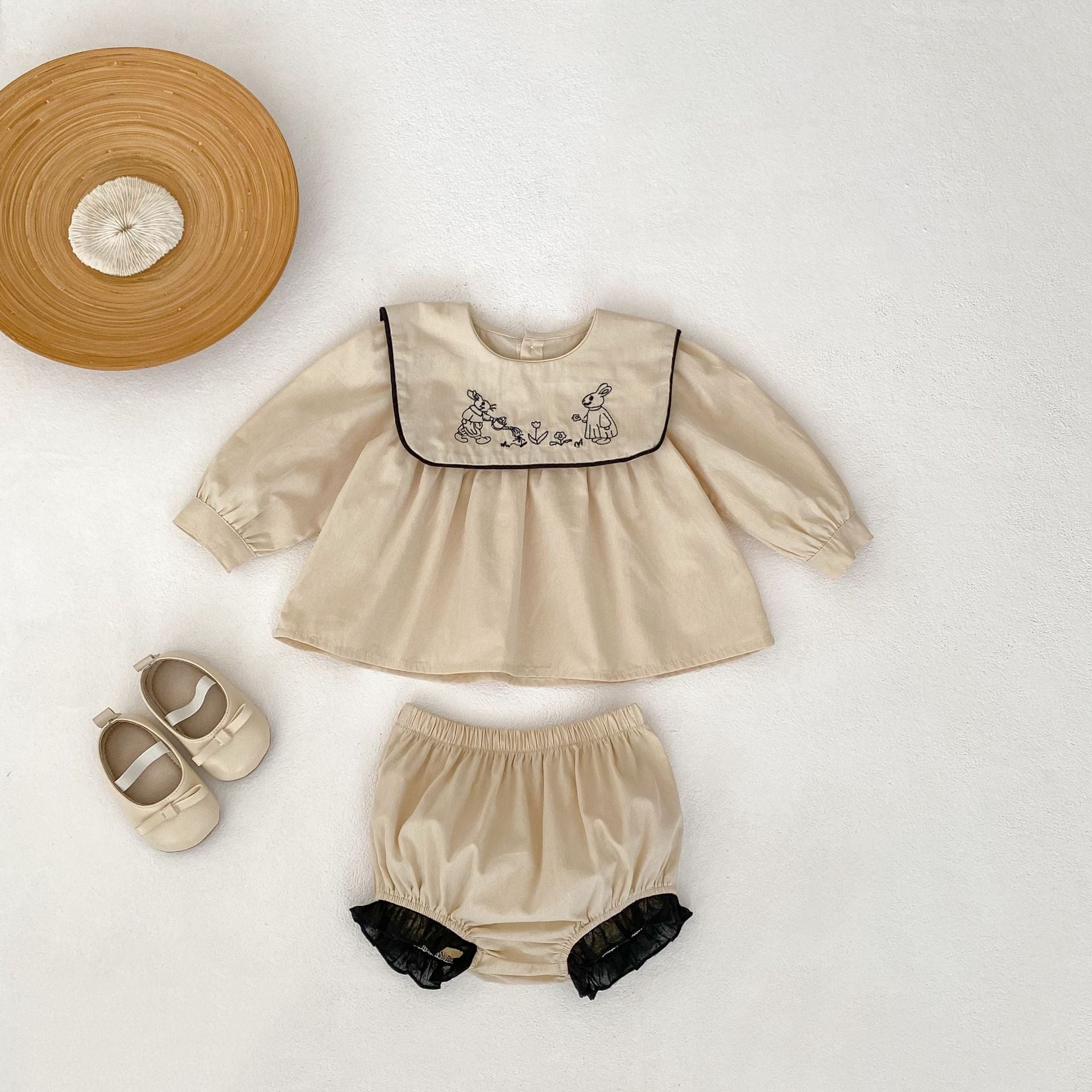 【BABY&KID】ウサギ刺繡襟トップス&ブルマSK031802