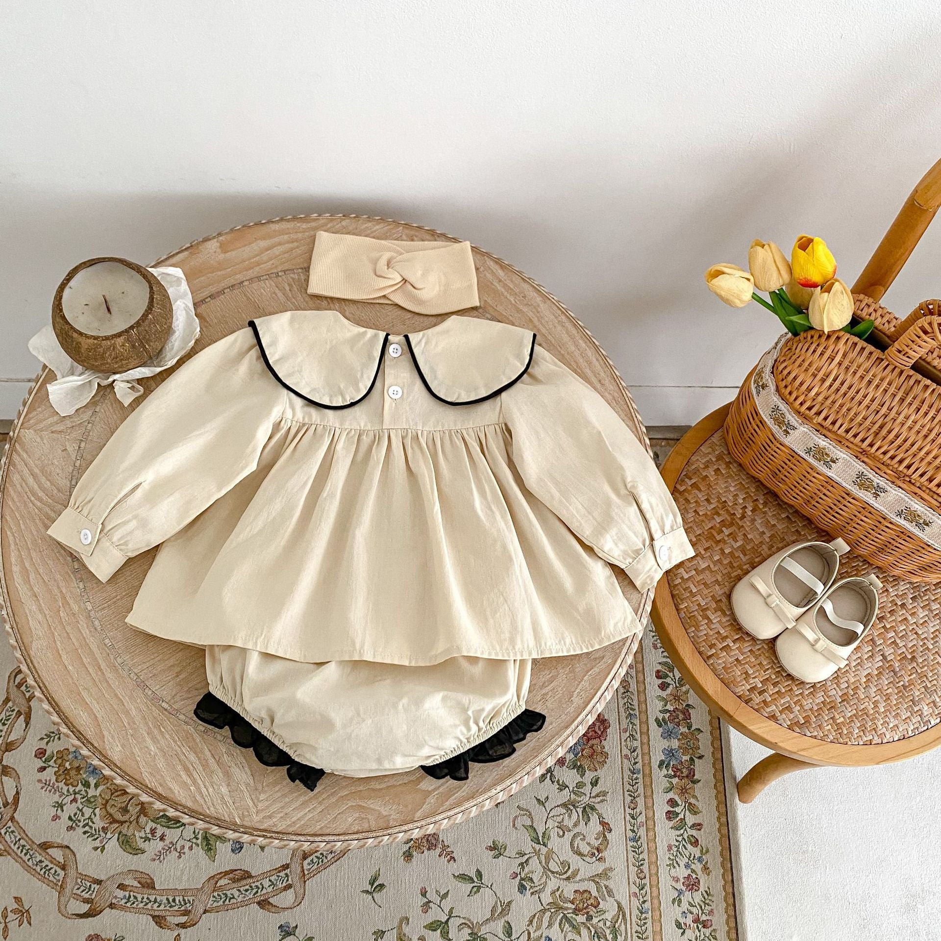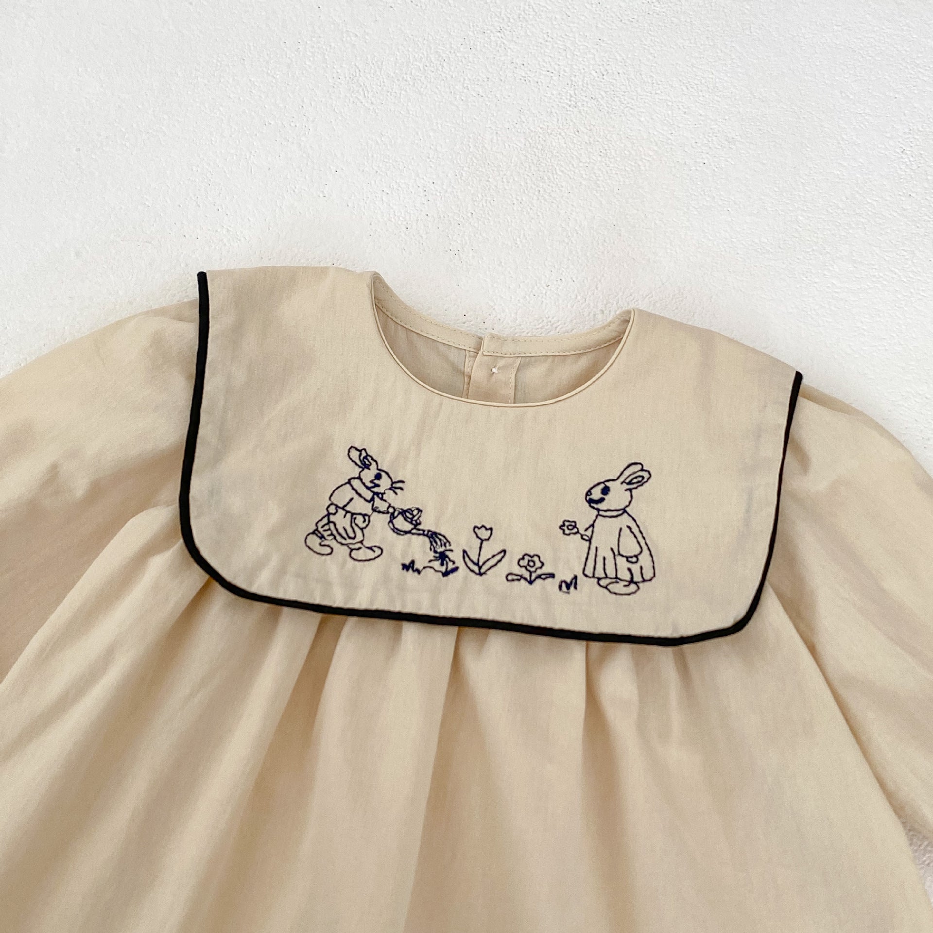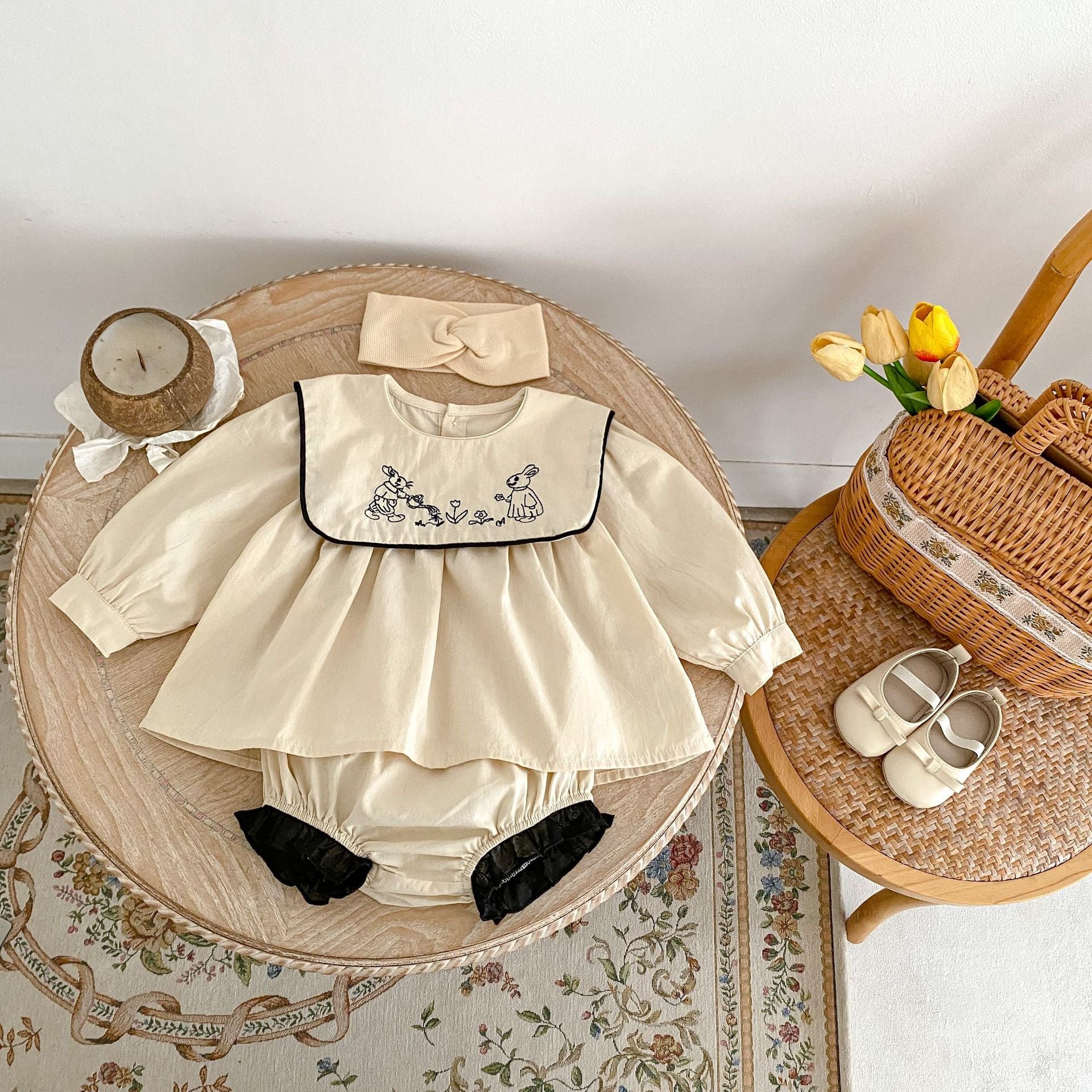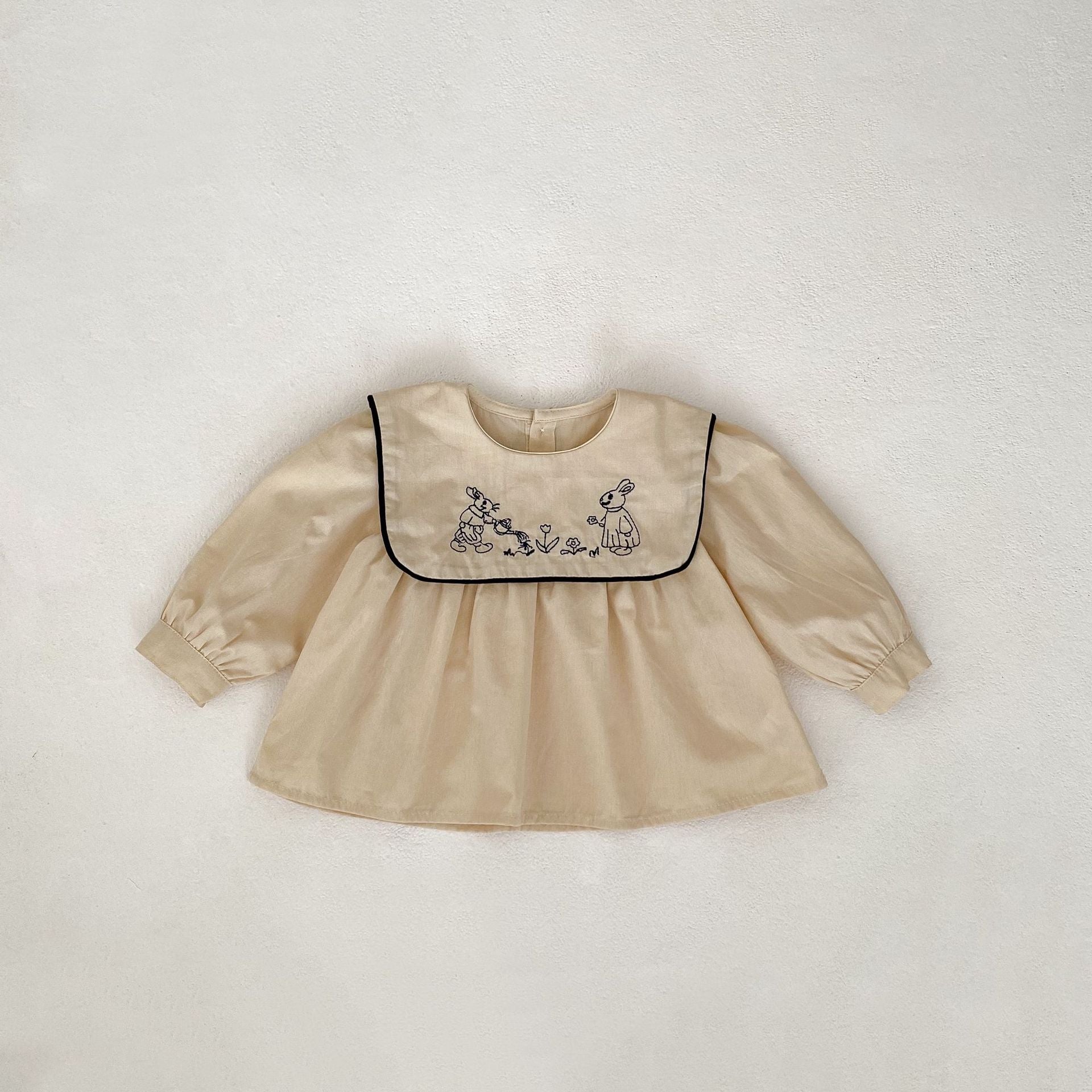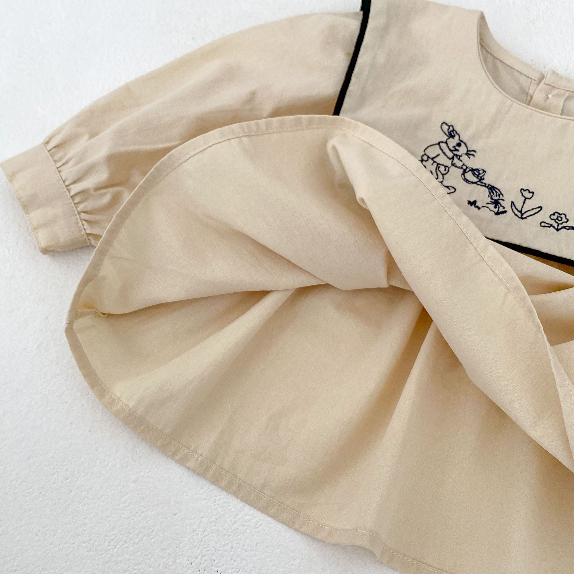 【BABY&KID】ウサギ刺繡襟トップス&ブルマSK031802