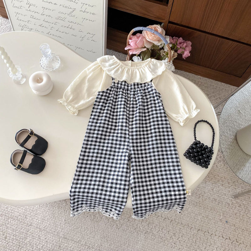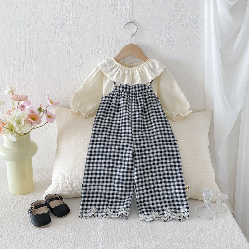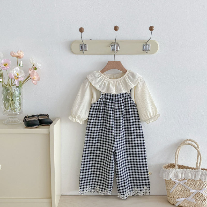 【BABY&KID】カバーオールサロペット&レース襟インナー2点セットSK092322